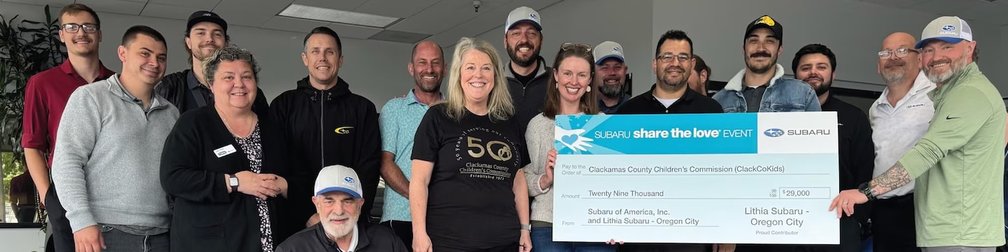 Why shop Oregon City for your new or certified pre-owned Subaru? Our team is 100% committed to customer satisfaction throughout the car buying and ownership process. We support our local community, including Make-a-Wish and Drive Carbon Neutral, proudly serving drivers from Lake Oswego, Clackamas, West Linn, and beyond! We are here to assist you with all your Subaru needs. Whether it's about a New Subaru, Pre-Owned vehicle or quality Service, OEM Subaru Parts, we'll have the answer. Call Lithia Subaru of Oregon City today at or come visit us at 1404 Main St, Oregon City, OR 97045.