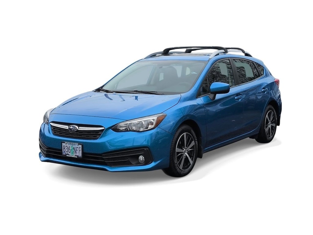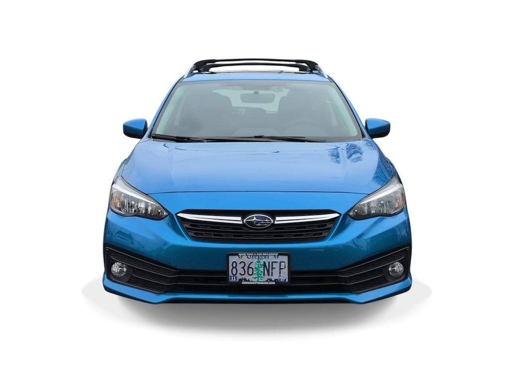 4-Wheel Disc Brakes, 6 Speakers, 6-Way Power Drivers Seat, ABS brakes, Aero Crossbar Set, Air Conditioning, All-Weather Floor Liners, Alloy wheels, AM/FM radio: SiriusXM, Anti-whiplash front head restraints, Auto-Dimming Exterior Mirror w/Approach Light, Auto-Dimming Mirror w/Compass & HomeLink, Blind Spot Detection (BSD), Brake assist, BSD/RCTA & Moonrf & Keyless Access & Pwr Dr. Seat, Bumpers: body-color, Cargo Net, Cargo Tray, CD player, Cloth Upholstery, Delay-off headlights, Driver door bin, Driver vanity mirror, Dual front impact airbags, Dual front side impact airbags, Dual-Illuminated Visor Vanity Mirror, Electronic Stability Control, Emergency communication system, Exterior Parking Camera Rear, Four wheel independent suspension, Front anti-roll bar, Front Bucket Seats, Front Center Armrest, Front fog lights, Front reading lights, Fully automatic headlights, Heated door mirrors, Heated Front Bucket Seats, Heated front seats, Illuminated entry, Keyless Access w/Push-Button Start, Knee airbag, Low tire pressure warning, Occupant sensing airbag, Outside temperature display, Overhead airbag, Overhead console, Panic alarm, Passenger door bin, Passenger vanity mirror, Power door mirrors, Power Moonroof, Power steering, Power windows, Radio data system, Radio: Subaru STARLINK 6.5 Multimedia Plus System, Rear anti-roll bar, Rear Cross-Traffic Alert (RCTA) System, Rear window defroster, Rear window wiper, Remote keyless entry, Security system, Speed control, Speed-sensing steering, Splash Guards, Split folding rear seat, Spoiler, STARLINK/Apple CarPlay/Android Auto, Steering wheel mounted audio controls, Tachometer, Telescoping steering wheel, Tilt steering wheel, Traction control, Trip computer, Variably intermittent wipers, Wheels: 16 x 6.5 Machine Finish J Aluminum-Alloy. Ocean Blue Pearl 2022 Subaru Impreza Premium AWD CVT Lineartronic 2.0L DOHC