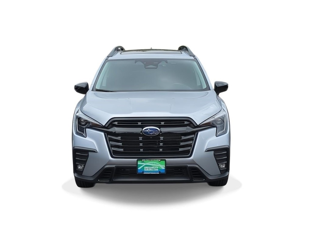 14 Speakers, 2nd Row Captains Chairs Rear Seatback Protector, 3rd Row Bench Rear Seatback Protector, 3rd row seats: bench, 4-Wheel Disc Brakes, ABS brakes, Air Conditioning, All-Weather Floor Liners, Alloy wheels, AM/FM radio: SiriusXM, Auto High-beam Headlights, Auto-Dimming Exterior Mirror w/Approach Light, Auto-dimming Rear-View mirror, Automatic temperature control, Axle Ratio: 4.44, Black Chrome Rear Bumper Cover, Brake assist, Bumpers: body-color, Cargo Tray, Compass, Delay-off headlights, Driver door bin, Driver vanity mirror, Dual front impact airbags, Dual front side impact airbags, Electronic Stability Control, Emergency communication system: STARLINK Safety and Security (Subscription Required), Exterior Parking Camera Rear, Four wheel independent suspension, Front anti-roll bar, Front Bucket Seats, Front Center Armrest, Front dual zone A/C, Front fog lights, Front reading lights, Fully automatic headlights, Garage door transmitter: HomeLink, harman/kardonî Speakers, Heated door mirrors, Heated Front Bucket Seats, Heated front seats, Heated rear seats, Heated steering wheel, HVAC memory, Illuminated entry, Knee airbag, Leather Shift Knob, Leather steering wheel, LED Upgrade, Low tire pressure warning, Memory seat, Navigation System, Occupant sensing airbag, Outside temperature display, Overhead airbag, Overhead console, Panic alarm, Passenger door bin, Passenger vanity mirror, Popular Package Onyx, Power door mirrors, Power driver seat, Power Liftgate, Power moonroof, Power passenger seat, Power steering, Power windows, Radio data system, Radio: Subaru STARLINK 11.6 Multimedia Nav System, Rear air conditioning, Rear anti-roll bar, Rear reading lights, Rear window defroster, Rear window wiper, Reclining 3rd row seat, Remote keyless entry, Security system, Speed control, Speed-sensing steering, Splash Guards, Split folding rear seat, Spoiler, Standard Model, STARLINK/Apple CarPlay/Android Auto, StarTex Upholstery, Steering wheel mounted audio controls, Tachometer, Telescoping steering wheel, Tilt steering wheel, Traction control, Trip computer, Turn signal indicator mirrors, Variably intermittent wipers, Wheels: 20 x 7.5 J Aluminum Alloy w/Black Finish, Wireless Charger. Ice Silver Metallic 2024 Subaru Ascent Onyx Edition AWD Lineartronic CVT 2.4L 4-Cylinder DOHC 16V
