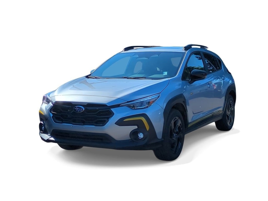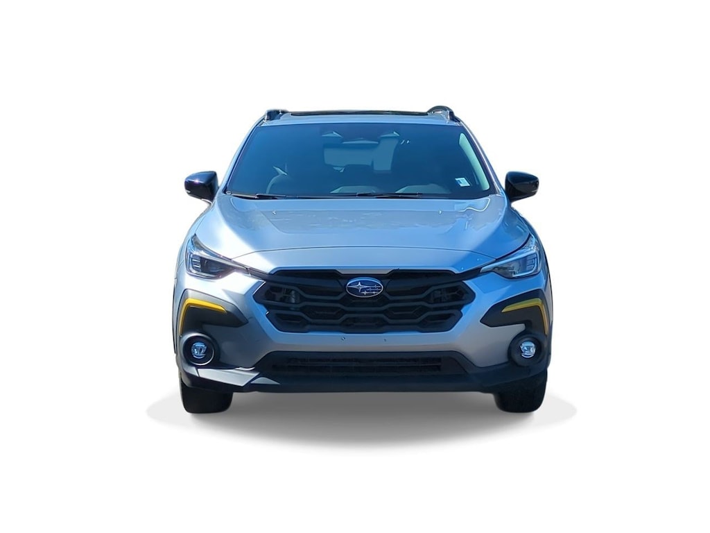 10-Way Power Drivers Seat, 3.70 Axle Ratio, 4-Wheel Disc Brakes, 6 Speakers, ABS brakes, Air Conditioning, Alloy wheels, AM/FM radio: SiriusXM, Anti-whiplash front head restraints, Auto High-beam Headlights, Automatic temperature control, Blind Spot Detection w/Rear Cross-Traffic Alert, Brake assist, BSD/RCTA & Power Driver Seat & Power Moonroof, Bumpers: body-color, Driver door bin, Driver vanity mirror, Dual front impact airbags, Dual front side impact airbags, Electronic Stability Control, Emergency communication system: STARLINK Safety and Security (Subscription Required), Exterior Parking Camera Rear, Four wheel independent suspension, Front anti-roll bar, Front Bucket Seats, Front Center Armrest, Front dual zone A/C, Front fog lights, Front reading lights, Fully automatic headlights, Heated door mirrors, Heated Front Bucket Seats, Heated front seats, Illuminated entry, Knee airbag, Leather Shift Knob, Low tire pressure warning, Occupant sensing airbag, Outside temperature display, Overhead airbag, Overhead console, Panic alarm, Passenger door bin, Passenger vanity mirror, Power door mirrors, Power Moonroof, Power steering, Power windows, Radio data system, Radio: Subaru STARLINK 11.6 Multimedia Plus Sys, Rear anti-roll bar, Rear seat center armrest, Rear window defroster, Rear window wiper, Remote keyless entry, Security system, Speed control, Speed-sensing steering, Split folding rear seat, Spoiler, Sport Cloth Upholstery, STARLINK/Apple CarPlay/Android Auto, Steering wheel mounted audio controls, Tachometer, Telescoping steering wheel, Tilt steering wheel, Traction control, Trip computer, Turn signal indicator mirrors, Variably intermittent wipers, Wheels: 18 x 7.0J Dark Gray Aluminum Alloy. Ice Silver Metallic 2024 Subaru Crosstrek Sport AWD Lineartronic CVT 2.5L 4-Cylinder DOHC 16V