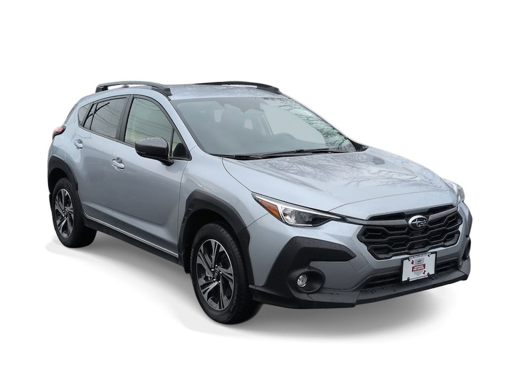 3.90 Axle Ratio, 4-Wheel Disc Brakes, 6 Speakers, ABS brakes, Air Conditioning, All-Weather Floor Liners, Alloy wheels, AM/FM radio: SiriusXM, Anti-whiplash front head restraints, Auto High-beam Headlights, Auto-Dimming Exterior Mirror w/Approach Light, Auto-Dimming Mirror w/Compass & HomeLink, Automatic temperature control, Brake assist, Bumpers: body-color, Driver door bin, Driver vanity mirror, Dual front impact airbags, Dual front side impact airbags, Electronic Stability Control, Emergency communication system: STARLINK Safety and Security (Subscription Required), Exterior Parking Camera Rear, Four wheel independent suspension, Front anti-roll bar, Front Bucket Seats, Front Center Armrest, Front dual zone A/C, Front fog lights, Front reading lights, Fully automatic headlights, Illuminated entry, Knee airbag, LED Upgrade, Low tire pressure warning, Occupant sensing airbag, Outside temperature display, Overhead airbag, Overhead console, Panic alarm, Passenger door bin, Passenger vanity mirror, Popular Package #4, Power door mirrors, Power steering, Power windows, Premium Cloth Upholstery, Radio data system, Radio: Subaru STARLINK 11.6 Multimedia Plus Sys, Rear anti-roll bar, Rear Bumper Cover, Rear seat center armrest, Rear window defroster, Rear window wiper, Remote keyless entry, Security system, Speed control, Speed-sensing steering, Splash Guards, Split folding rear seat, Spoiler, Standard Model, STARLINK/Apple CarPlay/Android Auto, Steering wheel mounted audio controls, Tachometer, Telescoping steering wheel, Tilt steering wheel, Traction control, Trip computer, Turn signal indicator mirrors, Variably intermittent wipers, Wheels: 17 x 7.0J Dark Gray Aluminum Alloy. Ice Silver Metallic 2024 Subaru Crosstrek Premium AWD Lineartronic CVT 2.0L 4-Cylinder DOHC 16V