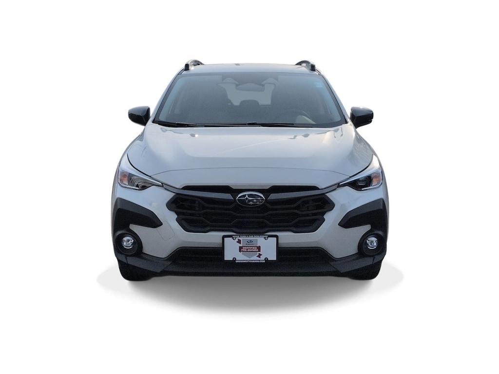 3.90 Axle Ratio, 4-Wheel Disc Brakes, 6 Speakers, ABS brakes, Air Conditioning, All-Weather Floor Liners, Alloy wheels, AM/FM radio: SiriusXM, Anti-whiplash front head restraints, Auto High-beam Headlights, Automatic temperature control, Brake assist, Bumpers: body-color, Cargo Cover, Driver door bin, Driver vanity mirror, Dual front impact airbags, Dual front side impact airbags, Electronic Stability Control, Emergency communication system: STARLINK Safety and Security (Subscription Required), Exterior Parking Camera Rear, Four wheel independent suspension, Front anti-roll bar, Front Bucket Seats, Front Center Armrest, Front dual zone A/C, Front fog lights, Front reading lights, Fully automatic headlights, Illuminated entry, Knee airbag, Low tire pressure warning, Occupant sensing airbag, Outside temperature display, Overhead airbag, Overhead console, Panic alarm, Passenger door bin, Passenger vanity mirror, Power door mirrors, Power steering, Power windows, Premium Cloth Upholstery, Radio data system, Radio: Subaru STARLINK 11.6 Multimedia Plus Sys, Rear anti-roll bar, Rear seat center armrest, Rear window defroster, Rear window wiper, Remote keyless entry, Security system, Speed control, Speed-sensing steering, Split folding rear seat, Spoiler, Standard Model, STARLINK/Apple CarPlay/Android Auto, Steering wheel mounted audio controls, Tachometer, Telescoping steering wheel, Tilt steering wheel, Traction control, Trip computer, Turn signal indicator mirrors, Variably intermittent wipers, Wheels: 17 x 7.0J Dark Gray Aluminum Alloy. Crystal White Pearl 2024 Subaru Crosstrek Premium AWD Lineartronic CVT 2.0L 4-Cylinder DOHC 16V