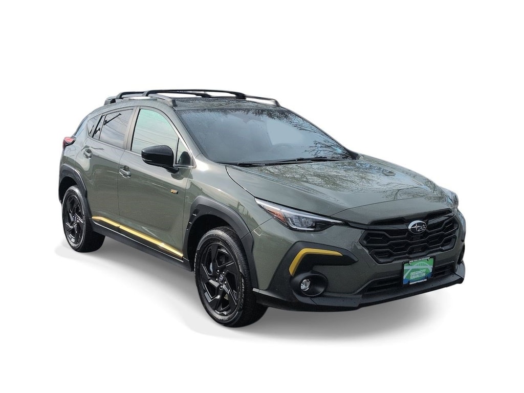 10-Way Power Drivers Seat, 3.70 Axle Ratio, 4-Wheel Disc Brakes, 6 Speakers, ABS brakes, Aero Crossbar Set, Air Conditioning, All-Weather Floor Liners, Alloy wheels, AM/FM radio: SiriusXM, Anti-whiplash front head restraints, Auto High-beam Headlights, Auto-Dimming Mirror w/Compass & HomeLink, Automatic temperature control, Blind Spot Detection w/Rear Cross-Traffic Alert, Brake assist, BSD/RCTA & Power Driver Seat & Power Moonroof, Bumpers: body-color, Driver door bin, Driver vanity mirror, Dual front impact airbags, Dual front side impact airbags, Electronic Stability Control, Emergency communication system: STARLINK Safety and Security (Subscription Required), Exterior Parking Camera Rear, Four wheel independent suspension, Front anti-roll bar, Front Bucket Seats, Front Center Armrest, Front dual zone A/C, Front fog lights, Front reading lights, Fully automatic headlights, Heated door mirrors, Heated Front Bucket Seats, Heated front seats, Illuminated entry, Knee airbag, Leather Shift Knob, Low tire pressure warning, Occupant sensing airbag, Outside temperature display, Overhead airbag, Overhead console, Panic alarm, Passenger door bin, Passenger vanity mirror, Power door mirrors, Power Moonroof, Power steering, Power windows, Radio data system, Radio: Subaru STARLINK 11.6 Multimedia Plus Sys, Rear anti-roll bar, Rear seat center armrest, Rear window defroster, Rear window wiper, Remote keyless entry, Security system, Speed control, Speed-sensing steering, Split folding rear seat, Spoiler, Sport Cloth Upholstery, STARLINK/Apple CarPlay/Android Auto, Steering wheel mounted audio controls, Tachometer, Telescoping steering wheel, Tilt steering wheel, Traction control, Trip computer, Turn signal indicator mirrors, Variably intermittent wipers, Wheels: 18 x 7.0J Dark Gray Aluminum Alloy. Alpine Green 2024 Subaru Crosstrek Sport AWD Lineartronic CVT 2.5L 4-Cylinder DOHC 16V