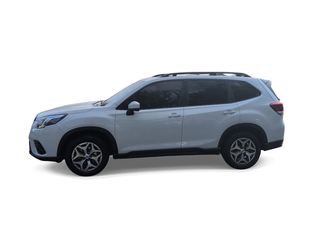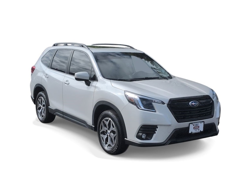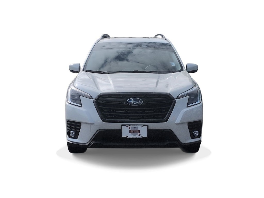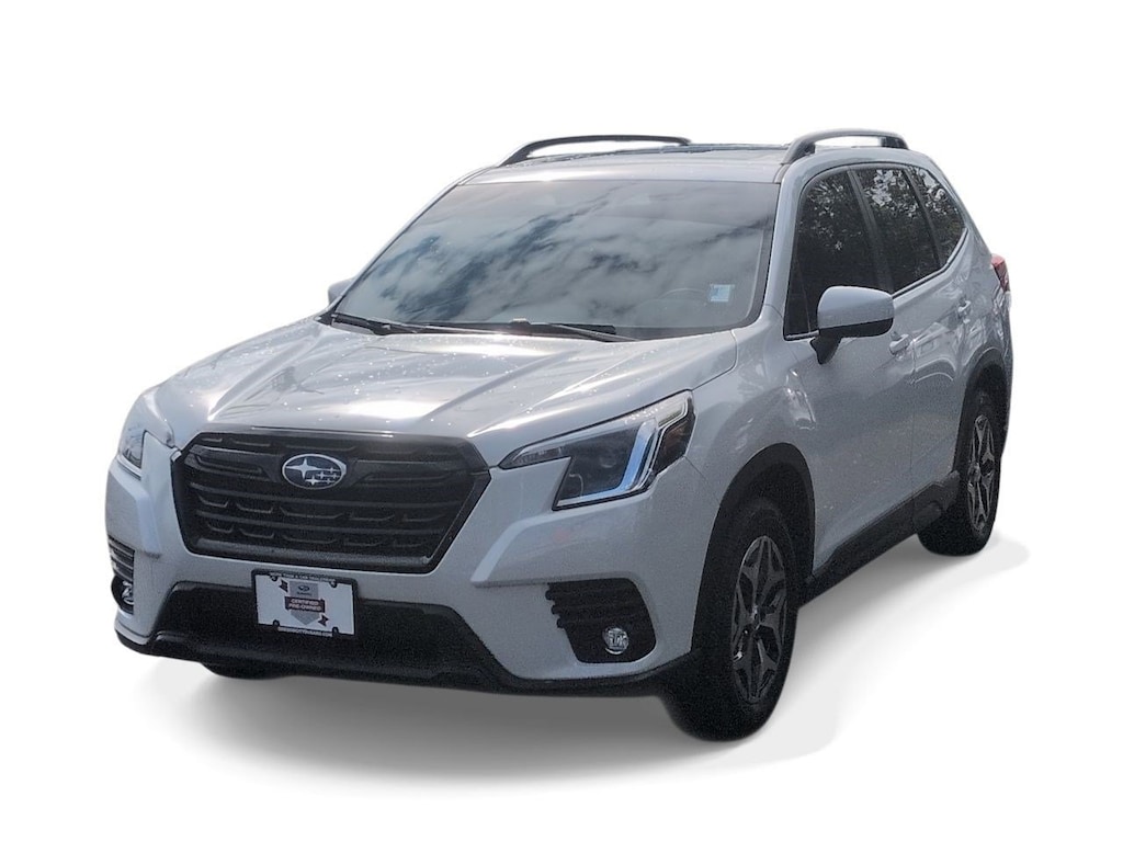 3.70 Axle Ratio, 4-Wheel Disc Brakes, 6 Speakers, ABS brakes, Air Conditioning, All-Weather Floor Liners, Alloy wheels, AM/FM radio: SiriusXM, Anti-whiplash front head restraints, Auto High-beam Headlights, Automatic temperature control, Blind Spot Detection w/RCTA & Power Rear Gate, Blind-Spot Detection (BSD), Brake assist, Bumpers: body-color, Cargo Tray, Driver door bin, Driver vanity mirror, Drivers Seatback Divided Pocket, Dual front impact airbags, Dual front side impact airbags, Dual USB Charge Ports, Electronic Stability Control, Emergency communication system: STARLINK Safety and Security (Subscription Required), Exterior Parking Camera Rear, EyeSight System, Four wheel independent suspension, Front anti-roll bar, Front Bucket Seats, Front Center Armrest, Front fog lights, Front reading lights, Fully automatic headlights, Heated door mirrors, Heated Front Bucket Seats, Heated front seats, Illuminated entry, Knee airbag, Leather steering wheel, Low tire pressure warning, Multi-Function High Grade Display, Occupant sensing airbag, Outside temperature display, Overhead airbag, Overhead console, Panic alarm, Passenger door bin, Passenger vanity mirror, Power door mirrors, Power driver seat, Power moonroof: Panoramic, Power Rear Gate, Power steering, Power windows, Premium Cloth Upholstery, Radio data system, Radio: Subaru STARLINK 6.5 Multimedia Plus System, Rear anti-roll bar, Rear seat center armrest, Rear window defroster, Rear window wiper, Remote keyless entry, Roof rack: rails only, Security system, Speed control, Speed-sensing steering, Split folding rear seat, Spoiler, STARLINK/Apple CarPlay/Android Auto, Steering wheel mounted audio controls, Tachometer, Telescoping steering wheel, Tilt steering wheel, Traction control, Trip computer, Variably intermittent wipers, Wheels: 17 x 7.0 J Black Machine Finish Alloy. Crystal White Pearl 2024 Subaru Forester Premium AWD Lineartronic CVT 2.5L 4-Cylinder DOHC 16V