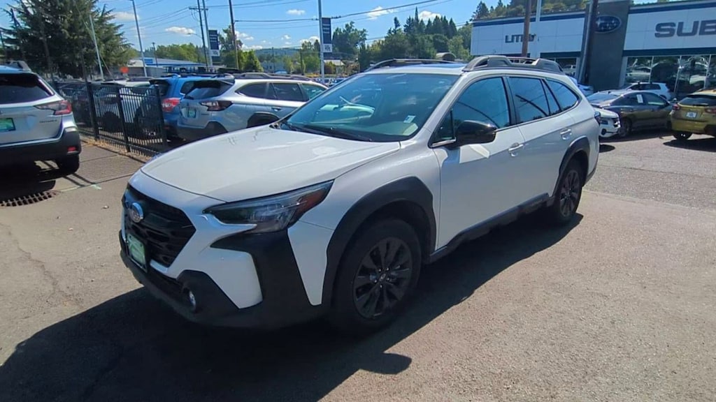 12 Speakers, 3.90 Axle Ratio, 4-Wheel Disc Brakes, ABS brakes, Air Conditioning, Alloy wheels, AM/FM radio: SiriusXM, Auto High-beam Headlights, Auto-dimming Rear-View mirror, Automatic temperature control, Brake assist, Bumpers: body-color, Compass, Driver door bin, Driver vanity mirror, Dual front impact airbags, Dual front side impact airbags, Electronic Stability Control, Emergency communication system: STARLINK Safety Plus (3-year free trial), Exterior Parking Camera Rear, Four wheel independent suspension, Front anti-roll bar, Front Bucket Seats, Front Center Armrest w/Storage, Front dual zone A/C, Front fog lights, Front reading lights, Fully automatic headlights, Garage door transmitter: HomeLink, harman/kardonî Speakers, Heated door mirrors, Heated Front Bucket Seats, Heated front seats, Heated steering wheel, Illuminated entry, Knee airbag, Leather Shift Knob, Leather steering wheel, Low tire pressure warning, Occupant sensing airbag, Outside temperature display, Overhead airbag, Overhead console, Panic alarm, Passenger door bin, Passenger vanity mirror, Power door mirrors, Power driver seat, Power Liftgate, Power moonroof, Power steering, Power windows, Radio: Subaru STARLINK 11.6 Multimedia Plus Sys, Rear anti-roll bar, Rear seat center armrest, Rear window defroster, Rear window wiper, Remote keyless entry, Roof rack, Security system, Speed control, Speed-sensing steering, Split folding rear seat, Spoiler, Standard Model, StarTex-Trimmed Upholstery, Steering wheel mounted audio controls, Tachometer, Telescoping steering wheel, Tilt steering wheel, Traction control, Trip computer, Turn signal indicator mirrors, Variably intermittent wipers, Wheels: 18 x 7J Black Aluminum-Alloy. Crystal White Pearl 2024 Subaru Outback Onyx Edition AWD CVT Lineartronic 2.5L 4-Cylinder DOHC 16V