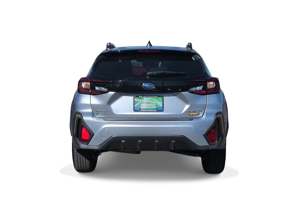 4-Wheel Disc Brakes, 6 Speakers, ABS brakes, Air Conditioning, All-Weather Floor Liners, Alloy wheels, AM/FM radio: SiriusXM, Anti-whiplash front head restraints, Auto High-beam Headlights, Auto-Dimming Mirror w/Compass & HomeLink, Automatic temperature control, Brake assist, Bumpers: body-color, Driver door bin, Driver vanity mirror, Dual front impact airbags, Dual front side impact airbags, Electronic Stability Control, Emergency communication system, Exterior Parking Camera Rear, Four wheel independent suspension, Front anti-roll bar, Front Bucket Seats, Front Center Armrest, Front dual zone A/C, Front fog lights, Front reading lights, Fully automatic headlights, Heated door mirrors, Heated Front Bucket Seats, Heated front seats, Illuminated entry, Knee airbag, Leather Shift Knob, Leather steering wheel, Low tire pressure warning, Occupant sensing airbag, Outside temperature display, Overhead airbag, Overhead console, Panic alarm, Passenger door bin, Passenger vanity mirror, Power door mirrors, Power steering, Power windows, Radio data system, Radio: Subaru 11.6 Multimedia Plus System, Rear anti-roll bar, Rear Bumper Cover, Rear seat center armrest, Rear Seatback Protector, Rear window defroster, Rear window wiper, Remote keyless entry, Security system, Speed control, Speed-sensing steering, Split folding rear seat, Spoiler, Sport Cloth Upholstery, Standard Model, Steering wheel mounted audio controls, Tachometer, Telescoping steering wheel, Tilt steering wheel, Traction control, Trip computer, Turn signal indicator mirrors, Variably intermittent wipers, Wheels: 18 x 7.0 J Dark Gray Aluminum-Alloy. Ice Silver Metallic 2025 Subaru Crosstrek Sport AWD Lineartronic CVT 2.5L 4-Cylinder DOHC 16V