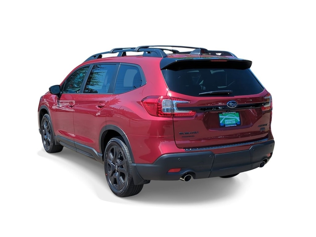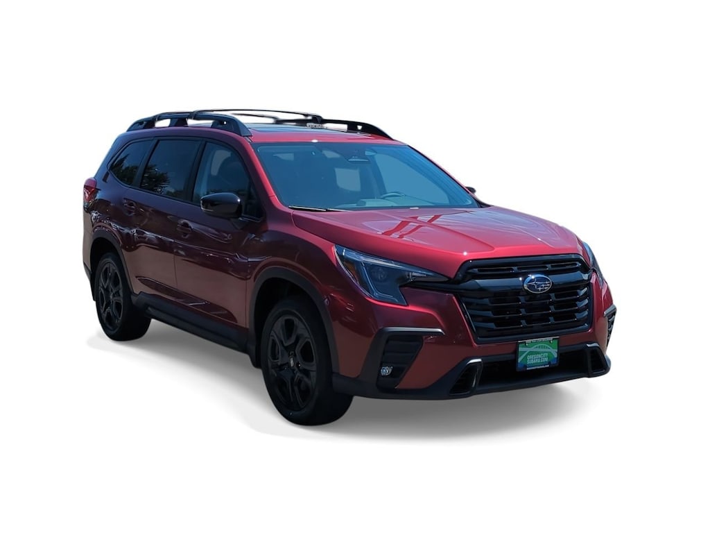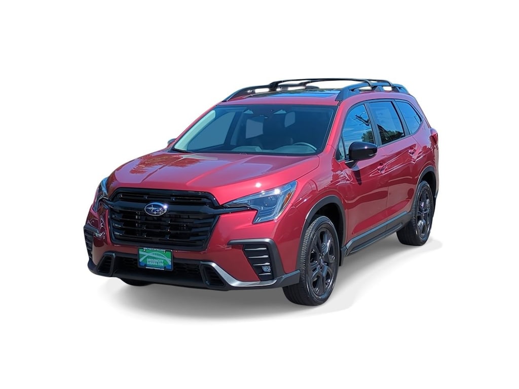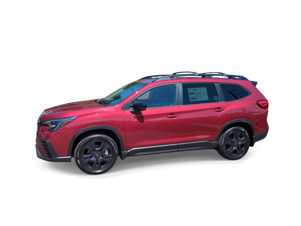 Crimson Red Pearl 2025 Subaru Ascent Onyx Edition Touring AWD Lineartronic CVT 2.4L 4-Cylinder DOHC 16V 14 Speakers, 2nd Row Captains Chairs Rear Seatback Protector, 3rd Row Bench Rear Seatback Protector, 3rd row seats: bench, 4-Wheel Disc Brakes, ABS brakes, Aero Crossbar Set, Air Conditioning, All-Weather Floor Liners, Alloy wheels, AM/FM radio: SiriusXM with 360L, Apple CarPlay & Android Auto, Auto High-beam Headlights, Auto-Dimming Exterior Mirror w/Approach Light, Auto-dimming Rear-View mirror, Automatic temperature control, Black Chrome Rear Bumper Cover, Brake assist, Bumpers: body-color, Cargo Tray, Compass, Delay-off headlights, Driver door bin, Driver vanity mirror, Dual front impact airbags, Dual front side impact airbags, Electronic Stability Control, Emergency communication system: MySubaru Safety (3-year free trial), Exterior Parking Camera Rear, Four wheel independent suspension, Front anti-roll bar, Front Bucket Seats, Front Center Armrest, Front dual zone A/C, Front fog lights, Front reading lights, Fully automatic headlights, Garage door transmitter: HomeLink, harman/kardonî Speakers, Heated & Ventilated Front Bucket Seats, Heated door mirrors, Heated front seats, Heated rear seats, Heated steering wheel, HVAC memory, Illuminated entry, Knee airbag, Leather Shift Knob, Leather steering wheel, LED Upgrade, Low tire pressure warning, Memory seat, Navigation System, Occupant sensing airbag, Onyx Package, Outside temperature display, Overhead airbag, Overhead console, Panic alarm, Passenger door bin, Passenger vanity mirror, Perforated Nappa Leather-Trimmed Upholstery, Power door mirrors, Power driver seat, Power Liftgate, Power moonroof, Power passenger seat, Power steering, Power windows, Radio data system, Radio: Subaru 11.6 Multimedia System w/Navigation, Rain sensing wipers, Rear air conditioning, Rear anti-roll bar, Rear reading lights, Rear window defroster, Rear window wiper, Reclining 3rd row seat, Remote keyless entry, Security system, Speed control, Speed-sensing steering, Splash Guards, Split folding rear seat, Spoiler, Standard Model, Steering wheel mounted audio controls, Tachometer, Telescoping steering wheel, Tilt steering wheel, Traction control, Trip computer, Turn signal indicator mirrors, Variably intermittent wipers, Ventilated front seats, Wheels: 20 x 7.5 J Aluminum Alloy w/Black Finish.