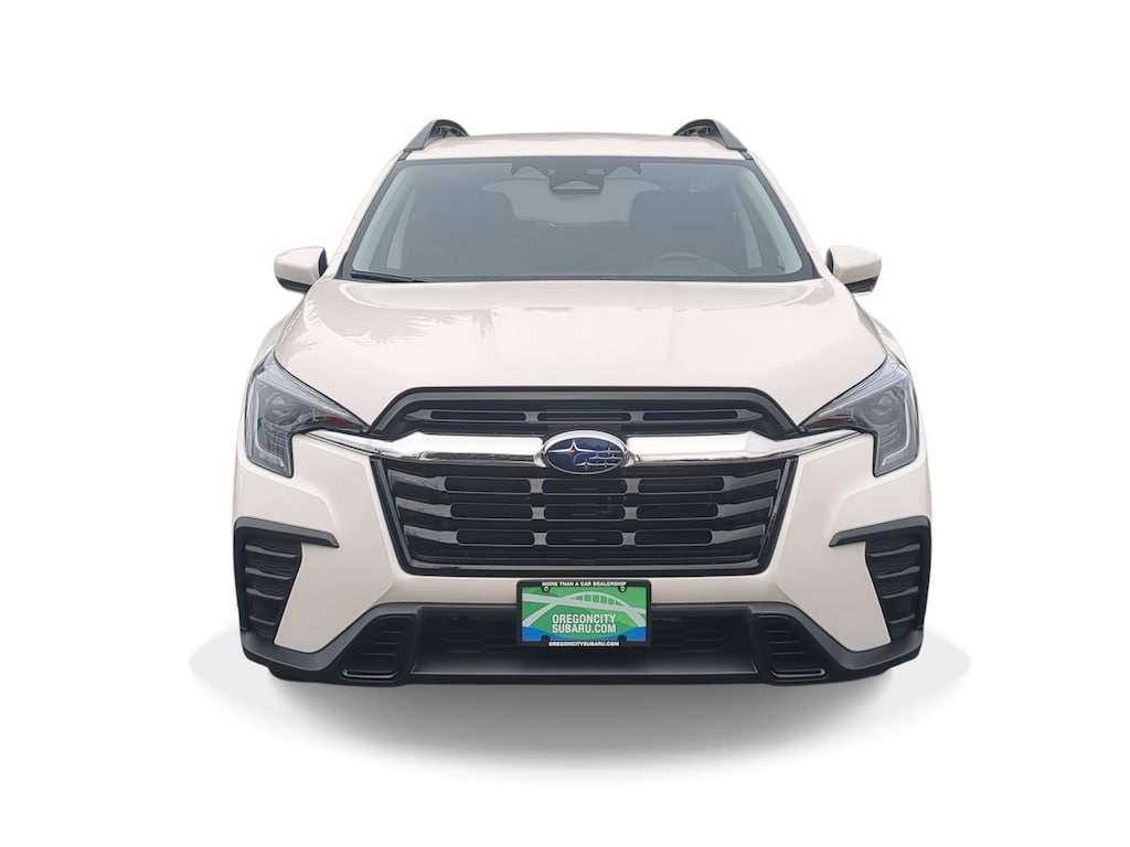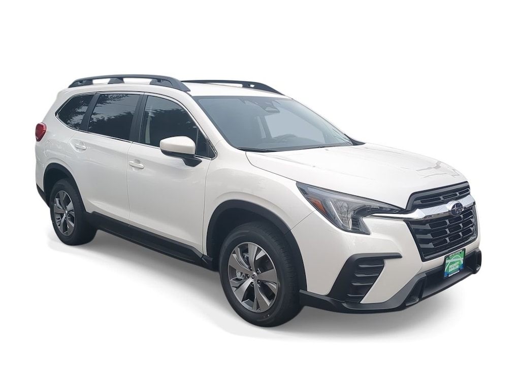 Crystal White Pearl 2025 Subaru Ascent Premium AWD Lineartronic CVT 2.4L 4-Cylinder DOHC 16V 3rd row seats: bench, 4-Wheel Disc Brakes, 6 Speakers, ABS brakes, Air Conditioning, Alloy wheels, AM/FM radio: SiriusXM with 360L, Apple CarPlay & Android Auto, Auto High-beam Headlights, Auto-dimming Rear-View mirror, Automatic temperature control, Brake assist, Bumpers: body-color, Compass, Delay-off headlights, Driver door bin, Driver vanity mirror, Dual front impact airbags, Dual front side impact airbags, Electronic Stability Control, Emergency communication system: MySubaru Safety (3-year free trial), Exterior Parking Camera Rear, Four wheel independent suspension, Front anti-roll bar, Front Bucket Seats, Front Center Armrest, Front dual zone A/C, Front reading lights, Fully automatic headlights, Garage door transmitter: HomeLink, Heated door mirrors, Heated Front Bucket Seats, Heated front seats, Illuminated entry, Knee airbag, Leather Shift Knob, Leather steering wheel, Low tire pressure warning, Occupant sensing airbag, Outside temperature display, Overhead airbag, Overhead console, Panic alarm, Passenger door bin, Passenger vanity mirror, Power door mirrors, Power driver seat, Power Liftgate, Power steering, Power windows, Radio data system, Radio: Subaru 11.6 Multimedia Plus System, Rear air conditioning, Rear anti-roll bar, Rear reading lights, Rear window defroster, Rear window wiper, Reclining 3rd row seat, Remote keyless entry, Security system, Speed control, Speed-sensing steering, Spill Resistant Coated Cloth Upholstery, Split folding rear seat, Spoiler, Steering wheel mounted audio controls, Tachometer, Telescoping steering wheel, Tilt steering wheel, Traction control, Trip computer, Turn signal indicator mirrors, Variably intermittent wipers, Wheels: 18 x 7.5 J Gray Alloy w/Machine Finish.