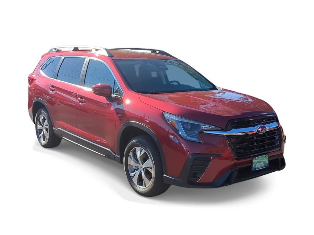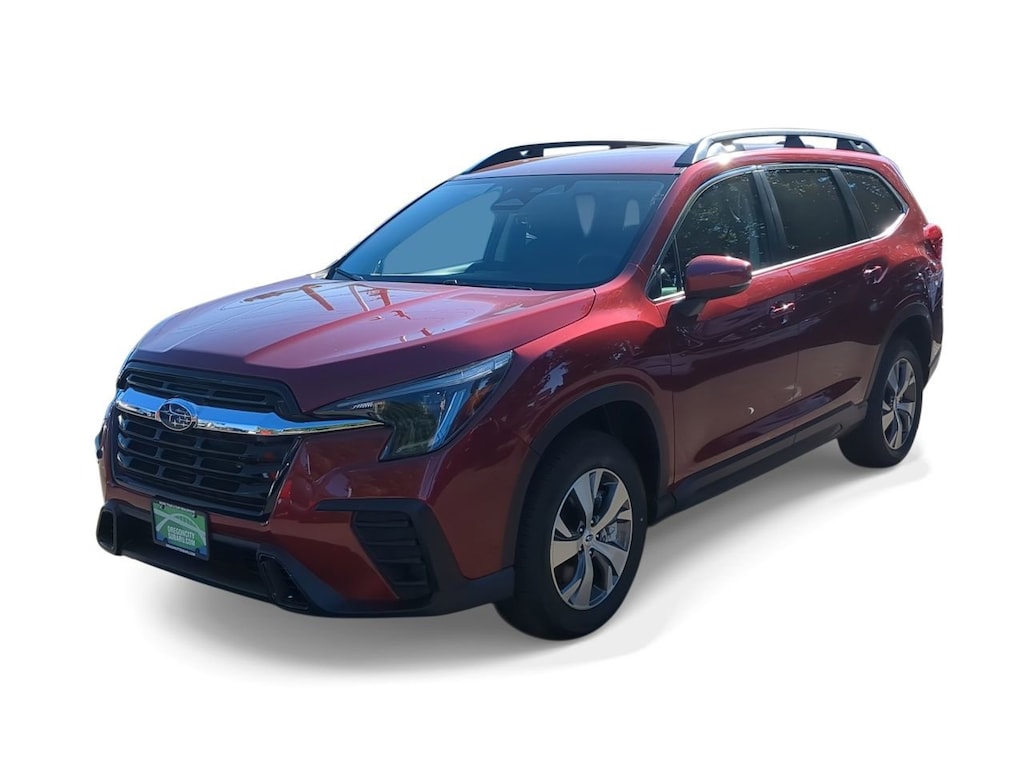 Crimson Red Pearl 2025 Subaru Ascent Premium AWD Lineartronic CVT 2.4L 4-Cylinder DOHC 16V 3rd row seats: bench, 4-Wheel Disc Brakes, 6 Speakers, ABS brakes, Air Conditioning, Alloy wheels, AM/FM radio: SiriusXM with 360L, Apple CarPlay & Android Auto, Auto High-beam Headlights, Auto-dimming Rear-View mirror, Automatic temperature control, Brake assist, Bumpers: body-color, Compass, Delay-off headlights, Driver door bin, Driver vanity mirror, Dual front impact airbags, Dual front side impact airbags, Electronic Stability Control, Emergency communication system: MySubaru Safety (3-year free trial), Exterior Parking Camera Rear, Four wheel independent suspension, Front anti-roll bar, Front Bucket Seats, Front Center Armrest, Front dual zone A/C, Front reading lights, Fully automatic headlights, Garage door transmitter: HomeLink, Heated door mirrors, Heated Front Bucket Seats, Heated front seats, Illuminated entry, Knee airbag, Leather Shift Knob, Leather steering wheel, Low tire pressure warning, Occupant sensing airbag, Outside temperature display, Overhead airbag, Overhead console, Panic alarm, Passenger door bin, Passenger vanity mirror, Power door mirrors, Power driver seat, Power Liftgate, Power steering, Power windows, Radio data system, Radio: Subaru 11.6 Multimedia Plus System, Rear air conditioning, Rear anti-roll bar, Rear reading lights, Rear window defroster, Rear window wiper, Reclining 3rd row seat, Remote keyless entry, Security system, Speed control, Speed-sensing steering, Spill Resistant Coated Cloth Upholstery, Split folding rear seat, Spoiler, Steering wheel mounted audio controls, Tachometer, Telescoping steering wheel, Tilt steering wheel, Traction control, Trip computer, Turn signal indicator mirrors, Variably intermittent wipers, Wheels: 18 x 7.5 J Gray Alloy w/Machine Finish.