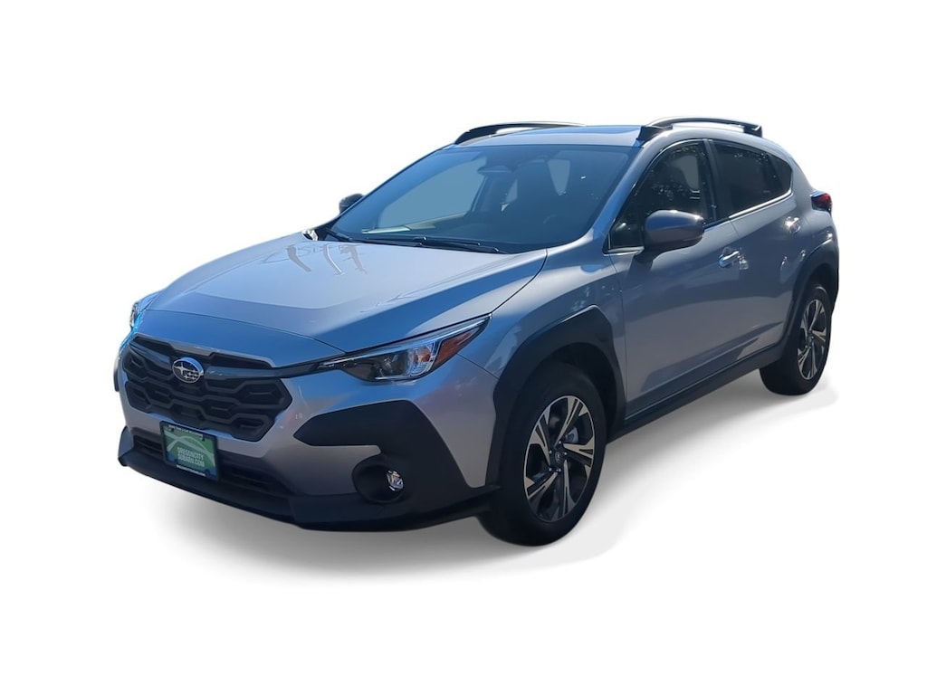 New Price! Ice Silver Metallic 2025 Subaru Crosstrek Premium AWD Lineartronic CVT 2.5L 4-Cylinder DOHC 16V 10-Way Power Drivers Seat, 4-Wheel Disc Brakes, 6 Speakers, ABS brakes, Air Conditioning, All-Weather Package, Alloy wheels, AM/FM radio: SiriusXM, Anti-whiplash front head restraints, Auto High-beam Headlights, Automatic temperature control, Blind Spot Detection (BSD), Brake assist, BSD/RCTA & All Wthr Pkg & Pwr Dr. Seat & Pwr Moonrf, Bumpers: body-color, Cargo Cover, Cloth Upholstery, Driver door bin, Driver vanity mirror, Dual front impact airbags, Dual front side impact airbags, Dual-Mode Heated Front Seats, Electronic Stability Control, Emergency communication system, Exterior Parking Camera Rear, Four wheel independent suspension, Front anti-roll bar, Front Bucket Seats, Front Center Armrest, Front dual zone A/C, Front fog lights, Front reading lights, Fully automatic headlights, Heated Power Exterior Mirrors, Illuminated entry, Knee airbag, LED Upgrade, Low tire pressure warning, Occupant sensing airbag, Outside temperature display, Overhead airbag, Overhead console, Panic alarm, Passenger door bin, Passenger vanity mirror, Power door mirrors, Power Moonroof, Power steering, Power windows, Radio data system, Radio: Subaru 11.6 Multimedia Plus System, Rear anti-roll bar, Rear Bumper Cover, Rear Cross-Traffic Alert (RCTA) System, Rear seat center armrest, Rear window defroster, Rear window wiper, Remote keyless entry, Security system, Speed control, Speed-sensing steering, Split folding rear seat, Spoiler, Steering wheel mounted audio controls, Tachometer, Telescoping steering wheel, Tilt steering wheel, Traction control, Trip computer, Turn signal indicator mirrors, Variably intermittent wipers, Wheels: 17 x 7.0 J Machine Finish Aluminum-Alloy, Windshield De-Icer Wipers.