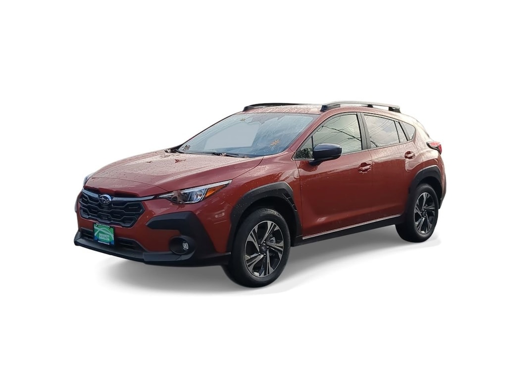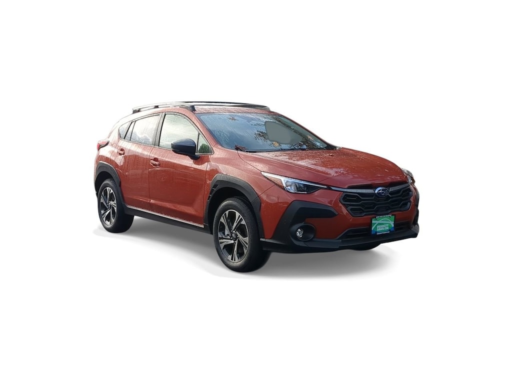 Sun Blaze Pearl 2025 Subaru Crosstrek Premium AWD Lineartronic CVT 2.5L 4-Cylinder DOHC 16V 10-Way Power Drivers Seat, 4-Wheel Disc Brakes, 6 Speakers, ABS brakes, Air Conditioning, All-Weather Floor Liners, All-Weather Package, Alloy wheels, AM/FM radio: SiriusXM, Anti-whiplash front head restraints, Auto High-beam Headlights, Automatic temperature control, Blind Spot Detection (BSD), Brake assist, BSD/RCTA & All Wthr Pkg & Pwr Dr. Seat & Pwr Moonrf, Bumpers: body-color, Cargo Cover, Cloth Upholstery, Driver door bin, Driver vanity mirror, Dual front impact airbags, Dual front side impact airbags, Dual-Mode Heated Front Seats, Electronic Stability Control, Emergency communication system, Exterior Parking Camera Rear, Four wheel independent suspension, Front anti-roll bar, Front Bucket Seats, Front Center Armrest, Front dual zone A/C, Front fog lights, Front reading lights, Fully automatic headlights, Heated Power Exterior Mirrors, Illuminated entry, Knee airbag, Low tire pressure warning, Occupant sensing airbag, Outside temperature display, Overhead airbag, Overhead console, Panic alarm, Passenger door bin, Passenger vanity mirror, Power door mirrors, Power Moonroof, Power steering, Power windows, Radio data system, Radio: Subaru 11.6 Multimedia Plus System, Rear anti-roll bar, Rear Cross-Traffic Alert (RCTA) System, Rear seat center armrest, Rear window defroster, Rear window wiper, Remote keyless entry, Security system, Speed control, Speed-sensing steering, Split folding rear seat, Spoiler, Steering wheel mounted audio controls, Tachometer, Telescoping steering wheel, Tilt steering wheel, Traction control, Trip computer, Turn signal indicator mirrors, Variably intermittent wipers, Wheels: 17 x 7.0 J Machine Finish Aluminum-Alloy, Windshield De-Icer Wipers.