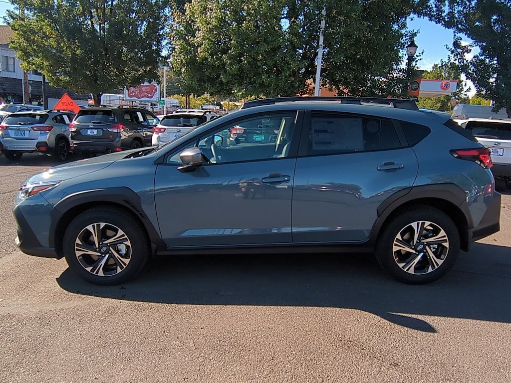 Offshore Blue Metallic 2025 Subaru Crosstrek Premium AWD Lineartronic CVT 2.5L 4-Cylinder DOHC 16V 10-Way Power Drivers Seat, 4-Wheel Disc Brakes, 6 Speakers, ABS brakes, Air Conditioning, All-Weather Package, Alloy wheels, AM/FM radio: SiriusXM, Anti-whiplash front head restraints, Auto High-beam Headlights, Auto-Dimming Mirror w/Compass & HomeLink, Automatic temperature control, Blind Spot Detection (BSD), Brake assist, BSD/RCTA & All Wthr Pkg & Pwr Dr. Seat & Pwr Moonrf, Bumpers: body-color, Cargo Cover, Cloth Upholstery, Convenience Package #2, Driver door bin, Driver vanity mirror, Dual front impact airbags, Dual front side impact airbags, Dual-Mode Heated Front Seats, Electronic Stability Control, Emergency communication system, Exterior Parking Camera Rear, Four wheel independent suspension, Front anti-roll bar, Front Bucket Seats, Front Center Armrest, Front dual zone A/C, Front fog lights, Front reading lights, Fully automatic headlights, Heated Power Exterior Mirrors, Illuminated entry, Knee airbag, LED Upgrade, Low tire pressure warning, Occupant sensing airbag, Outside temperature display, Overhead airbag, Overhead console, Panic alarm, Passenger door bin, Passenger vanity mirror, Power door mirrors, Power Moonroof, Power steering, Power windows, Radio data system, Radio: Subaru 11.6 Multimedia Plus System, Rear anti-roll bar, Rear Bumper Cover, Rear Cross-Traffic Alert (RCTA) System, Rear seat center armrest, Rear window defroster, Rear window wiper, Remote keyless entry, Security system, Speed control, Speed-sensing steering, Splash Guards, Split folding rear seat, Spoiler, Steering wheel mounted audio controls, Tachometer, Telescoping steering wheel, Tilt steering wheel, Traction control, Trip computer, Turn signal indicator mirrors, Variably intermittent wipers, Wheels: 17 x 7.0 J Machine Finish Aluminum-Alloy, Windshield De-Icer Wipers.