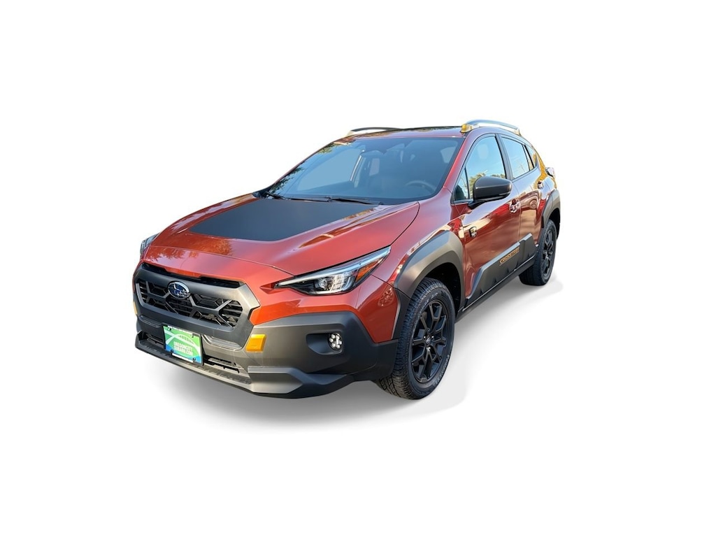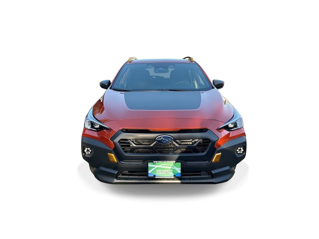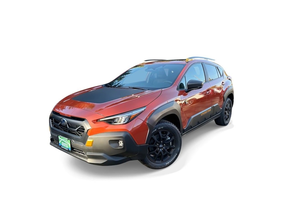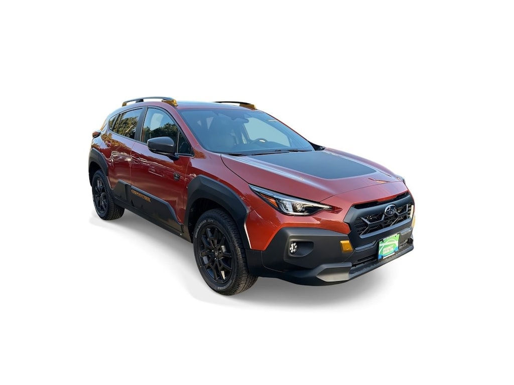 Sun Blaze Pearl 2025 Subaru Crosstrek Wilderness AWD Lineartronic CVT 2.5L 4-Cylinder DOHC 16V 4-Wheel Disc Brakes, 6 Speakers, ABS brakes, Air Conditioning, Alloy wheels, AM/FM radio: SiriusXM, Anti-whiplash front head restraints, Auto High-beam Headlights, Automatic temperature control, Brake assist, Bumpers: body-color, Driver door bin, Driver vanity mirror, Dual front impact airbags, Dual front side impact airbags, Electronic Stability Control, Exterior Parking Camera Rear, Four wheel independent suspension, Front anti-roll bar, Front Bucket Seats, Front Center Armrest, Front dual zone A/C, Front fog lights, Front reading lights, Fully automatic headlights, Heated door mirrors, Heated Front Bucket Seats, Heated front seats, Illuminated entry, Knee airbag, Leather Shift Knob, Leather steering wheel, Low tire pressure warning, Occupant sensing airbag, Outside temperature display, Overhead airbag, Overhead console, Panic alarm, Passenger door bin, Passenger vanity mirror, Power door mirrors, Power steering, Power windows, Radio data system, Rear anti-roll bar, Rear seat center armrest, Rear window defroster, Rear window wiper, Remote keyless entry, Security system, Speed control, Speed-sensing steering, Split folding rear seat, Spoiler, Steering wheel mounted audio controls, Tachometer, Telescoping steering wheel, Tilt steering wheel, Traction control, Trip computer, Turn signal indicator mirrors, Variably intermittent wipers, Wheels: 17 x 7.0 J Matte Black Aluminum-Alloy, Wilderness StarTex Upholstery.