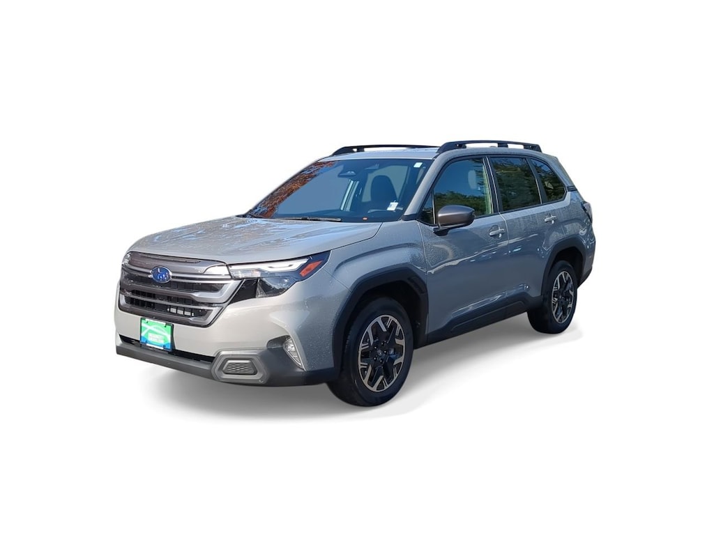 New Price! River Rock Pearl 2025 Subaru Forester Premium AWD Lineartronic CVT 2.5L 4-Cylinder DOHC 16V 4-Wheel Disc Brakes, 6 Speakers, ABS brakes, Air Conditioning, Alloy wheels, AM/FM radio: SiriusXM with 360L, Anti-whiplash front head restraints, Auto High-beam Headlights, Automatic temperature control, Brake assist, Bumpers: body-color, Driver door bin, Driver vanity mirror, Dual front impact airbags, Dual front side impact airbags, Electronic Stability Control, Emergency communication system: MySubaru Safety (3-year free trial), Exterior Parking Camera Rear, Four wheel independent suspension, Front anti-roll bar, Front Bucket Seats, Front Center Armrest, Front dual zone A/C, Front fog lights, Front reading lights, Fully automatic headlights, Heated door mirrors, Heated Front Bucket Seats, Heated front seats, Illuminated entry, Knee airbag, Leather steering wheel, Low tire pressure warning, Occupant sensing airbag, Outside temperature display, Overhead airbag, Overhead console, Panic alarm, Passenger door bin, Passenger vanity mirror, Power door mirrors, Power driver seat, Power moonroof: Panoramic, Power steering, Power windows, Premium Textured Cloth Upholstery, Radio data system, Radio: Subaru 11.6 Multimedia Plus System, Rear anti-roll bar, Rear seat center armrest, Rear window defroster, Rear window wiper, Remote keyless entry, Security system, Speed control, Speed-sensing steering, Split folding rear seat, Spoiler, Standard Model, Steering wheel mounted audio controls, Tachometer, Telescoping steering wheel, Tilt steering wheel, Traction control, Trip computer, Variably intermittent wipers, Wheels: 17 x 7.0 J Dark Metallic Aluminum-Alloy.