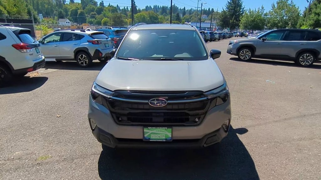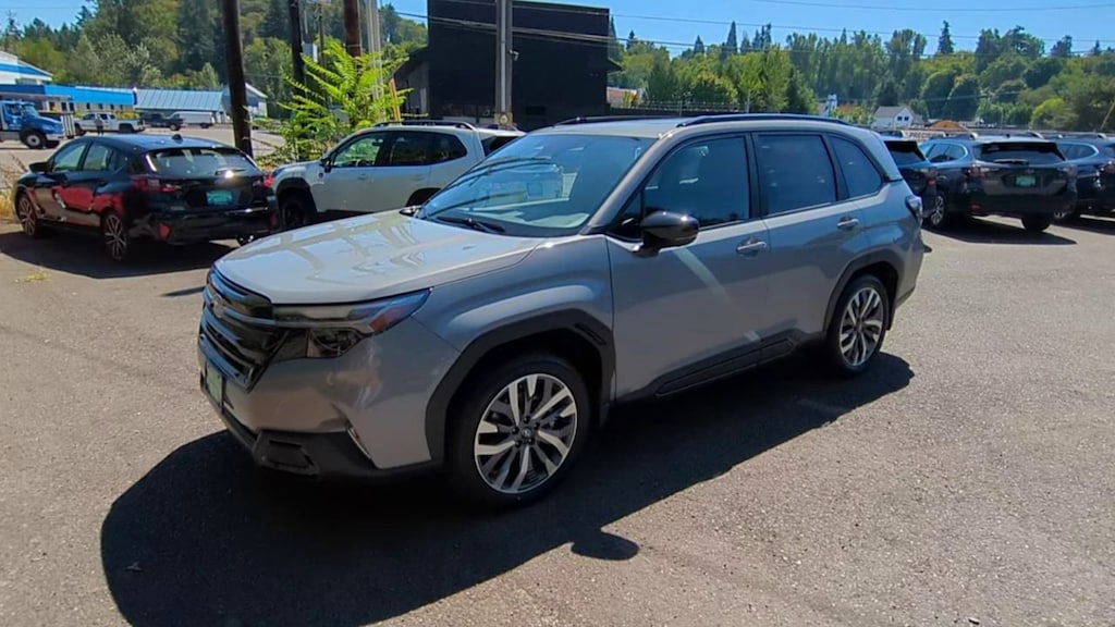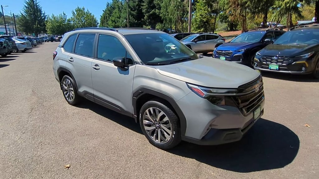 River Rock Pearl 2025 Subaru Forester Touring AWD Lineartronic CVT 2.5L 4-Cylinder DOHC 16V 11 Speakers, 4-Wheel Disc Brakes, ABS brakes, Air Conditioning, All-Weather Floor Liners, Alloy wheels, AM/FM radio: SiriusXM with 360L, Anti-whiplash front head restraints, Auto High-beam Headlights, Auto-Dimming Exterior Mirror w/Approach Light, Automatic temperature control, Brake assist, Bumpers: body-color, Cargo Tray, Driver door bin, Driver vanity mirror, Dual front impact airbags, Dual front side impact airbags, Electronic Stability Control, Emergency communication system: MySubaru Safety (3-year free trial), Exterior Parking Camera Rear, Four wheel independent suspension, Front anti-roll bar, Front Bucket Seats, Front Center Armrest, Front dual zone A/C, Front fog lights, Front reading lights, Fully automatic headlights, harman/kardonî Speakers, Heated & Ventilated Front Bucket Seats, Heated door mirrors, Heated front seats, Heated rear seats, Heated steering wheel, HVAC memory, Illuminated entry, Knee airbag, Leather steering wheel, LED Upgrade, Low tire pressure warning, Memory seat, Navigation System, Occupant sensing airbag, Outside temperature display, Overhead airbag, Overhead console, Panic alarm, Passenger door bin, Passenger vanity mirror, Perforated Leather-Trimmed Upholstery, Power door mirrors, Power driver seat, Power Liftgate, Power moonroof: Panoramic, Power passenger seat, Power steering, Power windows, Protection Package, Radio data system, Radio: Subaru 11.6 Multimedia Navigation System, Rear anti-roll bar, Rear Bumper Cover, Rear seat center armrest, Rear Seatback Protector, Rear window defroster, Rear window wiper, Remote keyless entry, Security system, Speed control, Speed-sensing steering, Splash Guards, Split folding rear seat, Spoiler, Standard Model, Steering wheel mounted audio controls, Tachometer, Telescoping steering wheel, Tilt steering wheel, Traction control, Trip computer, Turn signal indicator mirrors, Variably intermittent wipers, Ventilated front seats, Wheels: 19 x 7.5 J Dark Gray Aluminum-Alloy.