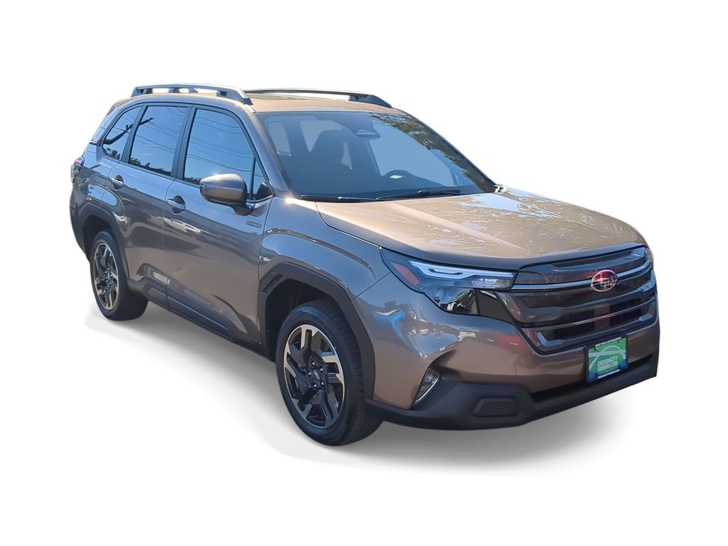 Brilliant Bronze Metallic 2025 Subaru Forester Hybrid Premium AWD Lineartronic CVT 2.5L 4-Cylinder DOHC 16V 2.5L 4-Cylinder DOHC 16V, 4-Wheel Disc Brakes, 6 Speakers, ABS brakes, Air Conditioning, All-Weather Floor Liners, Alloy wheels, AM/FM radio: SiriusXM with 360L, Anti-whiplash front head restraints, Auto High-beam Headlights, Automatic temperature control, Brake assist, Bumpers: body-color, Compass, Driver door bin, Driver vanity mirror, Dual front impact airbags, Dual front side impact airbags, Electronic Stability Control, Emergency communication system: MySubaru Safety (3-year free trial), Exterior Parking Camera Rear, Four wheel independent suspension, Front anti-roll bar, Front Bucket Seats, Front Center Armrest, Front dual zone A/C, Front fog lights, Front reading lights, Fully automatic headlights, Heated door mirrors, Heated Front Bucket Seats, Heated front seats, Illuminated entry, Knee airbag, Low tire pressure warning, Navigation system: TomTom Navigation w/what3words, Occupant sensing airbag, Outside temperature display, Overhead airbag, Overhead console, Panic alarm, Passenger door bin, Passenger vanity mirror, Power door mirrors, Power driver seat, Power Liftgate, Power moonroof: Panoramic, Power steering, Power windows, Premium Cloth Upholstery, Radio data system, Radio: Subaru 11.6 Multimedia Navigation System, Rear anti-roll bar, Rear Bumper Cover, Rear seat center armrest, Rear window defroster, Rear window wiper, Remote keyless entry, Security system, Speed control, Speed-sensing steering, Split folding rear seat, Spoiler, Standard Model, Steering wheel mounted audio controls, Tachometer, Telescoping steering wheel, Tilt steering wheel, Traction control, Trip computer, Variably intermittent wipers, Wheels: 18 x 7.0 J Dark Metallic Aluminum-Alloy, 2.5L 4-Cylinder DOHC 16V.