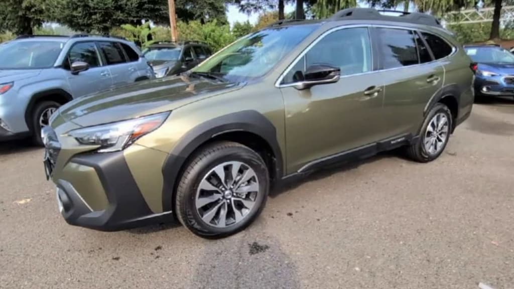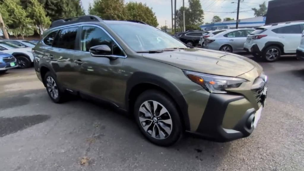 Green Metallic 2025 Subaru Outback Limited AWD CVT Lineartronic 2.5L 4-Cylinder DOHC 16V 12 Speakers, 4-Wheel Disc Brakes, ABS brakes, Air Conditioning, All-Weather Floor Liners, Alloy wheels, AM/FM radio: SiriusXM with 360L, Apple CarPlay & Android Auto, Auto High-beam Headlights, Auto-dimming Rear-View mirror, Automatic temperature control, Brake assist, Bumpers: body-color, Compass, Driver door bin, Driver vanity mirror, Dual front impact airbags, Dual front side impact airbags, Electronic Stability Control, Emergency communication system: MySubaru Safety (3-year free trial), Exterior Parking Camera Rear, Four wheel independent suspension, Front anti-roll bar, Front Bucket Seats, Front Center Armrest w/Storage, Front dual zone A/C, Front fog lights, Front reading lights, Fully automatic headlights, Garage door transmitter: HomeLink, harman/kardonî Speakers, Heated door mirrors, Heated Front Bucket Seats, Heated front seats, Heated rear seats, Heated steering wheel, HVAC memory, Illuminated entry, Knee airbag, Leather Shift Knob, Leather steering wheel, LED Upgrade, Low tire pressure warning, Memory seat, Navigation system: TomTom Navigation w/what3words, Occupant sensing airbag, Outside temperature display, Overhead airbag, Overhead console, Panic alarm, Passenger door bin, Passenger vanity mirror, Perforated Leather-Trimmed Upholstery, Power door mirrors, Power driver seat, Power Liftgate, Power moonroof, Power passenger seat, Power steering, Power windows, Radio: Subaru 11.6 Multimedia System w/Navigation, Rear anti-roll bar, Rear Bumper Cover, Rear Seat Back Protector, Rear seat center armrest, Rear window defroster, Rear window wiper, Remote keyless entry, Roof rack, Security system, Speed control, Speed-sensing steering, Splash Guards, Split folding rear seat, Spoiler, Standard Model, Steering wheel mounted audio controls, Tachometer, Telescoping steering wheel, Tilt steering wheel, Traction control, Trip computer, Turn signal indicator mirrors, Variably intermittent wipers, Wheels: 18 x 7J Black Aluminum-Alloy.
