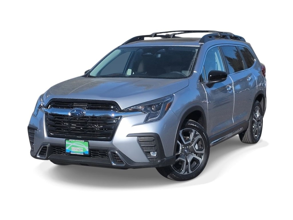 Ice Silver Metallic 2026 Subaru Ascent Touring AWD Lineartronic CVT 2.4L 4-Cylinder DOHC 16V 14 Speakers, 2nd Row Captains Chairs Rear Seatback Protector, 3rd Row Bench Rear Seatback Protector, 3rd row seats: bench, 4-Wheel Disc Brakes, ABS brakes, Aero Crossbar Set, Air Conditioning, All-Weather Floor Liners, Alloy wheels, AM/FM radio: SiriusXM with 360L, Apple CarPlay & Android Auto, Auto High-beam Headlights, Auto-Dimming Exterior Mirror with Approach Light, Auto-dimming Rear-View mirror, Automatic temperature control, Brake assist, Bumpers: body-color, Cargo Tray, Compass, Delay-off headlights, Driver door bin, Driver vanity mirror, Dual front impact airbags, Dual front side impact airbags, Electronic Stability Control, Emergency communication system: MySubaru Companion (5-years free), Exterior Parking Camera Rear, Four wheel independent suspension, Front anti-roll bar, Front Bucket Seats, Front Center Armrest, Front dual zone A/C, Front fog lights, Front reading lights, Fully automatic headlights, Garage door transmitter: HomeLink, harman/kardonî Speakers, Heated and Ventilated Front Bucket Seats, Heated door mirrors, Heated front seats, Heated rear seats, Heated steering wheel, HVAC memory, Illuminated entry, Knee airbag, Leather Shift Knob, Leather steering wheel, LED Upgrade, Low tire pressure warning, Memory seat, Navigation system: MySubaru Navigator (1-year trial), Occupant sensing airbag, Outside temperature display, Overhead airbag, Overhead console, Panic alarm, Passenger door bin, Passenger vanity mirror, Perforated Nappa Leather-Trimmed Upholstery, Power door mirrors, Power driver seat, Power Liftgate, Power moonroof, Power passenger seat, Power steering, Power windows, Radio data system, Radio: Subaru 11.6 Multimedia System with Navigation, Rain sensing wipers, Rear air conditioning, Rear anti-roll bar, Rear Bumper Cover, Rear reading lights, Rear window defroster, Rear window wiper, Reclining 3rd row seat, Remote keyless entry, Security system, Speed control, Speed-sensing steering, Split folding rear seat, Spoiler, Standard Model, Steering wheel mounted audio controls, Tachometer, Telescoping steering wheel, Tilt steering wheel, Traction control, Trip computer, Turn signal indicator mirrors, Variably intermittent wipers, Ventilated front seats, Wheels: 20 x 7.5 J Dark Gray Alloy with Machine Finish.