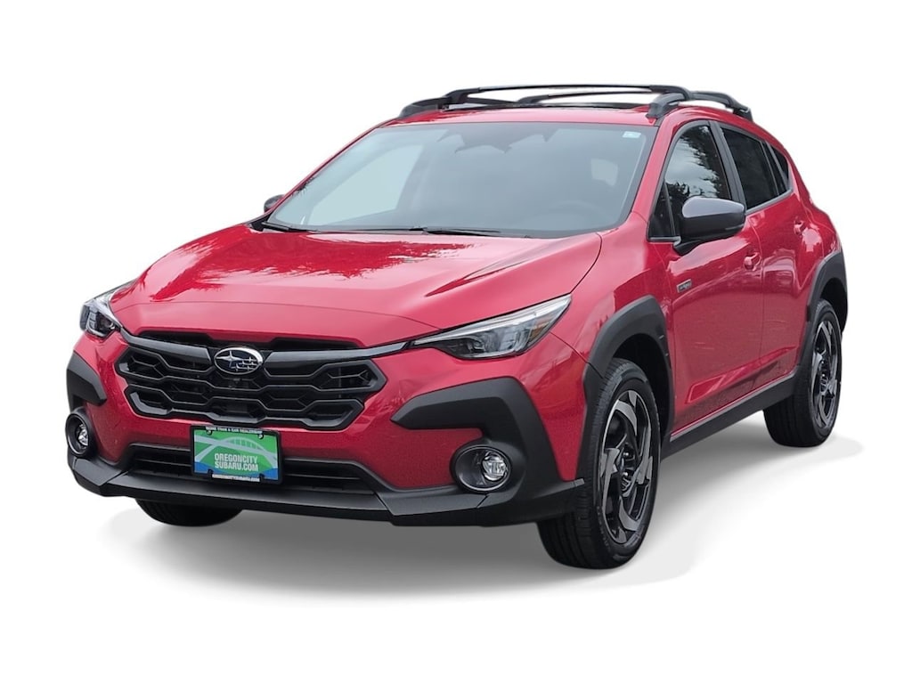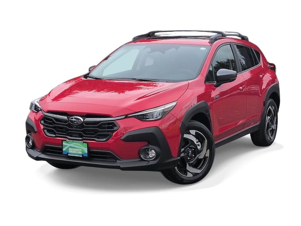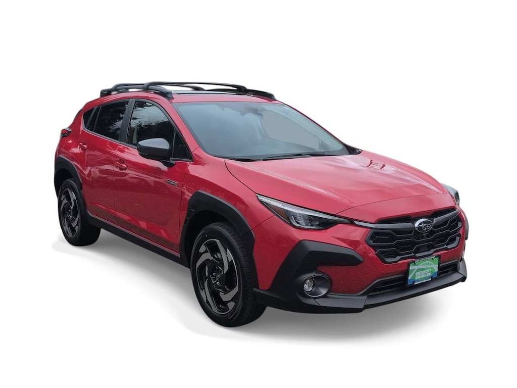 Pure Red 2026 Subaru Crosstrek Hybrid Limited AWD Lineartronic CVT 2.5L 4-Cylinder DOHC 16V 2.5L 4-Cylinder DOHC 16V, 10 Speakers, 360 Surround View Monitor, 4-Wheel Disc Brakes, ABS brakes, Aero Crossbar Set, Air Conditioning, All-Weather Floor Liners, Alloy wheels, AM/FM radio: SiriusXM, Anti-whiplash front head restraints, Auto High-beam Headlights, Auto-Dimming Exterior Mirror with Approach Light, Auto-Dimming Mirror with Compass and HomeLink, Automatic temperature control, Brake assist, Bumpers: body-color, Compass, Crosstrek Mirror Package, Driver door bin, Driver vanity mirror, Dual front impact airbags, Dual front side impact airbags, Electronic Stability Control, Emergency communication system: MySubaru Companion (5-years free), Exterior Parking Camera Rear, Four wheel independent suspension, Front anti-roll bar, Front Bucket Seats, Front Center Armrest, Front dual zone A/C, Front fog lights, Front reading lights, Fully automatic headlights, harman/kardonî Speakers, Heated door mirrors, Heated Front Bucket Seats, Heated front seats, Heated steering wheel, Illuminated entry, Knee airbag, Leather Shift Knob, Leather steering wheel, LED Upgrade, Low tire pressure warning, Navigation System, Occupant sensing airbag, Outside temperature display, Overhead airbag, Overhead console, Panic alarm, Passenger door bin, Passenger vanity mirror, Perforated StarTex Upholstery, Power door mirrors, Power driver seat, Power Moonroof, Power Moonroof and Surround View Monitor, Power steering, Power windows, Radio data system, Radio: Subaru 11.6 Multimedia Navigation System, Rear anti-roll bar, Rear Bumper Cover, Rear seat center armrest, Rear side impact airbag, Rear window defroster, Rear window wiper, Remote keyless entry, Security system, Speed control, Speed-sensing steering, Split folding rear seat, Spoiler, Steering wheel mounted audio controls, Tachometer, Telescoping steering wheel, Tilt steering wheel, Traction control, Trip computer, Turn signal indicator mirrors, Variably intermittent wipers, Wheels: 18 x 7.0 J Dark Gray Aluminum-Alloy, 2.5L 4-Cylinder DOHC 16V.