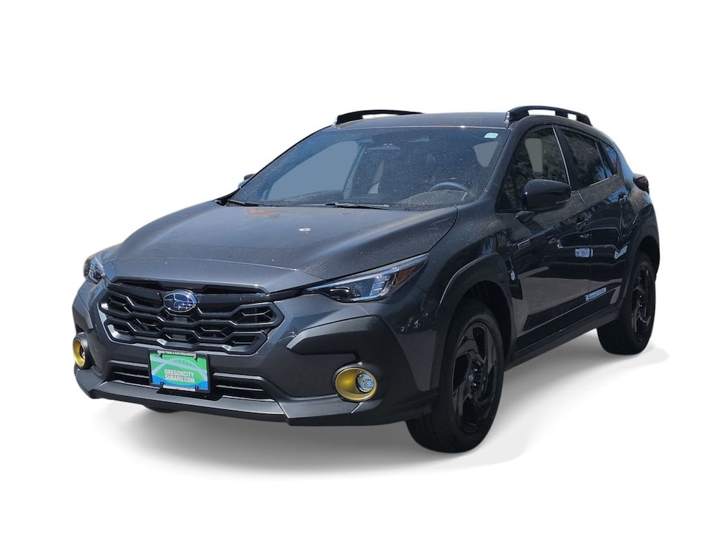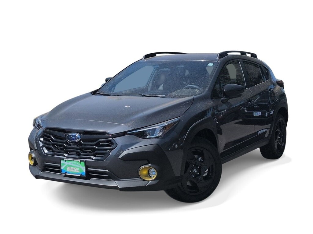 Magnetite Gray Metallic 2026 Subaru Crosstrek Hybrid Sport AWD Lineartronic CVT 2.5L 4-Cylinder DOHC 16V 2.5L 4-Cylinder DOHC 16V, 4-Wheel Disc Brakes, 6 Speakers, ABS brakes, Air Conditioning, All-Weather Floor Liners, Alloy wheels, AM/FM radio: SiriusXM, Anti-whiplash front head restraints, Auto High-beam Headlights, Auto-Dimming Mirror with Compass and HomeLink, Automatic temperature control, Brake assist, Bumpers: body-color, Compass, Driver door bin, Driver vanity mirror, Dual front impact airbags, Dual front side impact airbags, Electronic Stability Control, Emergency communication system: MySubaru Companion (5-years free), Exterior Parking Camera Rear, Four wheel independent suspension, Front anti-roll bar, Front Bucket Seats, Front Center Armrest, Front dual zone A/C, Front fog lights, Front reading lights, Fully automatic headlights, Heated door mirrors, Heated Front Bucket Seats, Heated front seats, Illuminated entry, Knee airbag, Leather Shift Knob, Leather steering wheel, Low tire pressure warning, Navigation System, Occupant sensing airbag, Outside temperature display, Overhead airbag, Overhead console, Panic alarm, Passenger door bin, Passenger vanity mirror, Power door mirrors, Power driver seat, Power moonroof, Power steering, Power windows, Radio data system, Radio: Subaru 11.6 Multimedia Navigation System, Rear anti-roll bar, Rear Bumper Cover, Rear seat center armrest, Rear side impact airbag, Rear window defroster, Rear window wiper, Remote keyless entry, Security system, Speed control, Speed-sensing steering, Split folding rear seat, Spoiler, Sport Cloth Upholstery, Standard Model, Steering wheel mounted audio controls, Tachometer, Telescoping steering wheel, Tilt steering wheel, Traction control, Trip computer, Turn signal indicator mirrors, Variably intermittent wipers, Wheels: 18 x 7.0 J Dark Gray Aluminum-Alloy, 2.5L 4-Cylinder DOHC 16V.