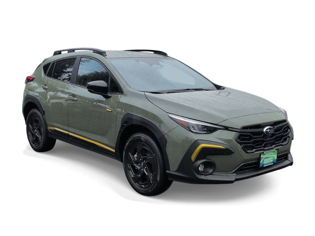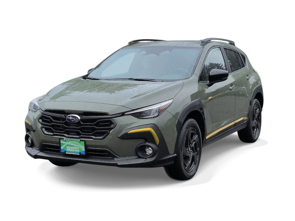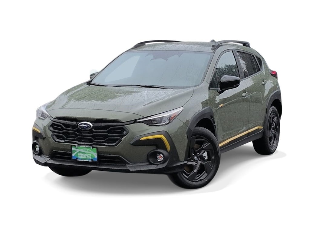 Alpine Green 2026 Subaru Crosstrek Sport AWD Lineartronic CVT 2.5L 4-Cylinder DOHC 16V 4-Wheel Disc Brakes, 6 Speakers, ABS brakes, Air Conditioning, All-Weather Floor Liners, Alloy wheels, AM/FM radio: SiriusXM, Anti-whiplash front head restraints, Auto High-beam Headlights, Auto-Dimming Exterior Mirror with Approach Light, Auto-Dimming Mirror with Compass and HomeLink, Automatic temperature control, Brake assist, Bumpers: body-color, Crosstrek Mirror Package, Driver door bin, Driver vanity mirror, Dual front impact airbags, Dual front side impact airbags, Electronic Stability Control, Emergency communication system: MySubaru Companion (5-years free), Exterior Parking Camera Rear, Four wheel independent suspension, Front anti-roll bar, Front Bucket Seats, Front Center Armrest, Front dual zone A/C, Front fog lights, Front reading lights, Fully automatic headlights, Heated door mirrors, Heated Front Bucket Seats, Heated front seats, Illuminated entry, Knee airbag, Leather Shift Knob, Leather steering wheel, Low tire pressure warning, Occupant sensing airbag, Outside temperature display, Overhead airbag, Overhead console, Panic alarm, Passenger door bin, Passenger vanity mirror, Power door mirrors, Power steering, Power windows, Radio data system, Radio: Subaru 11.6 Multimedia Plus System, Rear anti-roll bar, Rear Bumper Cover, Rear seat center armrest, Rear side impact airbag, Rear window defroster, Rear window wiper, Remote keyless entry, Security system, Speed control, Speed-sensing steering, Split folding rear seat, Spoiler, Sport Cloth Upholstery, Standard Model, Steering wheel mounted audio controls, Tachometer, Telescoping steering wheel, Tilt steering wheel, Traction control, Trip computer, Turn signal indicator mirrors, Variably intermittent wipers, Wheels: 18 x 7.0 J Dark Gray Aluminum-Alloy.