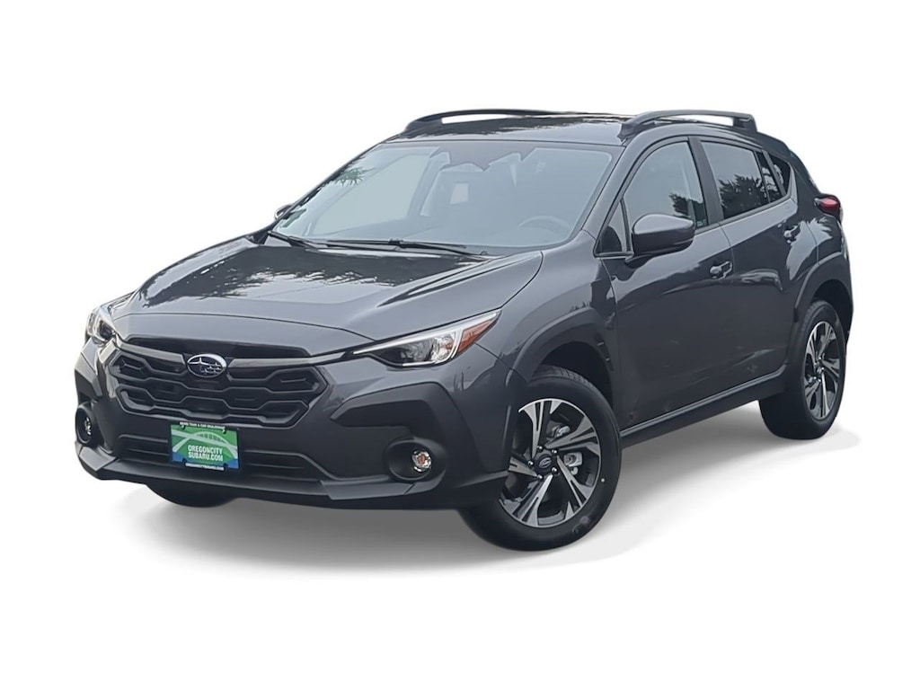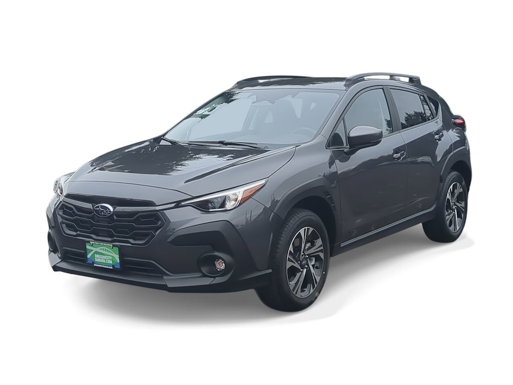 Magnetite Gray Metallic/Crystal Black Silica 2026 Subaru Crosstrek Premium AWD Lineartronic CVT 2.5L 4-Cylinder DOHC 16V 4-Wheel Disc Brakes, 6 Speakers, ABS brakes, Air Conditioning, Alloy wheels, AM/FM radio: SiriusXM, Anti-whiplash front head restraints, Auto High-beam Headlights, Automatic temperature control, Brake assist, Bumpers: body-color, Cloth Upholstery, Driver door bin, Driver vanity mirror, Dual front impact airbags, Dual front side impact airbags, Electronic Stability Control, Emergency communication system: MySubaru Companion (5-years free), Exterior Parking Camera Rear, Four wheel independent suspension, Front anti-roll bar, Front Bucket Seats, Front Center Armrest, Front dual zone A/C, Front fog lights, Front reading lights, Fully automatic headlights, Illuminated entry, Knee airbag, Low tire pressure warning, Occupant sensing airbag, Outside temperature display, Overhead airbag, Overhead console, Panic alarm, Passenger door bin, Passenger vanity mirror, Power door mirrors, Power steering, Power windows, Radio data system, Radio: Subaru 11.6 Multimedia Plus System, Rear anti-roll bar, Rear seat center armrest, Rear side impact airbag, Rear window defroster, Rear window wiper, Remote keyless entry, Security system, Speed control, Speed-sensing steering, Split folding rear seat, Spoiler, Steering wheel mounted audio controls, Tachometer, Telescoping steering wheel, Tilt steering wheel, Traction control, Trip computer, Turn signal indicator mirrors, Variably intermittent wipers, Wheels: 17 x 7.0 J Machine Finish Aluminum-Alloy.