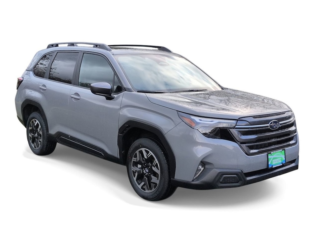River Rock Pearl 2026 Subaru Forester Premium AWD Lineartronic CVT 2.5L 4-Cylinder DOHC 16V 4-Wheel Disc Brakes, 6 Speakers, ABS brakes, Air Conditioning, All-Weather Floor Liners, Alloy wheels, AM/FM radio: SiriusXM with 360L, Anti-whiplash front head restraints, Auto High-beam Headlights, Automatic temperature control, Brake assist, Bumpers: body-color, Cargo Tray, Driver door bin, Driver vanity mirror, Dual front impact airbags, Dual front side impact airbags, Electronic Stability Control, Emergency communication system: MySubaru Companion (5-years free), Exterior Parking Camera Rear, Four wheel independent suspension, Front anti-roll bar, Front Bucket Seats, Front Center Armrest, Front dual zone A/C, Front fog lights, Front reading lights, Fully automatic headlights, Heated door mirrors, Heated Front Bucket Seats, Heated front seats, Illuminated entry, Knee airbag, Leather steering wheel, Low tire pressure warning, Occupant sensing airbag, Outside temperature display, Overhead airbag, Overhead console, Panic alarm, Passenger door bin, Passenger vanity mirror, Power door mirrors, Power driver seat, Power moonroof: Panoramic, Power steering, Power windows, Premium Textured Cloth Upholstery, Radio data system, Radio: Subaru 11.6 Multimedia Plus System, Rear anti-roll bar, Rear Bumper Cover, Rear seat center armrest, Rear window defroster, Rear window wiper, Remote keyless entry, Security system, Speed control, Speed-sensing steering, Split folding rear seat, Spoiler, Standard Model, Steering wheel mounted audio controls, Tachometer, Telescoping steering wheel, Tilt steering wheel, Traction control, Trip computer, Variably intermittent wipers, Wheels: 17 x 7.0 J Dark Metallic Aluminum-Alloy.