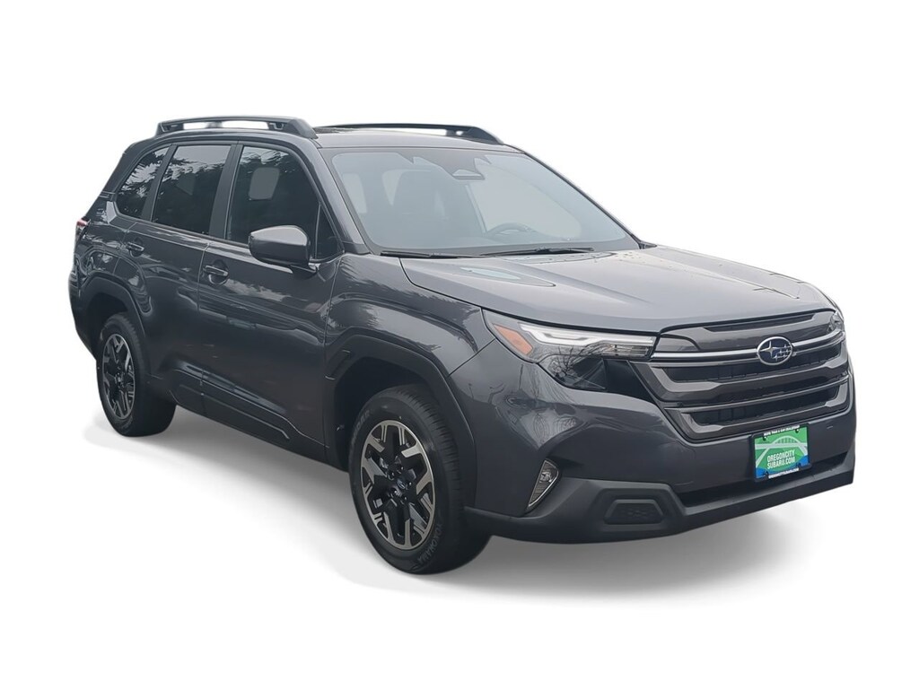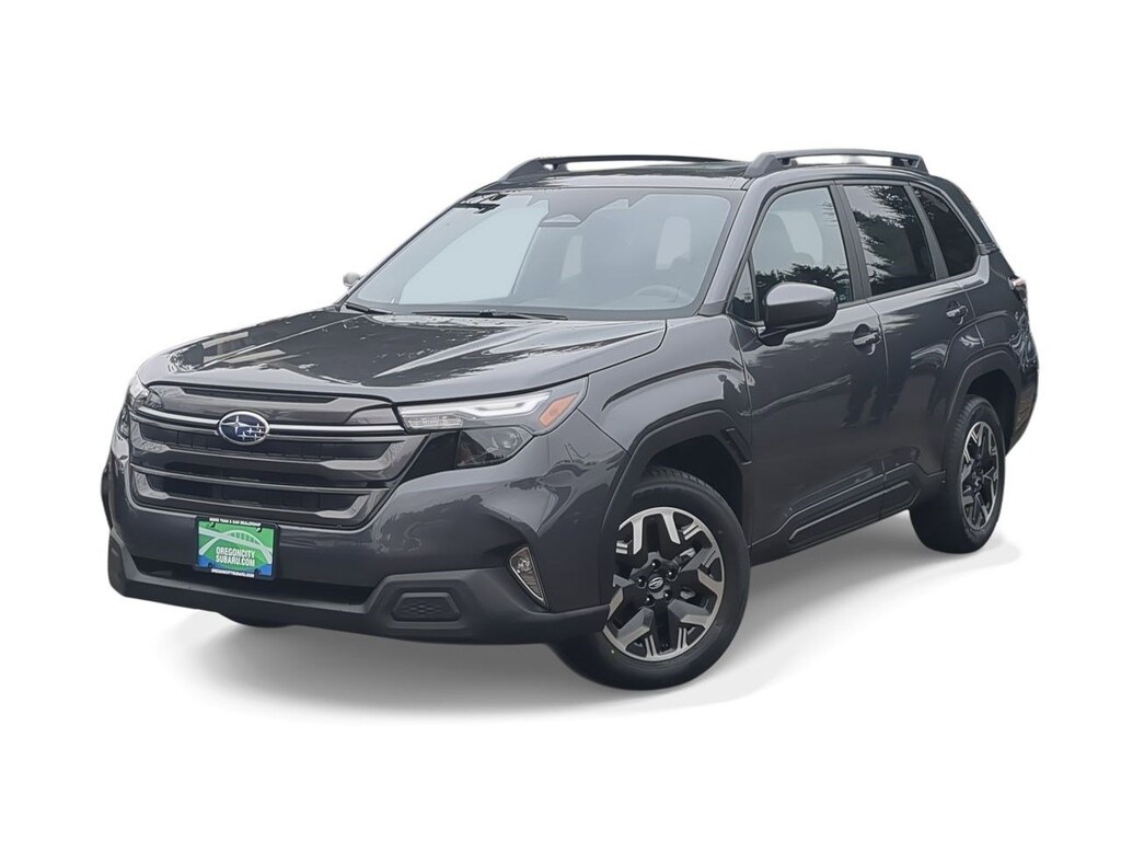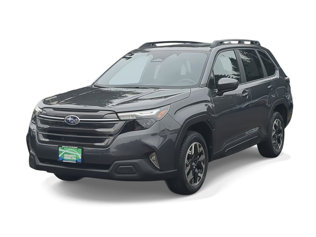 Gray 2026 Subaru Forester Premium AWD Lineartronic CVT 2.5L 4-Cylinder DOHC 16V 4-Wheel Disc Brakes, 6 Speakers, ABS brakes, Air Conditioning, Alloy wheels, AM/FM radio: SiriusXM with 360L, Anti-whiplash front head restraints, Auto High-beam Headlights, Automatic temperature control, Brake assist, Bumpers: body-color, Driver door bin, Driver vanity mirror, Dual front impact airbags, Dual front side impact airbags, Electronic Stability Control, Emergency communication system: MySubaru Companion (5-years free), Exterior Parking Camera Rear, Four wheel independent suspension, Front anti-roll bar, Front Bucket Seats, Front Center Armrest, Front dual zone A/C, Front fog lights, Front reading lights, Fully automatic headlights, Heated door mirrors, Heated Front Bucket Seats, Heated front seats, Illuminated entry, Knee airbag, Leather steering wheel, Low tire pressure warning, Occupant sensing airbag, Outside temperature display, Overhead airbag, Overhead console, Panic alarm, Passenger door bin, Passenger vanity mirror, Power door mirrors, Power driver seat, Power moonroof: Panoramic, Power steering, Power windows, Premium Textured Cloth Upholstery, Radio data system, Radio: Subaru 11.6 Multimedia Plus System, Rear anti-roll bar, Rear seat center armrest, Rear window defroster, Rear window wiper, Remote keyless entry, Security system, Speed control, Speed-sensing steering, Split folding rear seat, Spoiler, Steering wheel mounted audio controls, Tachometer, Telescoping steering wheel, Tilt steering wheel, Traction control, Trip computer, Variably intermittent wipers, Wheels: 17 x 7.0 J Dark Metallic Aluminum-Alloy.