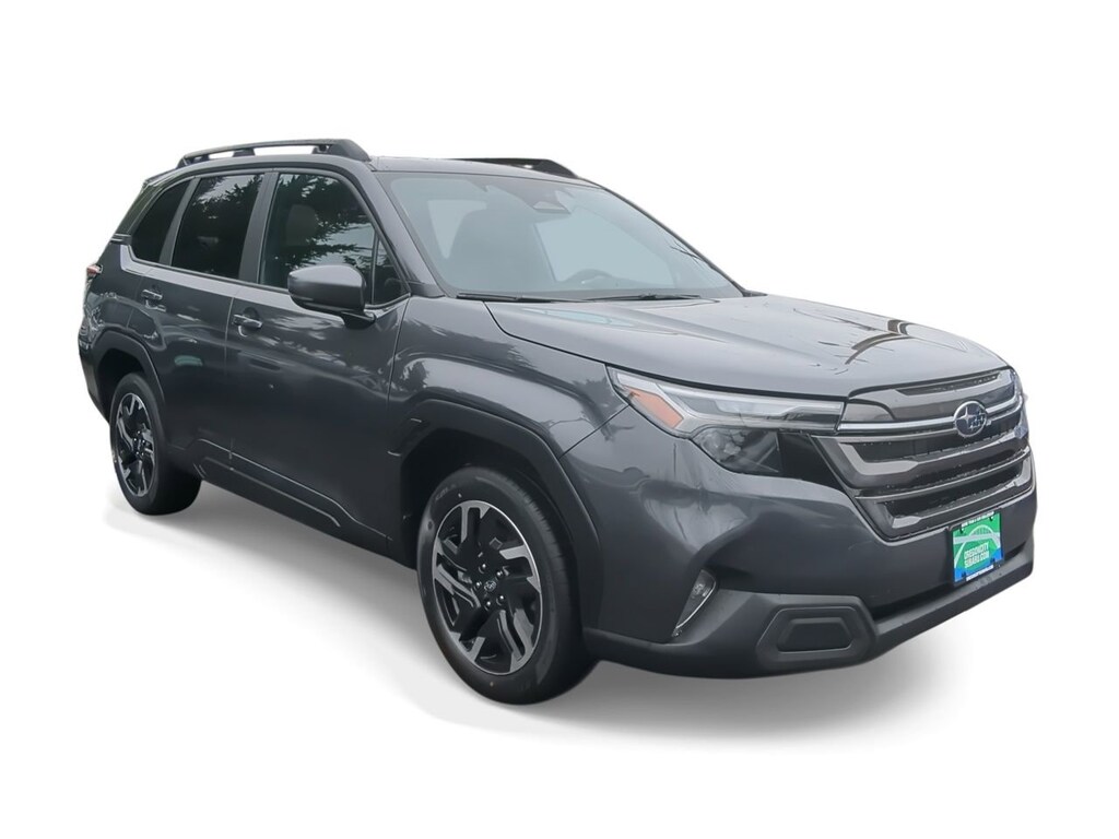 Gray 2026 Subaru Forester Limited AWD Lineartronic CVT 2.5L 4-Cylinder DOHC 16V 4-Wheel Disc Brakes, 6 Speakers, ABS brakes, Air Conditioning, Alloy wheels, AM/FM radio: SiriusXM with 360L, Anti-whiplash front head restraints, Auto High-beam Headlights, Automatic temperature control, Brake assist, Bumpers: body-color, Driver door bin, Driver vanity mirror, Dual front impact airbags, Dual front side impact airbags, Electronic Stability Control, Emergency communication system: MySubaru Companion (5-years free), Exterior Parking Camera Rear, Four wheel independent suspension, Front anti-roll bar, Front Bucket Seats, Front Center Armrest, Front dual zone A/C, Front fog lights, Front reading lights, Fully automatic headlights, Heated door mirrors, Heated Front Bucket Seats, Heated front seats, Heated steering wheel, Illuminated entry, Knee airbag, Leather steering wheel, Low tire pressure warning, Occupant sensing airbag, Outside temperature display, Overhead airbag, Overhead console, Panic alarm, Passenger door bin, Passenger vanity mirror, Perforated Leather-Trimmed Upholstery, Power door mirrors, Power driver seat, Power Liftgate, Power moonroof: Panoramic, Power passenger seat, Power steering, Power windows, Radio data system, Radio: Subaru 11.6 Multimedia Plus System, Rain sensing wipers, Rear anti-roll bar, Rear seat center armrest, Rear window defroster, Rear window wiper, Remote keyless entry, Security system, Speed control, Speed-sensing steering, Split folding rear seat, Spoiler, Steering wheel mounted audio controls, Tachometer, Telescoping steering wheel, Tilt steering wheel, Traction control, Trip computer, Turn signal indicator mirrors, Variably intermittent wipers, Wheels: 18 x 7.0 J Dark Metallic Aluminum-Alloy.