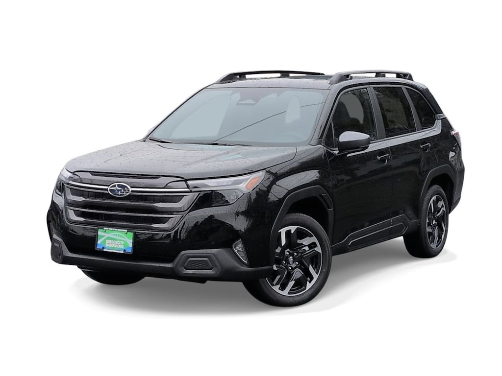 Crystal Black Silica 2026 Subaru Forester Limited AWD Lineartronic CVT 2.5L 4-Cylinder DOHC 16V 4-Wheel Disc Brakes, 6 Speakers, ABS brakes, Air Conditioning, All-Weather Floor Liners, Alloy wheels, AM/FM radio: SiriusXM with 360L, Anti-whiplash front head restraints, Auto High-beam Headlights, Auto-Dimming Exterior Mirror with Approach Light, Auto-Dimming Mirror with Compass and HomeLink, Automatic temperature control, Brake assist, Bumpers: body-color, Cargo Tray, Driver door bin, Driver vanity mirror, Dual front impact airbags, Dual front side impact airbags, Electronic Stability Control, Emergency communication system: MySubaru Companion (5-years free), Exterior Parking Camera Rear, Four wheel independent suspension, Front anti-roll bar, Front Bucket Seats, Front Center Armrest, Front dual zone A/C, Front fog lights, Front reading lights, Fully automatic headlights, Harman/Kardon Speaker System and Navigation and Reverse Automatic Braking, Heated door mirrors, Heated Front Bucket Seats, Heated front seats, Heated steering wheel, Illuminated entry, Knee airbag, Leather steering wheel, Low tire pressure warning, Occupant sensing airbag, Outside temperature display, Overhead airbag, Overhead console, Panic alarm, Passenger door bin, Passenger vanity mirror, Perforated Leather-Trimmed Upholstery, Power door mirrors, Power driver seat, Power Liftgate, Power moonroof: Panoramic, Power passenger seat, Power steering, Power windows, Radio data system, Radio: Subaru 11.6 Multimedia Navigation System, Radio: Subaru 11.6 Multimedia Plus System, Rain sensing wipers, Rear anti-roll bar, Rear Bumper Cover, Rear seat center armrest, Rear window defroster, Rear window wiper, Remote keyless entry, Reverse Automatic Braking (RAB) System, Security system, Speed control, Speed-sensing steering, Split folding rear seat, Spoiler, Steering wheel mounted audio controls, Tachometer, Telescoping steering wheel, Tilt steering wheel, Traction control, Trip computer, Turn signal indicator mirrors, Variably intermittent wipers, Wheels: 18 x 7.0 J Dark Metallic Aluminum-Alloy.