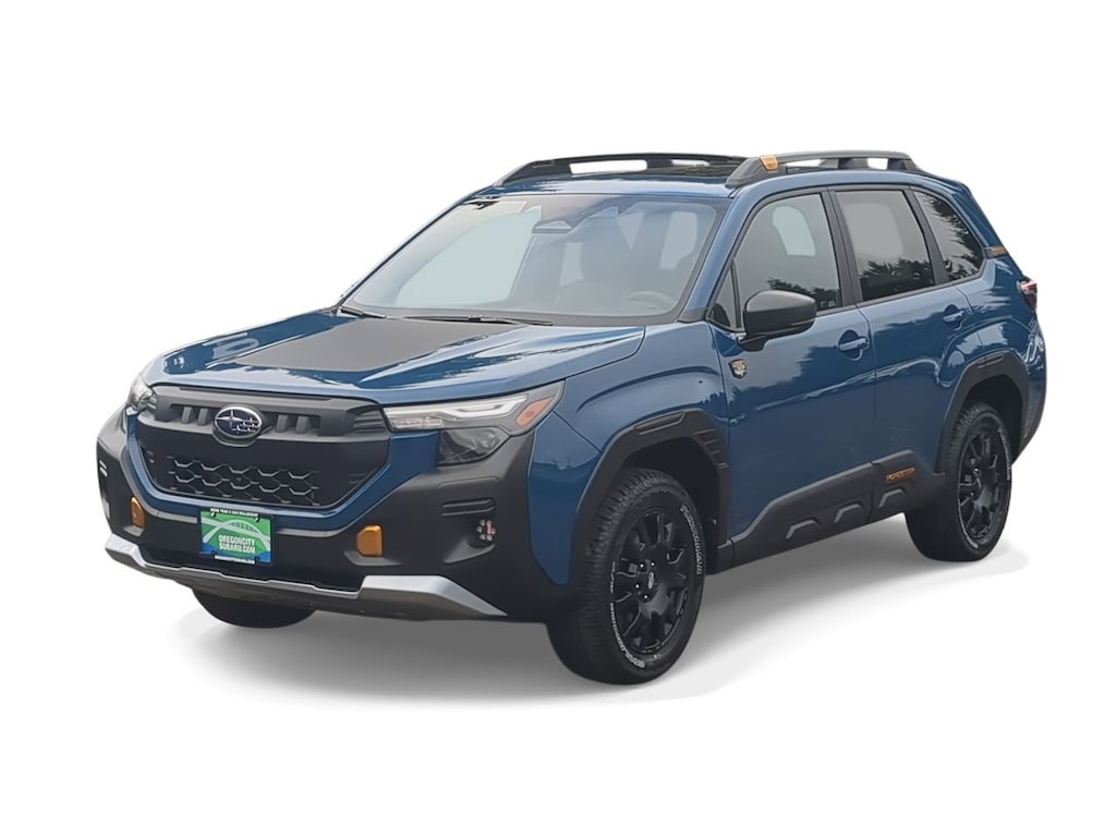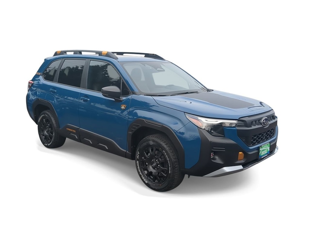 Geyser Blue 2026 Subaru Forester Wilderness AWD Lineartronic CVT 2.5L 4-Cylinder DOHC 16V 4-Wheel Disc Brakes, 6 Speakers, ABS brakes, Air Conditioning, Alloy wheels, AM/FM radio: SiriusXM with 360L, Anti-whiplash front head restraints, Auto High-beam Headlights, Auto-Dimming Exterior Mirror with Approach Light, Auto-Dimming Mirror with Compass and HomeLink, Automatic temperature control, Brake assist, Bumpers: body-color, Carpeted Floor Mats - Wilderness, Driver door bin, Driver vanity mirror, Dual front impact airbags, Dual front side impact airbags, Electronic Stability Control, Emergency communication system: MySubaru Companion (5-years free), Exterior Parking Camera Rear, Four wheel independent suspension, Front anti-roll bar, Front Bucket Seats, Front Center Armrest, Front dual zone A/C, Front fog lights, Front reading lights, Fully automatic headlights, Harman/Kardon Speaker System and Power Rear Gate, Heated door mirrors, Heated Front Bucket Seats, Heated front seats, Illuminated entry, Knee airbag, LED Upgrade, Low tire pressure warning, Occupant sensing airbag, Outside temperature display, Overhead airbag, Overhead console, Panic alarm, Passenger door bin, Passenger vanity mirror, Power door mirrors, Power driver seat, Power moonroof: Panoramic, Power Rear Gate, Power steering, Power windows, Radio data system, Radio: Subaru 11.6 Multimedia Navigation System, Radio: Subaru 11.6 Multimedia Plus System, Rain sensing wipers, Rear anti-roll bar, Rear seat center armrest, Rear Seatback Protector, Rear window defroster, Rear window wiper, Remote keyless entry, Security system, Speed control, Speed-sensing steering, Split folding rear seat, Spoiler, Steering wheel mounted audio controls, Tachometer, Telescoping steering wheel, Textured StarTex Upholstery, Tilt steering wheel, Traction control, Trip computer, Turn signal indicator mirrors, Variably intermittent wipers, Wheels: 17 x 7.0 J Matte Black Finish Aluminum-Alloy.