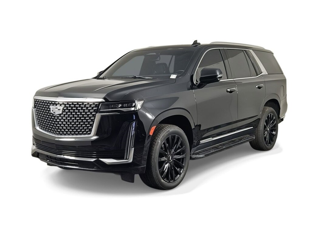 4WD, 16.9 Diagonal OLED Infotainment Screen, 19 Speakers, 2-Presets Memory For Driver Seat Adjuster, 3.23 Axle Ratio, 3rd row seats: split-bench, 4-Way Power Driver Lumbar Seat Adjuster, 4-Way Power Front Passenger Lumbar Seat Adjuster, 4-Wheel Disc Brakes, 8-Way Power Driver Seat Adjuster, 8-Way Power Front Passenger Seat Adjuster, ABS brakes, Air Conditioning, AKG Studio 19-Speaker Audio System, Alloy wheels, AM/FM radio: SiriusXM with 360L, Apple CarPlay/Android Auto, Audio memory, Auto High-beam Headlights, Auto tilt-away steering wheel, Auto-dimming door mirrors, Auto-dimming Rear-View mirror, Automatic temperature control, Brake assist, Bumpers: body-color, Compass, Delay-off headlights, Driver door bin, Driver vanity mirror, Dual front impact airbags, Dual front side impact airbags, Electronic Stability Control, Emergency communication system: OnStar and Cadillac connected services capable, Four wheel independent suspension, Front anti-roll bar, Front Bucket Seats, Front Center Armrest w/Storage, Front dual zone A/C, Front reading lights, Fully automatic headlights, Garage door transmitter, HD Radio, Heated door mirrors, Heated Driver & Front Passenger Seats, Heated front seats, Heated rear seats, Heated steering wheel, Illuminated entry, Leather steering wheel, Leatherette Seats, Low tire pressure warning, Memory seat, Navigation System, Occupant sensing airbag, Outside temperature display, Overhead airbag, Overhead console, Panic alarm, Passenger door bin, Passenger vanity mirror, Power door mirrors, Power driver seat, Power Liftgate, Power passenger seat, Power steering, Power windows, Premium Smooth Ride Suspension, Radio data system, Radio: AM/FM/SiriusXM w/Navigation, Rain sensing wipers, Rear air conditioning, Rear anti-roll bar, Rear reading lights, Rear window defroster, Rear window wiper, Remote keyless entry, Roof rack: rails only, SiriusXM w/360L, Speed control, Split folding rear seat, Spoiler, Steering wheel memory, Steering wheel mounted audio controls, Tachometer, Teen Driver, Telescoping steering wheel, Tilt steering wheel, Traction control, Trip computer, Turn signal indicator mirrors, Variably intermittent wipers, Voltmeter, Wheels: 22 14-Spoke Alloy w/Bright Silver Finish, Wireless Apple CarPlay/Wireless Android Auto, 4WD. Black 2021 Cadillac Escalade Luxury 4WD 10-Speed Automatic with Overdrive 6.2L V8