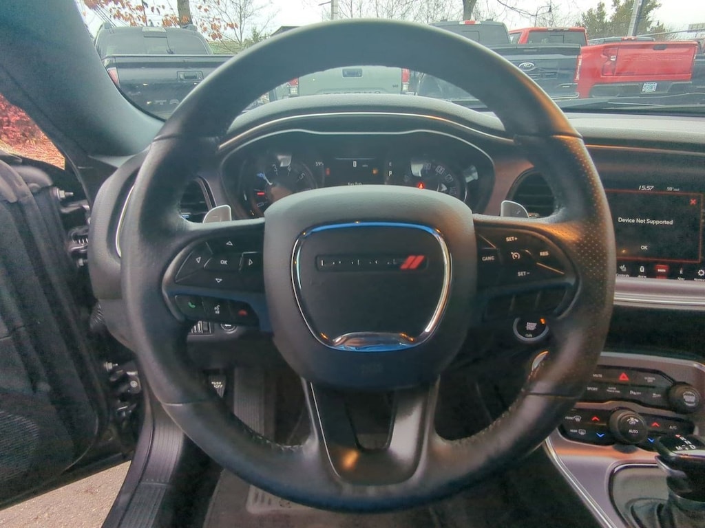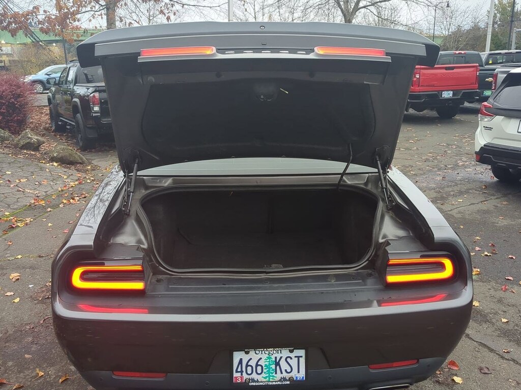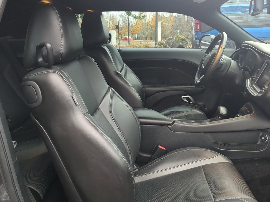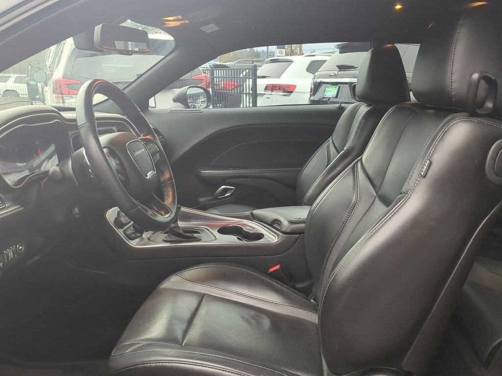 1-YR SiriusXM Guardian Trial, 4-Wheel Disc Brakes, 5-Year SiriusXM Traffic Service, 5-Year SiriusXM Travel Link Service, 6 Speakers, 8.4 Touchscreen Display, ABS brakes, Air Conditioning, Alloy wheels, AM/FM radio: SiriusXM, Anti-whiplash front head restraints, Apple CarPlay, Auto-dimming Rear-View mirror, Automatic temperature control, Black Fuel Filler Door, Black Grille w/Bezel, Blacktop Package, Blind Spot & Cross Path Detection, Brake assist, Bumpers: body-color, Challenger Blacktop Grille Badge, Compass, Dark Brushed II Interior Accents, Delay-off headlights, Driver Convenience Group, Driver door bin, Driver vanity mirror, Dual front impact airbags, Dual front side impact airbags, Electronic Stability Control, Emergency communication system: SiriusXM Guardian, For Details, Visit DriveUconnect.com, Four wheel independent suspension, Front anti-roll bar, Front Bucket Seats, Front Center Armrest, Front dual zone A/C, Front fog lights, Front reading lights, Fully automatic headlights, Garage door transmitter, Gloss Black I/P Cluster Trim Rings, Google Android Auto, GPS Antenna Input, GPS Navigation, HD Radio, Heated door mirrors, Heated Front Seats, Heated front seats, Heated steering wheel, High-Intensity Discharge Headlamps, Illuminated entry, Integrated Center Stack Radio, Integrated Voice Command w/Bluetooth, Leather Performance Steering Wheel, Leather Shift Knob, Leather Trim Seats, Low tire pressure warning, Media Hub (2 USB, AUX), Nappa Leather Sport Seat, Outside temperature display, Overhead airbag, Overhead console, Panic alarm, ParkView Rear Back-Up Camera, Passenger door bin, Passenger vanity mirror, Power door mirrors, Power driver seat, Power Multi-Function Foldaway Mirrors, Power steering, Power windows, Quick Order Package 21B, Radio data system, Radio: Uconnect 4C Nav w/8.4 Display, Radio: Uconnect 4C w/8.4 Display, Rear anti-roll bar, Rear Black Spoiler, Rear reading lights, Rear seat center armrest, Rear window defroster, Remote keyless entry, Remote Start System, Rhombi 2-Pc Wheel Center Cap, Security system, SiriusXM Satellite Radio, SiriusXM Traffic Plus, SiriusXM Travel Link, Speed control, Speed-sensing steering, Split folding rear seat, Spoiler, Steering wheel mounted audio controls, Tachometer, Telescoping steering wheel, Tilt steering wheel, Traction control, Trip computer, Universal Garage Door Opener, USB Host Flip, Variably intermittent wipers, Ventilated Front Seats, Ventilated front seats, Wheels: 19 x 7.5 Painted Granite Crystal. Granite Crystal Metallic Clearcoat 2018 Dodge Challenger GT AWD 8-Speed Automatic 3.6L V6 24V VVT