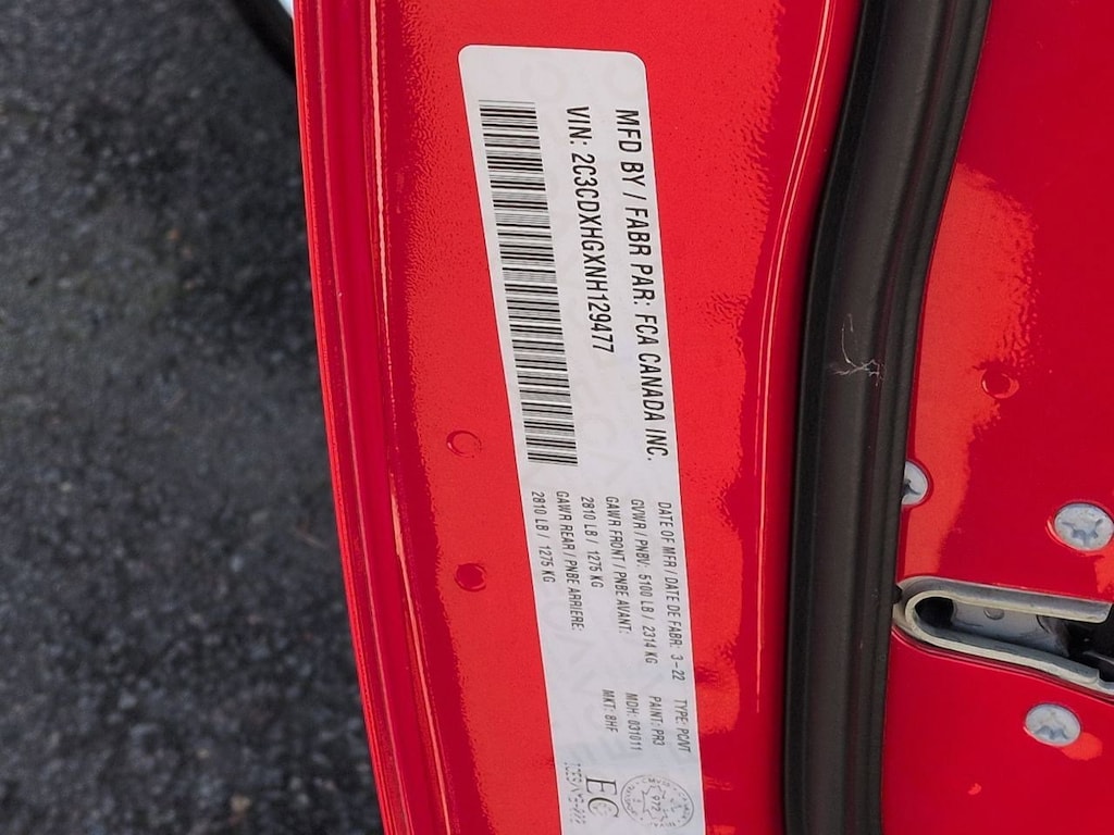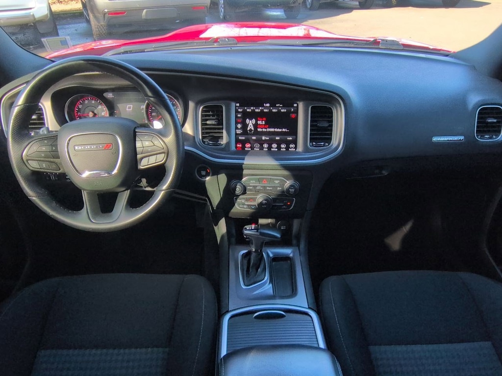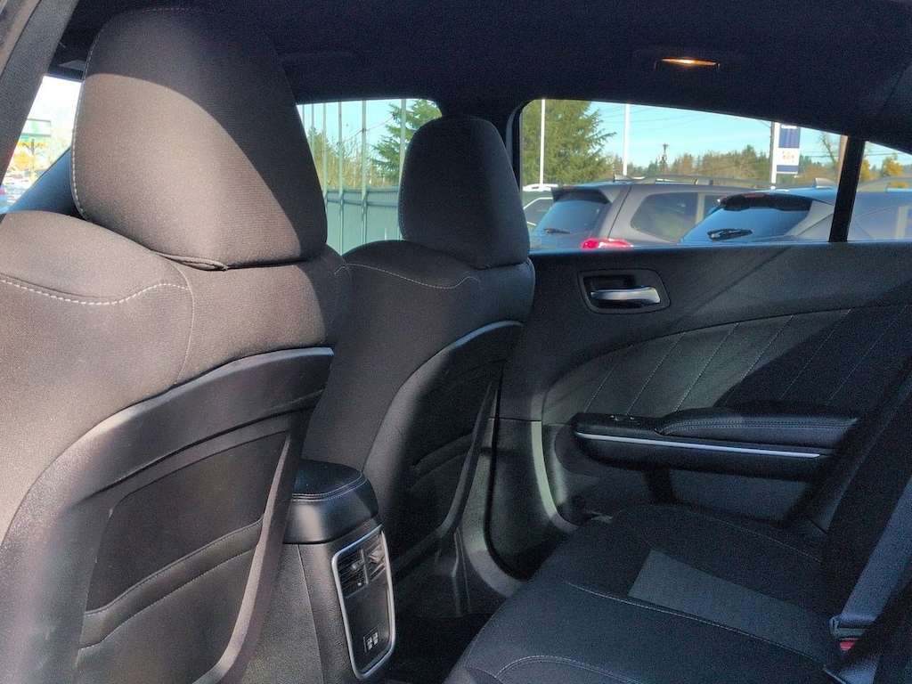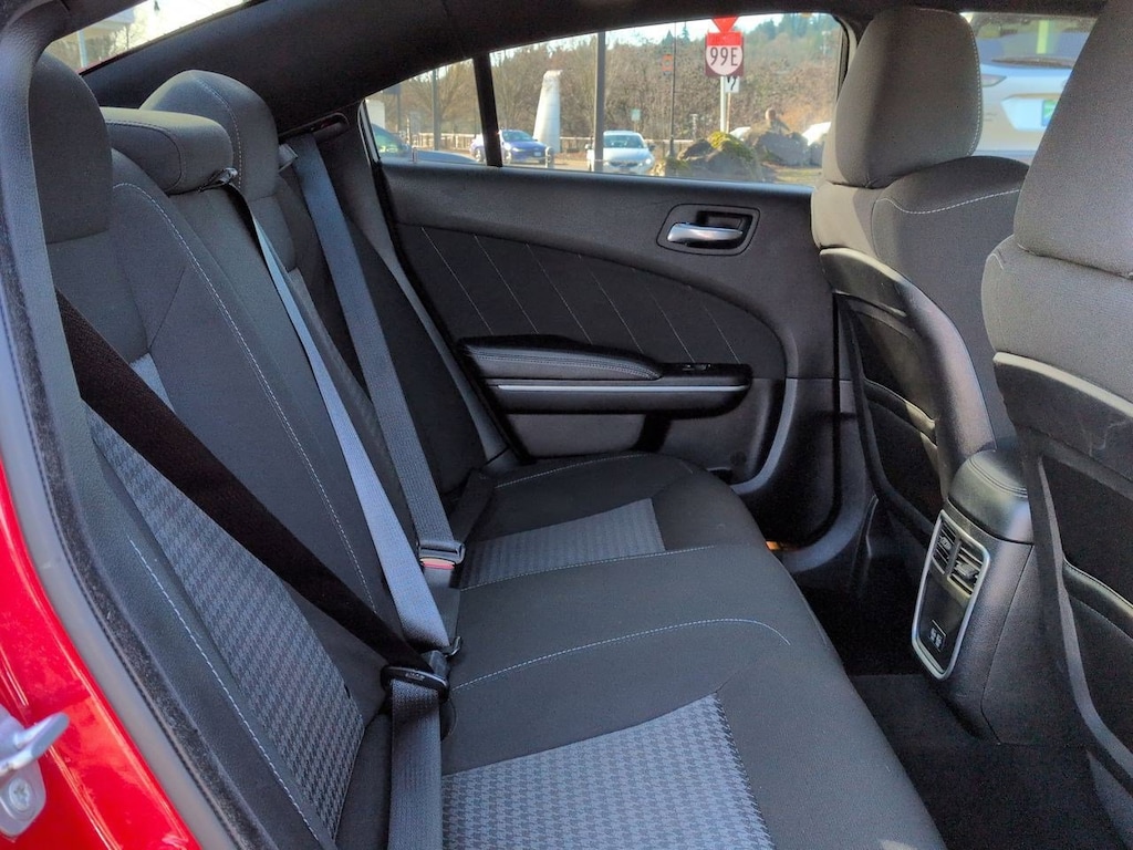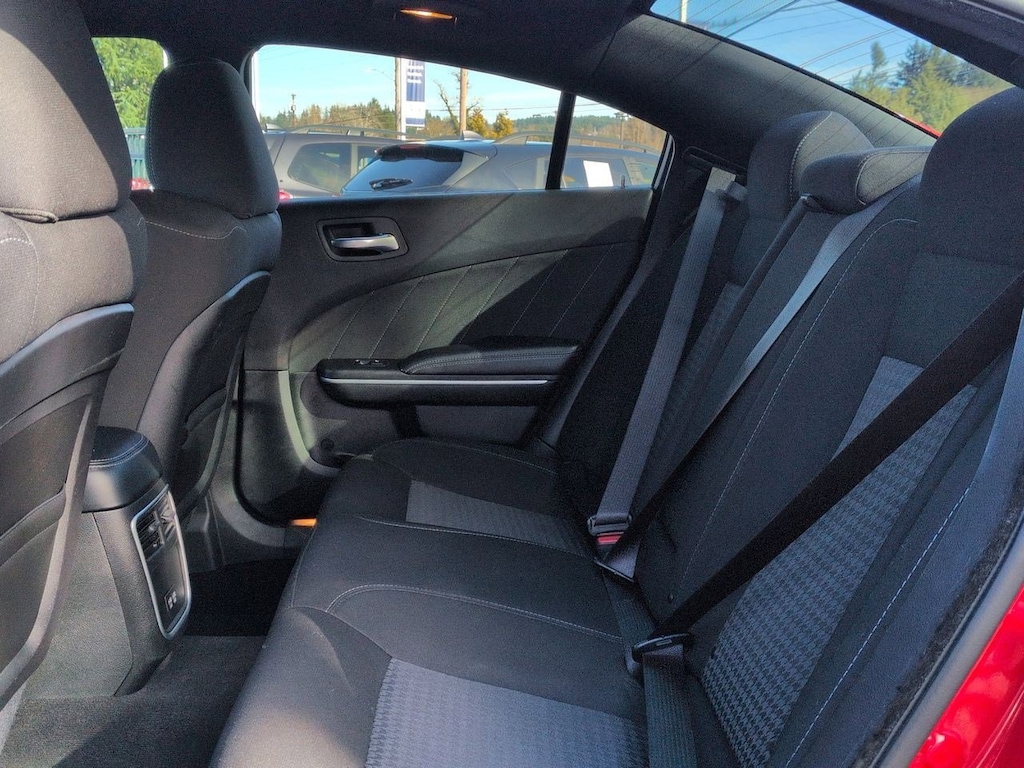 Black Cloth, 4-Wheel Disc Brakes, 6 Speakers, ABS brakes, Air Conditioning, Alloy wheels, AM/FM radio: SiriusXM, Anti-whiplash front head restraints, Apple CarPlay, Apple CarPlay/Android Auto, Auto-dimming Rear-View mirror, Automatic temperature control, Body Color Exterior Mirrors, Brake assist, Bumpers: body-color, Cloth Performance Seats, Compass, Delay-off headlights, Driver door bin, Driver vanity mirror, Dual front impact airbags, Dual front side impact airbags, Electronic Stability Control, Emergency communication system: SiriusXM Guardian, Four wheel independent suspension, Front anti-roll bar, Front Bucket Seats, Front Center Armrest, Front dual zone A/C, Front fog lights, Front reading lights, Fully automatic headlights, Garage door transmitter: HomeLink, Google Android Auto, GPS Antenna Input, Heated door mirrors, Illuminated entry, Integrated Center Stack Radio, Integrated Voice Command w/Bluetooth, Knee airbag, Leather Shift Knob, Low tire pressure warning, Media Hub (2 USB, AUX), Occupant sensing airbag, Outside temperature display, Overhead airbag, Overhead console, Panic alarm, ParkView Rear Back-Up Camera, Passenger door bin, Passenger vanity mirror, Power 2-Way Driver Lumbar Adjust, Power door mirrors, Power driver seat, Power steering, Power windows, Quick Order Package 2EH, Radio: Uconnect 4C w/8.4 Display, Rear anti-roll bar, Rear reading lights, Rear seat center armrest, Rear window defroster, Remote keyless entry, Speed control, Speed-Sensitive Wipers, Split folding rear seat, Spoiler, Sport steering wheel, Steering wheel mounted audio controls, Tachometer, Telescoping steering wheel, Tilt steering wheel, Traction control, Trip computer, USB Host Flip, Variably intermittent wipers, Wheels: 20 x 8 Satin Carbon Painted, Black Cloth. Torred Clearcoat 2022 Dodge Charger GT RWD 8-Speed Automatic 3.6L V6 24V VVT