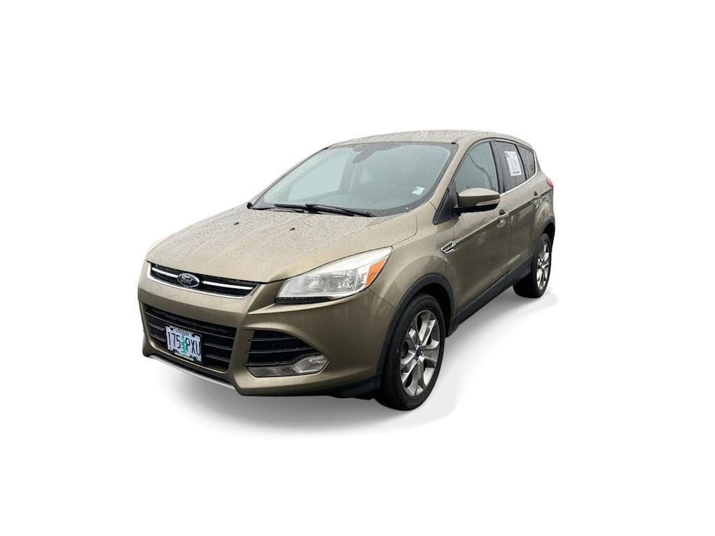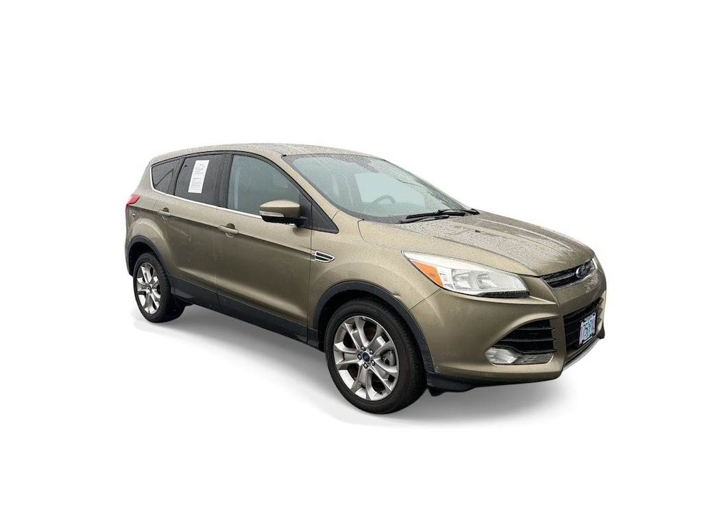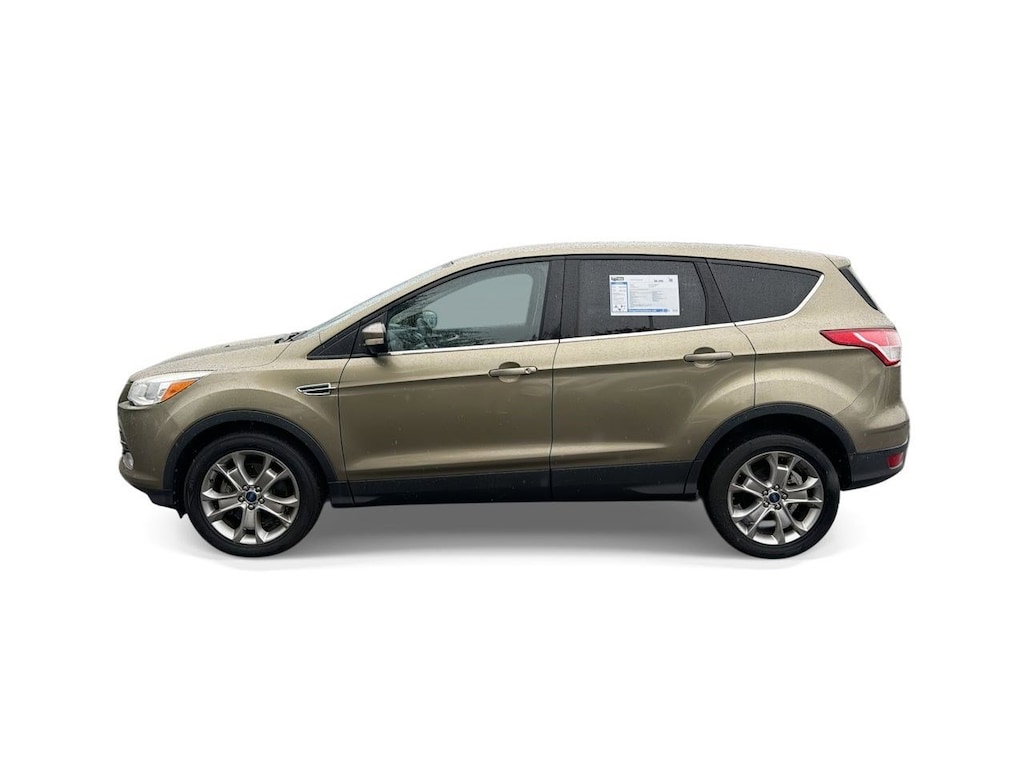 18 Alloy Sparkle Nickel Wheels, 3.21 Axle Ratio, 4-Wheel Disc Brakes, 9 Speakers, ABS brakes, Air Conditioning, Alloy wheels, AM/FM radio: SiriusXM, AM/FM Single CD/MP3 Capable, Auto-dimming Rear-View mirror, Automatic temperature control, Brake assist, Bumpers: body-color, CD player, Compass, Delay-off headlights, Driver door bin, Driver vanity mirror, Dual front impact airbags, Dual front side impact airbags, Electronic Stability Control, Equipment Group 300A, Four wheel independent suspension, Front anti-roll bar, Front Bucket Seats, Front Center Armrest, Front dual zone A/C, Front fog lights, Front reading lights, Fully automatic headlights, Garage door transmitter, Heated door mirrors, Heated front seats, Heated Leather-Trimmed Buckets w/60/40 Rear Seat, Illuminated entry, Knee airbag, Leather Shift Knob, Low tire pressure warning, Memory seat, Occupant sensing airbag, Outside temperature display, Overhead airbag, Overhead console, Panic alarm, Passenger door bin, Passenger vanity mirror, Power door mirrors, Power driver seat, Power steering, Power windows, Radio data system, Rear anti-roll bar, Rear seat center armrest, Rear window defroster, Rear window wiper, Remote keyless entry, Security system, Speed control, Speed-sensing steering, Split folding rear seat, Steering wheel mounted audio controls, Tachometer, Telescoping steering wheel, Tilt steering wheel, Traction control, Trip computer, Turn signal indicator mirrors, Variably intermittent wipers. Ginger Ale Metallic 2013 Ford Escape SEL FWD 6-Speed Automatic EcoBoost 2.0L I4 GTDi DOHC Turbocharged VCT