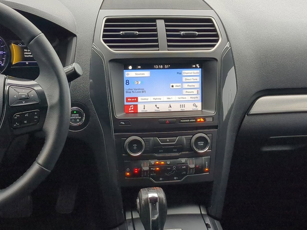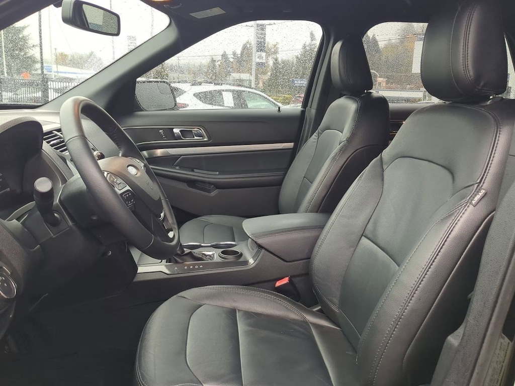 2 Driver Configurable 4.2 Color LCD Displays, 3.39 Non-Limited-Slip Axle Ratio, 3rd row seats: split-bench, 4-Wheel Disc Brakes, 6 Speakers, ABS brakes, Air Conditioning, Alloy wheels, AM/FM radio: SiriusXM, AM/FM Stereo, Auto-Dimming Rear-View Mirror, Brake assist, Bumpers: body-color, Comfort Package, Compass, Delay-off headlights, Driver Connect Package, Driver door bin, Driver vanity mirror, Dual front impact airbags, Dual front side impact airbags, Dual-Zone Electronic Automatic Temperature Ctrl, Electronic Stability Control, Emergency communication system: 911 Assist, Equipment Group 202A, Exterior Parking Camera Rear, Forward Sensing System, Four wheel independent suspension, Front anti-roll bar, Front Bucket Seats, Front Center Armrest, Front License Plate Bracket, Front reading lights, Fully automatic headlights, Heated door mirrors, Heated Steering Wheel, Illuminated entry, Knee airbag, Leather Heated Bucket Seats, Leather steering wheel, LED Fog Lamps, Low tire pressure warning, Occupant sensing airbag, Outside temperature display, Overhead airbag, Overhead console, Panic alarm, Passenger door bin, Passenger vanity mirror, Power & Heated Glass Sideview Mirrors, Power door mirrors, Power driver seat, Power Liftgate, Power passenger seat, Power steering, Power windows, Radio: AM/FM Stereo w/7 Speakers, Rear air conditioning, Rear anti-roll bar, Rear Bumper Step Pad, Rear Parking Sensors, Rear reading lights, Rear seat center armrest, Rear window defroster, Rear window wiper, Remote keyless entry, Remote Start System, Roof rack: rails only, Security system, Single-CD Player, Speed control, Speed-sensing steering, Speed-Sensitive Wipers, Split folding rear seat, Spoiler, Steering wheel mounted audio controls, SYNC Communication & Entertainment System, SYNC Connect, Tachometer, Telescoping steering wheel, Tilt steering wheel, Traction control, Trip computer, Universal Garage Door Opener (UGDO), Variably intermittent wipers, Voice-Activated Touchscreen Navigation System, Wheels: 18 5-Spoke Sparkle Silver-Painted Alum, XLT Technology Feature Bundle. Shadow Black 2018 Ford Explorer XLT FWD 6-Speed Automatic with Select-Shift 3.5L 6-Cylinder SMPI DOHC