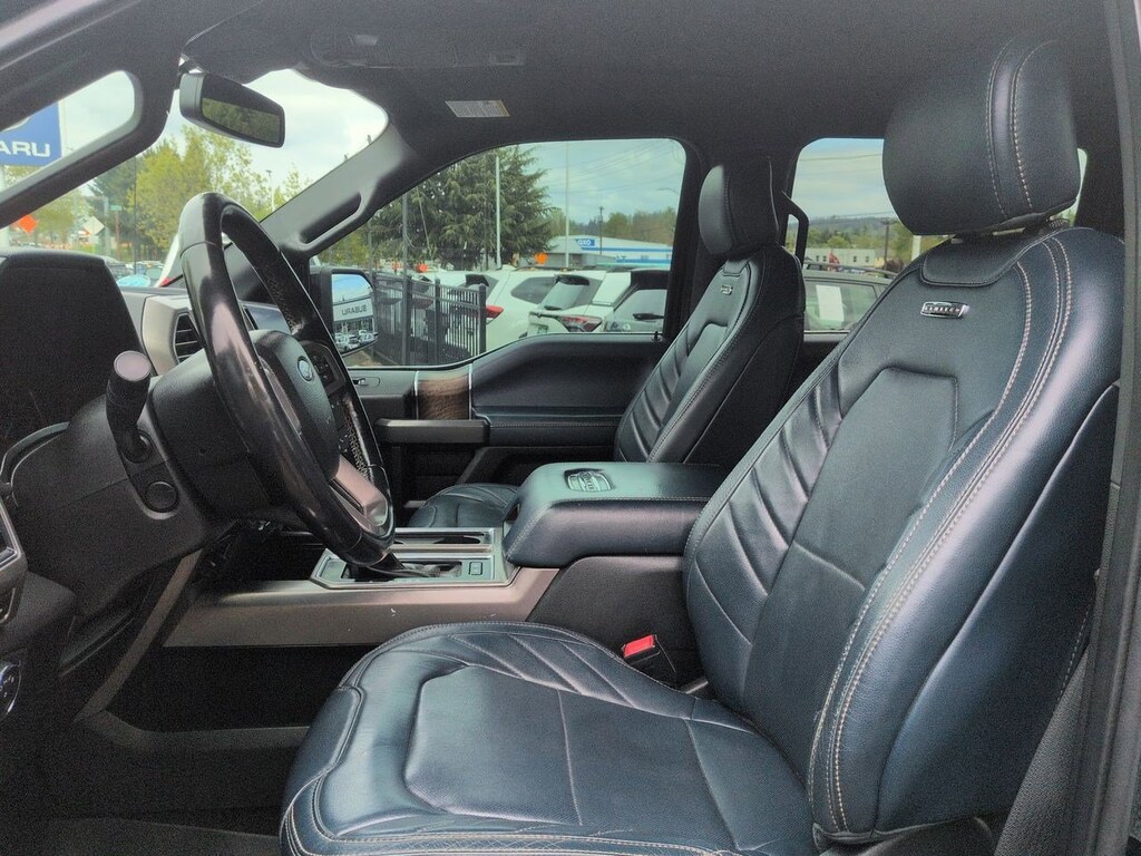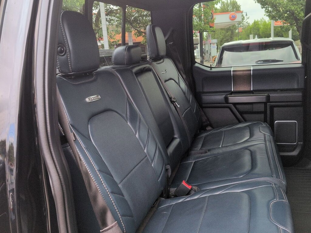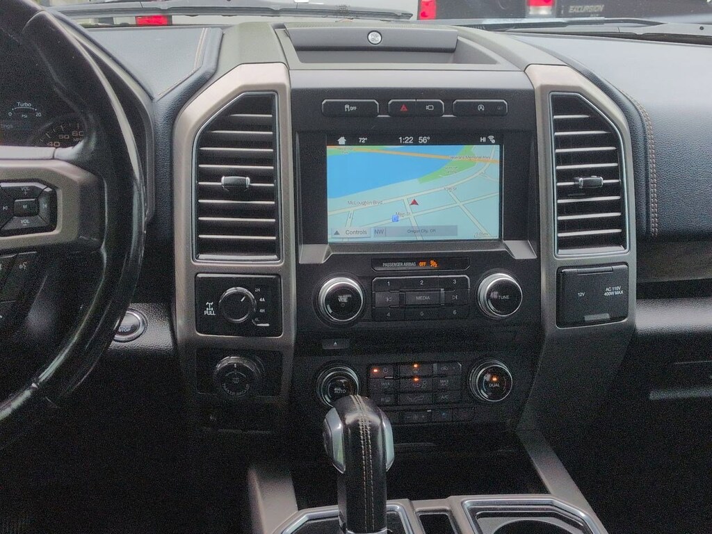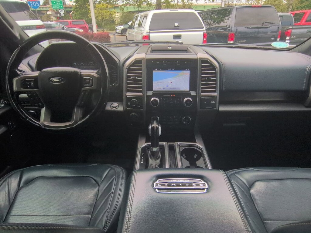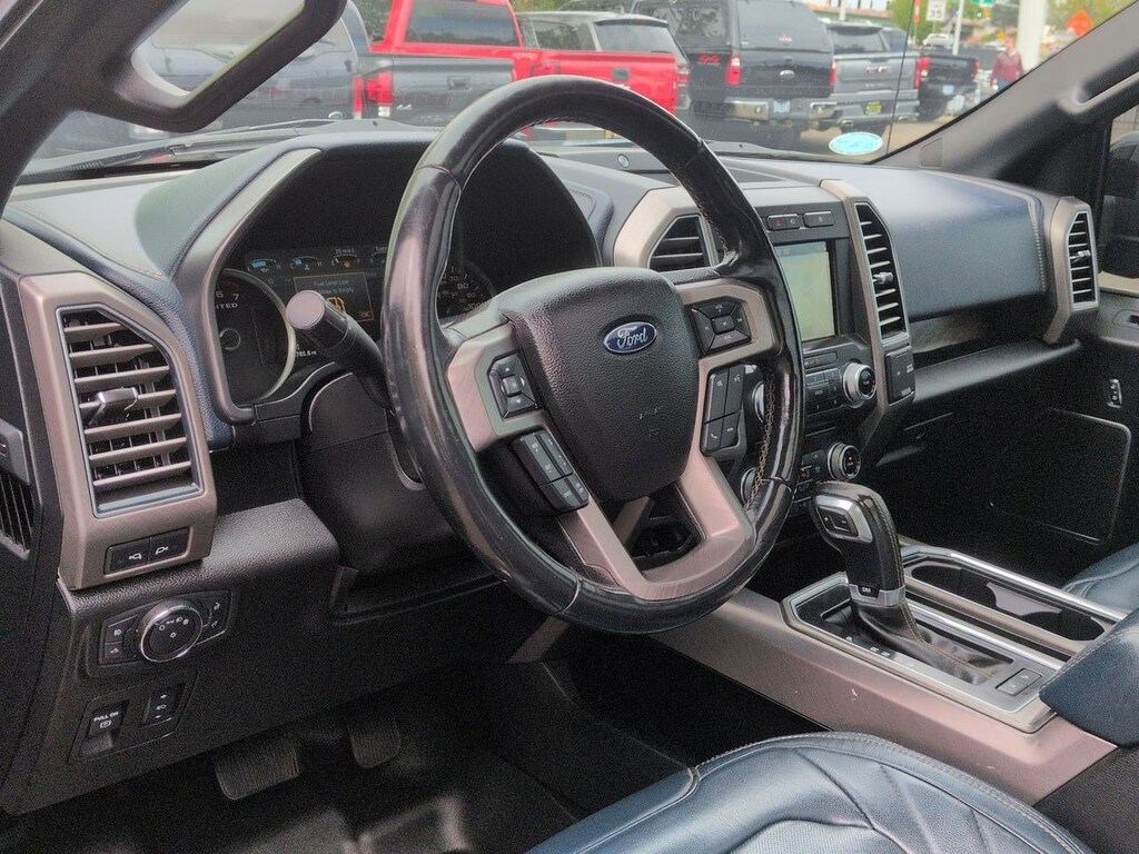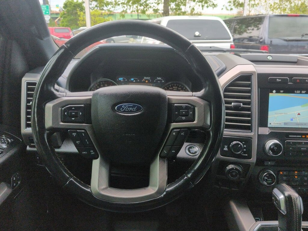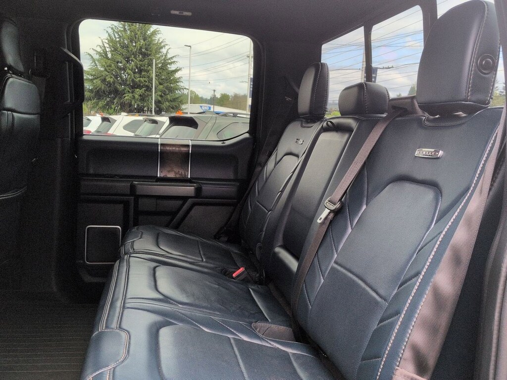 4WD, 10 Speakers, 22 Polished Aluminum Wheels, 4-Wheel Disc Brakes, ABS brakes, Adjustable pedals, Air Conditioning, Alloy wheels, AM/FM radio: SiriusXM, AppLink/Apple CarPlay and Android Auto, Auto High-beam Headlights, Auto tilt-away steering wheel, Auto-dimming door mirrors, Auto-dimming Rear-View mirror, Automatic temperature control, Brake assist, Bumpers: body-color, CD player, Class IV Trailer Hitch Receiver, Compass, Delay-off headlights, Driver door bin, Driver vanity mirror, Dual front impact airbags, Dual front side impact airbags, Electronic Stability Control, Emergency communication system: SYNC 3 911 Assist, Equipment Group 900A Base, Extended Range 36 Gallon Fuel Tank, Exterior Parking Camera Rear, Front anti-roll bar, Front Bucket Seats, Front Center Armrest, Front dual zone A/C, Front fog lights, Front License Plate Bracket, Front reading lights, Front wheel independent suspension, Fully automatic headlights, Garage door transmitter, Genuine wood door panel insert, GVWR: 6,750 lbs Payload Package, Heated door mirrors, Heated front seats, Heated rear seats, Heated steering wheel, Illuminated entry, Low tire pressure warning, Memory seat, Navigation System, Occupant sensing airbag, Outside temperature display, Overhead airbag, Overhead console, Panic alarm, Passenger door bin, Passenger vanity mirror, Pedal memory, Power door mirrors, Power driver seat, Power moonroof, Power passenger seat, Power steering, Power windows, Radio data system, Radio: B&O Play Premium Audio System, Rain sensing wipers, Rear reading lights, Rear seat center armrest, Rear step bumper, Rear window defroster, Remote keyless entry, Security system, Speed control, Speed-sensing steering, Split folding rear seat, Spray-In Bedliner (Pre-Installed), Steering wheel memory, Steering wheel mounted audio controls, SYNC 3, Tachometer, Tailgate Step w/Tailgate Lift Assist, Telescoping steering wheel, Tilt steering wheel, Traction control, Trailer Tow Package, Trip computer, Turn signal indicator mirrors, Unique Leather Bucket Seats, Variably intermittent wipers, Ventilated front seats, Voice-Activated Touchscreen Navigation System, Voltmeter, Wheel Well Liner (Pre-Installed), 4WD. Shadow Black 2018 Ford F-150 Limited 4WD 10-Speed Automatic 3.5L V6 EcoBoost