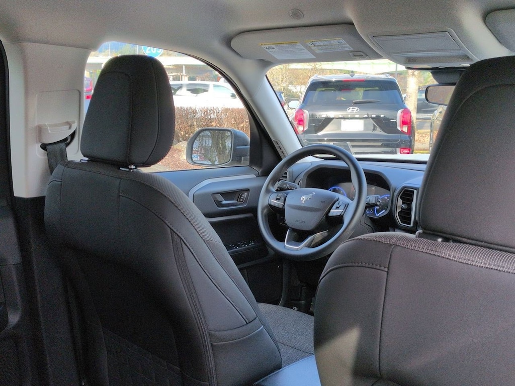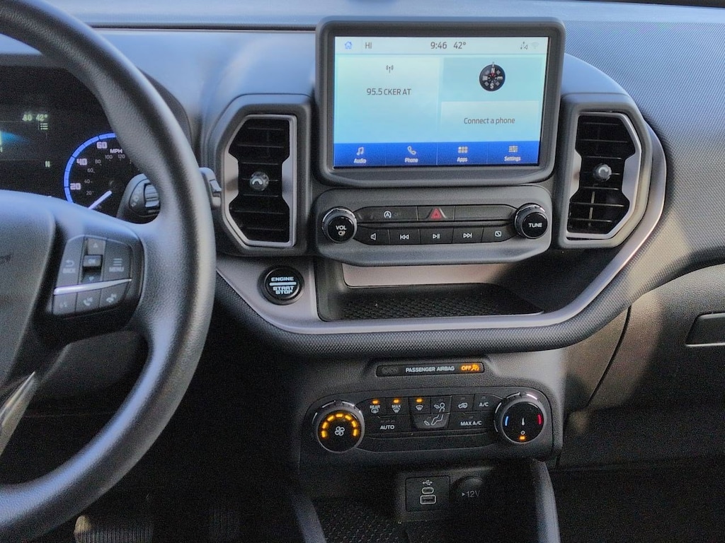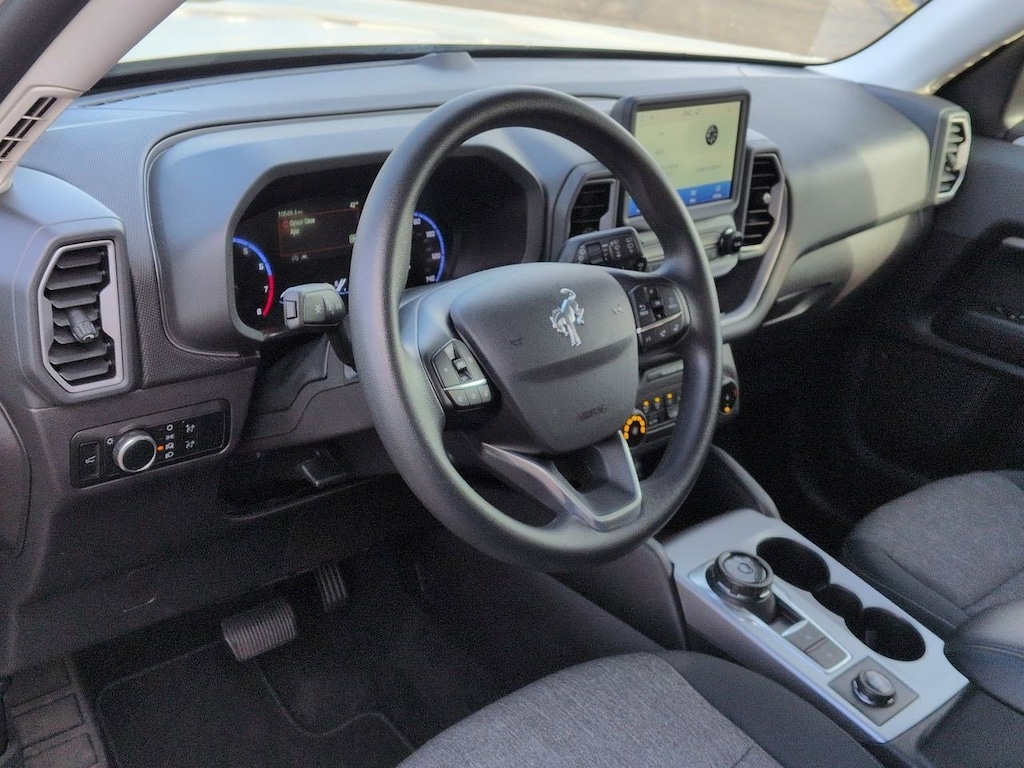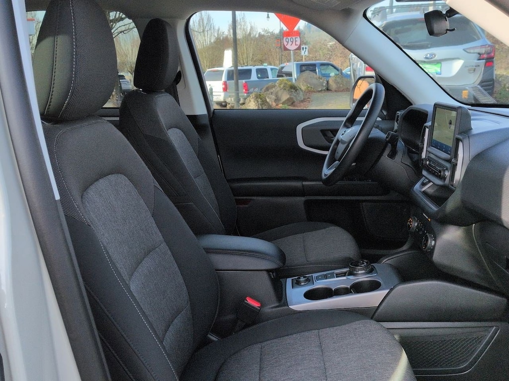 3.80 Axle Ratio, 4-Wheel Disc Brakes, 6 Speakers, ABS brakes, Air Conditioning, Alloy wheels, AM/FM radio: SiriusXM, AM/FM Stereo, Auto High-beam Headlights, Automatic temperature control, Brake assist, Compass, Delay-off headlights, Driver door bin, Driver vanity mirror, Dual front impact airbags, Dual front side impact airbags, Electronic Stability Control, Emergency communication system: SYNC 3 911 Assist, Equipment Group 200A, Four wheel independent suspension, Front anti-roll bar, Front Bucket Seats, Front Center Armrest, Front License Plate Bracket, Front reading lights, Fully automatic headlights, Heated door mirrors, Illuminated entry, Knee airbag, Low tire pressure warning, Occupant sensing airbag, Outside temperature display, Overhead airbag, Overhead console, Panic alarm, Passenger door bin, Passenger vanity mirror, Power door mirrors, Power steering, Power windows, Radio data system, Rear anti-roll bar, Rear reading lights, Rear seat center armrest, Rear window defroster, Rear window wiper, Remote keyless entry, Security system, SiriusXM, Speed control, Speed-sensing steering, Speed-Sensitive Wipers, Split folding rear seat, Steering wheel mounted audio controls, SYNC 3 Communications & Entertainment System, Tachometer, Telescoping steering wheel, Tilt steering wheel, Traction control, Trip computer, Unique Cloth Front Bucket Seats, Variably intermittent wipers, Wheels: 17 Carbonized Gray-Painted Aluminum. Desert Sand 2024 Ford Bronco Sport Big Bend 4WD 8-Speed Automatic 1.5L EcoBoost