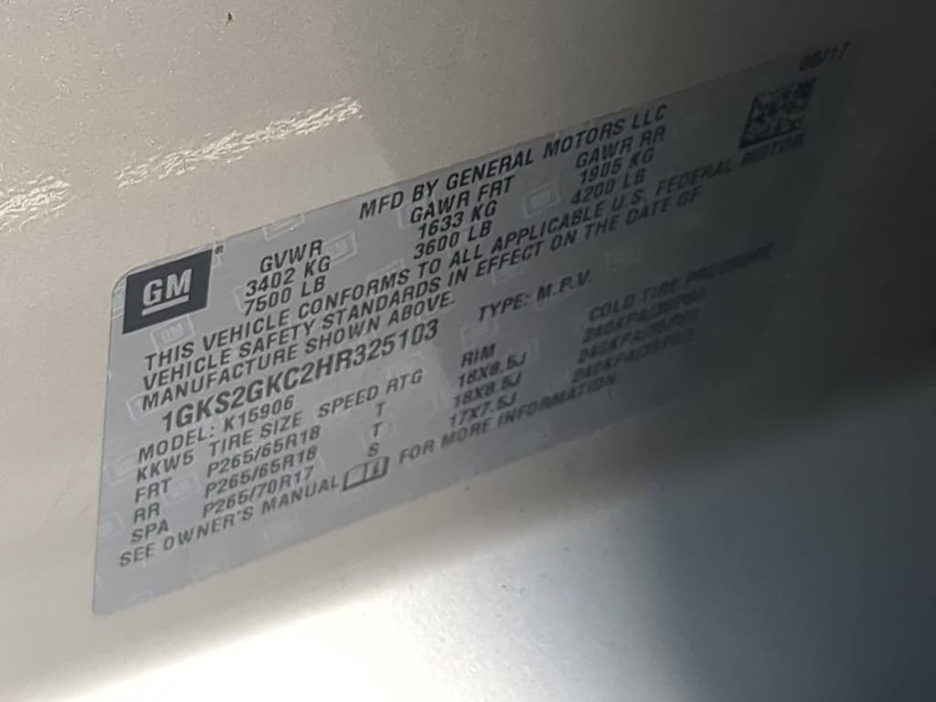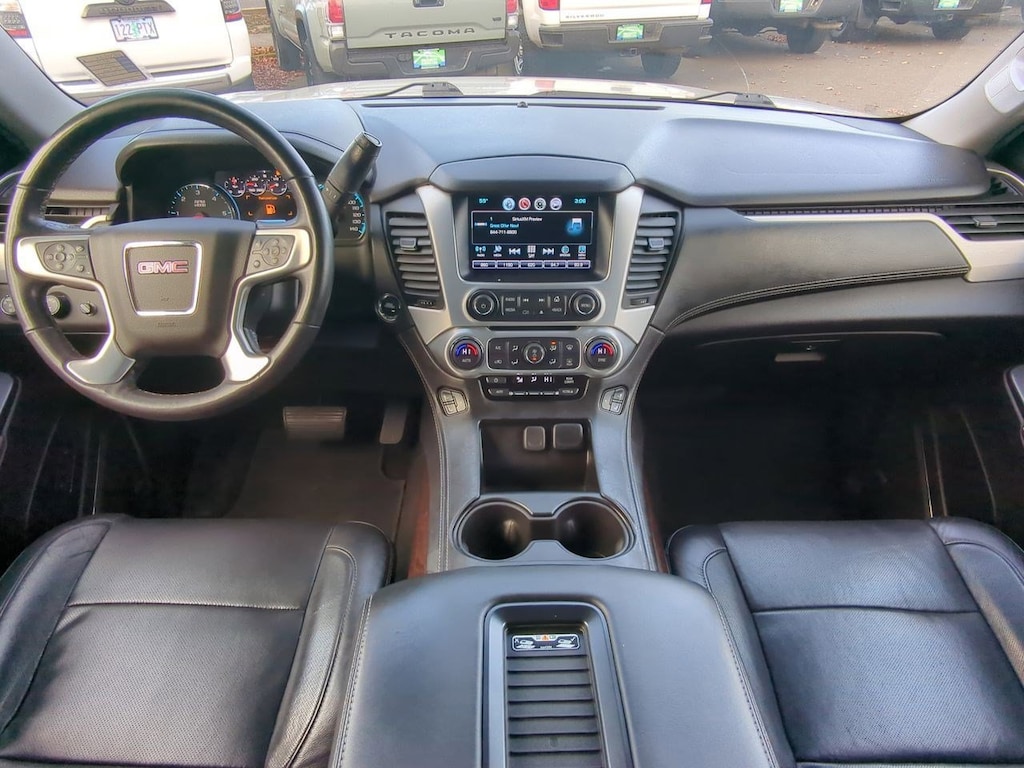 4WD, 17 Disc/Disc VAC Power Brakes, 3.08 Rear Axle Ratio, 3rd row seats: split-bench, 4-Wheel Disc Brakes, 5 Auxiliary 12-volt Power Outlets, 9 Speakers, ABS brakes, Adjustable pedals, Air Conditioning, Alloy wheels, AM/FM radio: SiriusXM, Apple CarPlay/Android Auto, Auto High-beam Headlights, Auto-dimming door mirrors, Auto-dimming Rear-View mirror, Automatic temperature control, Black Assist Steps w/Chrome Strip, Bose Premium 9-Speaker System, Brake assist, Bumpers: body-color, CD Player, CD player, Compass, Delay-off headlights, Driver door bin, Driver vanity mirror, Dual front impact airbags, Dual front side impact airbags, Electronic Stability Control, Emergency communication system: OnStar Guidance, Enhanced Driver Alert Package, Exterior Parking Camera Rear, Forward Collision Alert Sensor Indicator, Front anti-roll bar, Front Bucket Seats, Front Center Armrest, Front dual zone A/C, Front fog lights, Front reading lights, Front wheel independent suspension, Full-Feature Reclining Bucket Seats, Fully automatic headlights, Garage door transmitter, Hands Free Power Liftgate, Heated & Ventilated Driver & Front Passenger Seats, Heated door mirrors, Heated front seats, Heated Leather-Wrapped Steering Wheel, Heated rear seats, Heated steering wheel, Illuminated entry, Inside Rear-View Auto-Dimming Mirror, Intellibeam Automatic High Beam On/Off Headlamps, Lane Keep Assist, License Plate Front Mounting Package, Low Speed Forward Automatic Braking, Low tire pressure warning, Memory Package, Memory seat, Occupant sensing airbag, OnStar Basic Plan For 5 Years, OnStar w/4G LTE, Outside temperature display, Overhead airbag, Overhead console, Panic alarm, Passenger door bin, Passenger vanity mirror, Passive Entry System, Pedal memory, Perforated Leather-Appointed Seat Trim, Power door mirrors, Power driver seat, Power Liftgate, Power passenger seat, Power Release 2nd Row 60/40 Split-Folding Bench Seat, Power steering, Power Tilt & Telescopic Steering Column, Power windows, Power-Adjustable Pedals For Accelerator & Brake, Preferred Equipment Group 4SA, Premium audio system: IntelliLink, Premium Smooth Ride Suspension Package, Push Button Keyless Start, Radio: AM/FM/SiriusXM, Rain sensing wipers, Rear air conditioning, Rear anti-roll bar, Rear Cross-Traffic Alert, Rear reading lights, Rear seat center armrest, Rear window defroster, Rear window wiper, Remote Keyless Entry, Remote keyless entry, Roof rack: rails only, Security system, Side Blind Zone Alert w/Lane Change Alert, SiriusXM Satellite Radio, Speed control, Speed-sensing steering, Split folding rear seat, Spoiler, Steering wheel memory, Steering wheel mounted audio controls, Tachometer, Telescoping steering wheel, Tilt steering wheel, Traction control, Trip computer, Turn signal indicator mirrors, Universal Home Remote, Variably intermittent wipers, Ventilated front seats, Voltmeter, Wheels: 18 x 8.5 Bright Machined Aluminum, Wireless Charging, 4WD. Sparkling Silver Metallic 2017 GMC Yukon XL SLT 4WD 6-Speed Automatic Electronic with Overdrive EcoTec3 5.3L V8