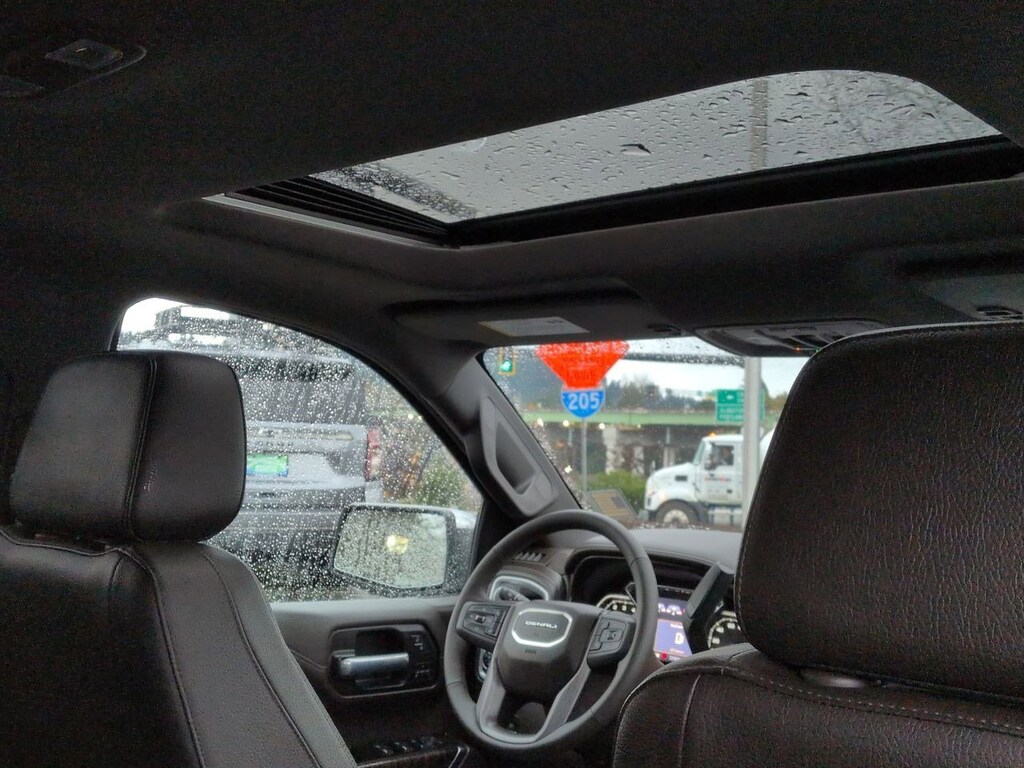 10-Speed Automatic, 4WD, Dark Walnut/Dark Ash Grey Leather, 10-Way Power Driver Seat Adjuster w/Lumbar, 10-Way Power Passenger Seat Adjuster w/Lumbar, 12-Volt Rear Auxiliary Power Outlet, 120-Volt Bed Mounted Power Outlet, 120-Volt Instrument Panel Power Outlet, 170 Amp Alternator, 2 USB Ports, 2 USB Ports (1st Row), 3.23 Rear Axle Ratio, 4-Wheel Disc Brakes, 7 Speakers, ABS brakes, Adaptive Ride Control Suspension, Adaptive suspension, Air Conditioning, All-Weather Floor Liner (LPO), Alloy wheels, AM/FM radio: SiriusXM, Apple CarPlay/Android Auto, Auto-dimming door mirrors, Auto-dimming Rear-View mirror, Automatic temperature control, Auxiliary External Transmission Oil Cooler, Body Color Wheel Arch Moldings (LPO), Brake assist, Bumpers: body-color, Chrome Assist Steps, Chrome Recovery Hooks, Color-Keyed Carpeting Floor Covering, Compass, Deep-Tinted Glass, Delay-off headlights, Denali Ultimate Package, Driver Alert Package I, Driver Alert Package II, Driver door bin, Driver Memory, Driver vanity mirror, Dual front impact airbags, Dual front side impact airbags, Electric Rear-Window Defogger, Electrical Lock Control Steering Column, Electronic Stability Control, Floor Mounted Console, Following Distance Indicator, Forge Perforated Leather-Appointed Seat Trim, Forward Collision Alert, Front anti-roll bar, Front Bucket Seats, Front Center Armrest, Front dual zone A/C, Front fog lights, Front License Plate Kit, Front Pedestrian Braking, Front reading lights, Front wheel independent suspension, Fully automatic headlights, Garage door transmitter, Genuine wood console insert, Genuine wood door panel insert, GMC 4G LTE, GMC Connected Access, GMC MultiPro Power Steps, HD Radio, HD Rear Vision Camera, HD Surround Vision, Heated 2nd Row Outboard Seats, Heated door mirrors, Heated Driver & Front Passenger Seating, Heated front seats, Heated rear seats, Heated steering wheel, Heavy-Duty Rear Locking Differential, High-Capacity Air Filter, Hill Descent Control, Hitch Guidance, Hitch Guidance w/Hitch View, Illuminated entry, In-Vehicle Trailering App, Integrated Trailer Brake Controller, IntelliBeam Automatic High Beam On/Off, Keyless Open & Start, Lane Change Alert w/Side Blind Zone Alert, Lane Keep Assist w/Lane Departure Warning, LED Cargo Area Lighting, Low Speed Forward Automatic Braking, Low tire pressure warning, Manual Tilt-Wheel & Telescoping Steering Column, Memory seat, Multi-Color 15 Diagonal Head-Up Display, Navigation System, Occupant sensing airbag, OnStar & GMC Connected Services Capable, Outside temperature display, Overhead airbag, Overhead console, Panic alarm, Passenger door bin, Passenger vanity mirror, Power Door Locks, Power door mirrors, Power driver seat, Power Front Passenger Windows w/Express Up/Down, Power Front Windows w/Driver Express Up/Down, Power passenger seat, Power Rear Windows w/Express Down, Power Sliding Rear Window w/Rear Defogger, Power steering, Power Sunroof, Power windows, Preferred Equipment Group 5SA, Premium audio system: GMC Infotainment System, Premium Bose 7-Speaker Sound System, Radio data system, Radio: Premium GMC Infotainment Sys w/Navigation, Rear Camera Mirror, Rear Cross Traffic Alert, Rear Dual USB Charging-Only Ports, Rear reading lights, Rear seat center armrest, Rear step bumper, Rear Underseat Storage (LPO), Rear Wheelhouse Liners, Rear window defroster, Remote keyless entry, Remote Vehicle Starter System, Safety Alert Seat, Security system, Signature Denali Grille, SiriusXM Radio, Speed control, Speed-sensing steering, Split folding rear seat, Spray-On Pickup Bed Liner w/Denali Logo, Steering Wheel Audio Controls, Steering wheel mounted audio controls, Tachometer, Technology Package, Telescoping steering wheel, Theft Deterrent System (Unauthorized Entry), Tilt steering wheel, Traction control, Trailer Tire Pressure Monitor System, Trailering Package, Trip computer, Ultrasonic Front & R