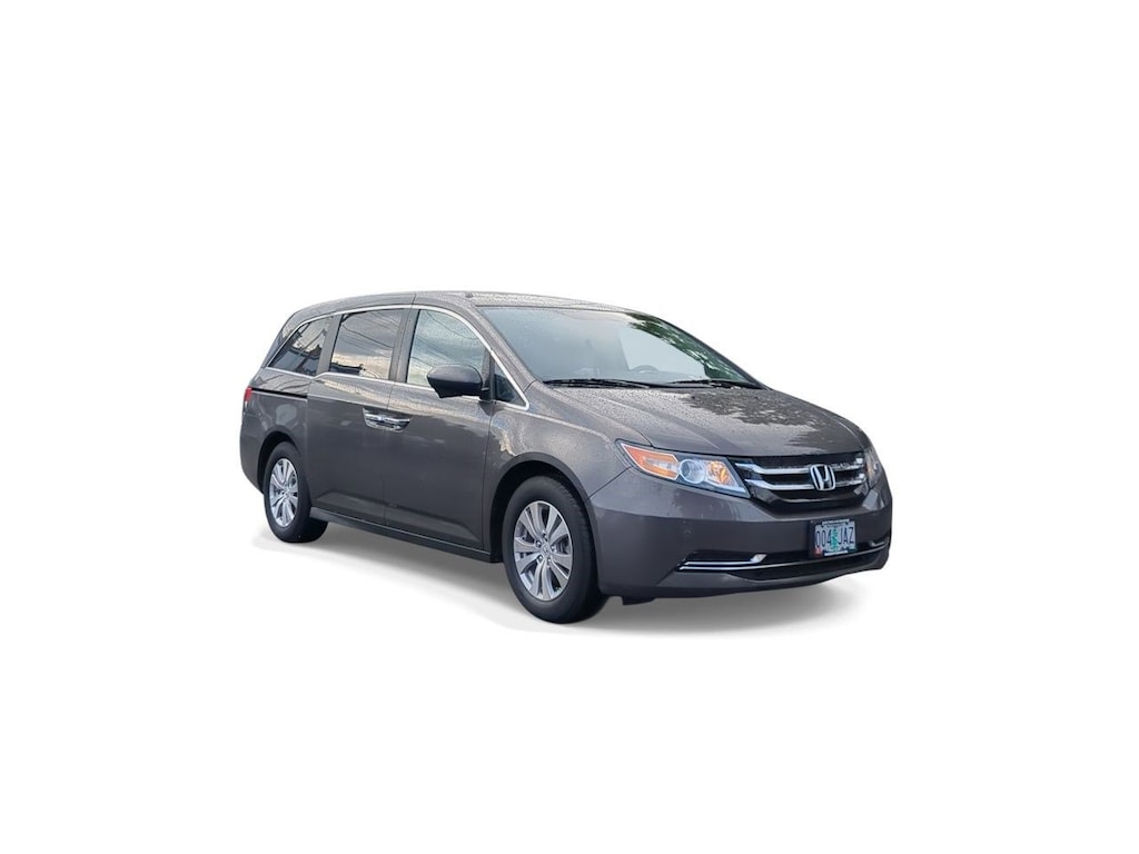 17 x 7 Alloy Wheels, 3rd row seats: split-bench, 4-Wheel Disc Brakes, 4.25 Axle Ratio, 7 Speakers, ABS brakes, Air Conditioning, Alloy wheels, AM/FM radio, Anti-whiplash front head restraints, Automatic temperature control, Brake assist, Bumpers: body-color, CD player, Cloth Seat Trim, Compass, Delay-off headlights, Driver door bin, Driver vanity mirror, Drivers Seat Mounted Armrest, Dual front impact airbags, Dual front side impact airbags, Electronic Stability Control, Exterior Parking Camera Rear, Four wheel independent suspension, Front anti-roll bar, Front Bucket Seats, Front dual zone A/C, Front reading lights, Fully automatic headlights, Garage door transmitter: HomeLink, Heated door mirrors, Illuminated entry, Low tire pressure warning, Occupant sensing airbag, Outside temperature display, Overhead airbag, Overhead console, Panic alarm, Passenger door bin, Passenger seat mounted armrest, Passenger vanity mirror, Power door mirrors, Power driver seat, Power passenger seat, Power steering, Power windows, Radio data system, Radio: 270-Watt AM/FM/CD Audio System w/7 Speakers, Rear air conditioning, Rear reading lights, Rear seat center armrest, Rear window defroster, Rear window wiper, Reclining 3rd row seat, Remote keyless entry, Security system, Speed control, Speed-sensing steering, Speed-Sensitive Wipers, Split folding rear seat, Spoiler, Steering wheel mounted audio controls, Tachometer, Telescoping steering wheel, Tilt steering wheel, Traction control, Trip computer, Variably intermittent wipers. Modern Steel 2016 Honda Odyssey EX FWD 6-Speed Automatic 3.5L V6 SOHC i-VTEC 24V