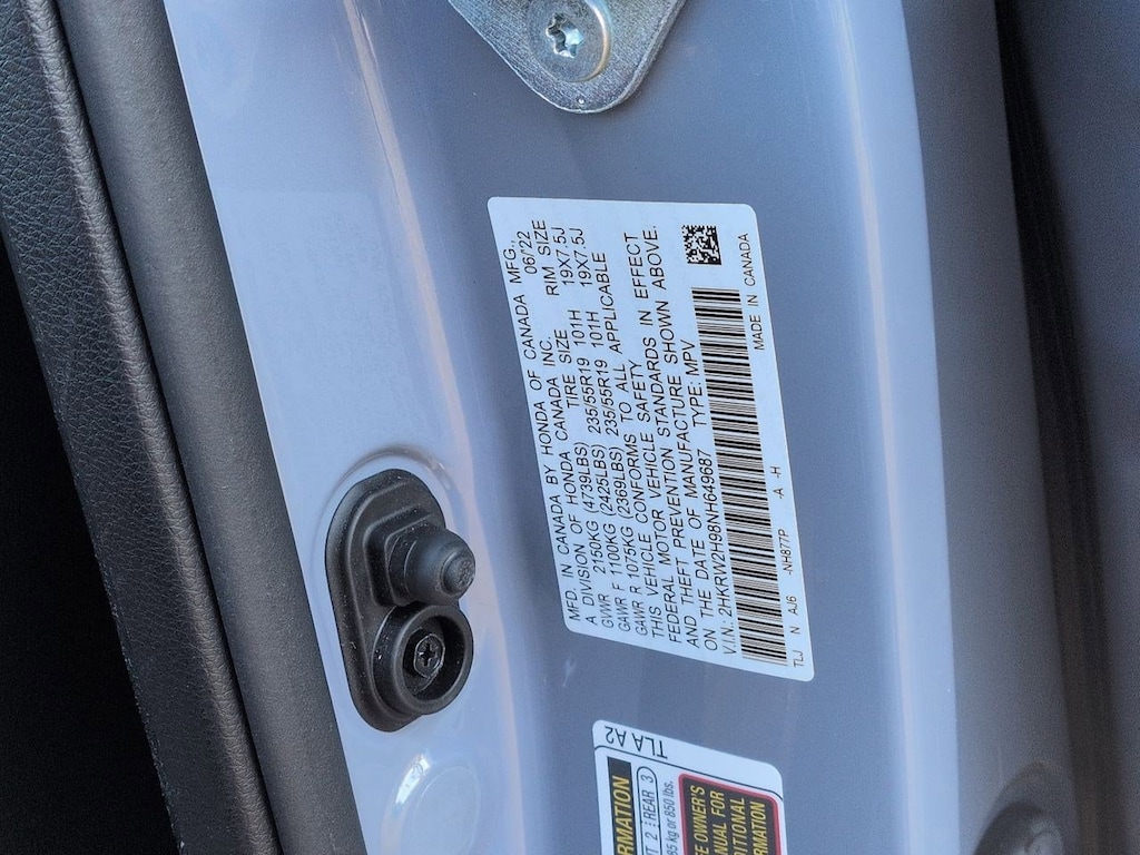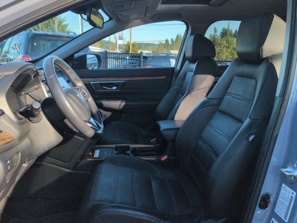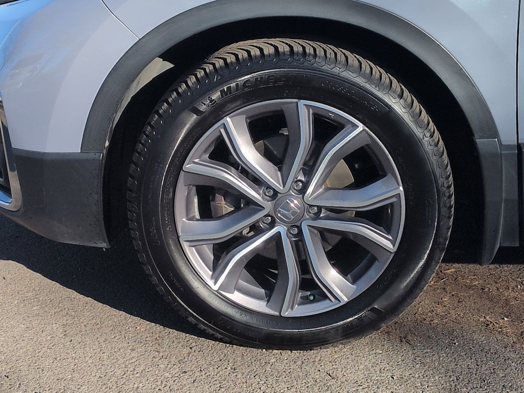 AWD, 4-Wheel Disc Brakes, 5.64 Axle Ratio, 9 Speakers, ABS brakes, Adaptive Cruise Control: Adaptive Cruise Control (ACC) with Low-Speed Follow, Air Conditioning, Alloy wheels, AM/FM radio: SiriusXM, Apple CarPlay/Android Auto, Auto High-beam Headlights, Auto-dimming Rear-View mirror, Automatic temperature control, Blind Spot Information (BSI) System warning, Brake assist, Bumpers: body-color, Compass, Delay-off headlights, Driver door bin, Driver vanity mirror, Dual front impact airbags, Dual front side impact airbags, Electronic Stability Control, Exterior Parking Camera Rear, Forward collision: Collision Mitigation Braking System (CMBS) + FCW mitigation, Four wheel independent suspension, Front anti-roll bar, Front Bucket Seats, Front Center Armrest, Front dual zone A/C, Front fog lights, Front reading lights, Garage door transmitter: HomeLink, Heated door mirrors, Heated Front Bucket Seats, Heated front seats, Heated steering wheel, Illuminated entry, Leather Seat Trim, Leather Shift Knob, Low tire pressure warning, Memory seat, Navigation system: Honda Satellite-Linked Navigation System, Occupant sensing airbag, Outside temperature display, Overhead airbag, Overhead console, Panic alarm, Passenger door bin, Passenger vanity mirror, Power door mirrors, Power driver seat, Power Liftgate, Power moonroof, Power passenger seat, Power steering, Power windows, Radio data system, Radio: 330-Watt AM/FM/HD/SiriusXM Prem Audio System, Rain sensing wipers, Rear anti-roll bar, Rear seat center armrest, Rear window defroster, Rear window wiper, Remote keyless entry, Roof rack: rails only, Security system, Speed control, Speed-sensing steering, Speed-Sensitive Wipers, Split folding rear seat, Spoiler, Steering wheel mounted audio controls, Tachometer, Telescoping steering wheel, Tilt steering wheel, Traction control, Trip computer, Turn signal indicator mirrors, Variably intermittent wipers, Wheels: 19 Machine-Finished Alloy w/Gray Inserts, AWD. 2022 Honda CR-V Touring AWD CVT 1.5L I4 DOHC 16V