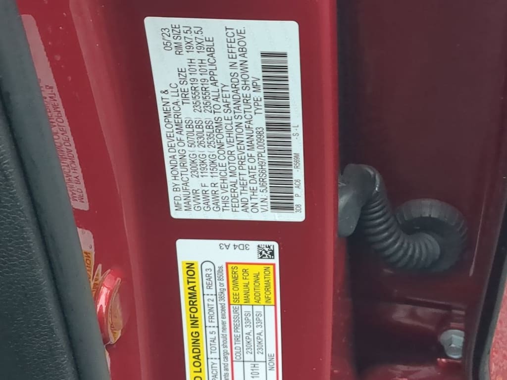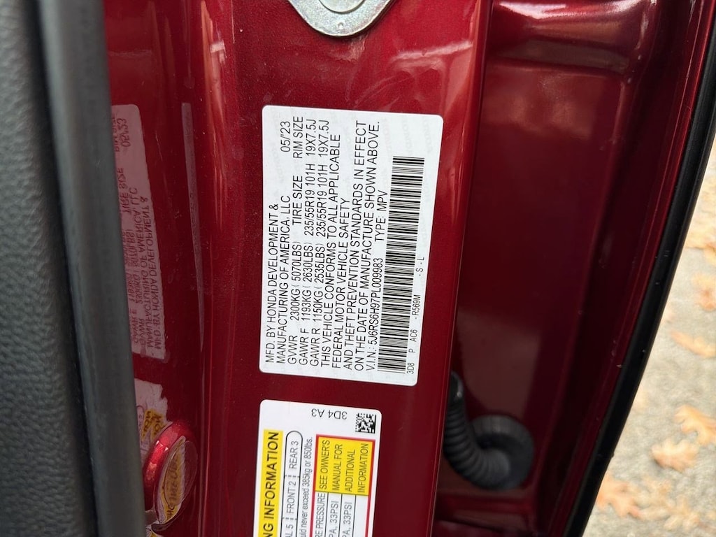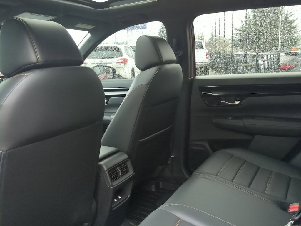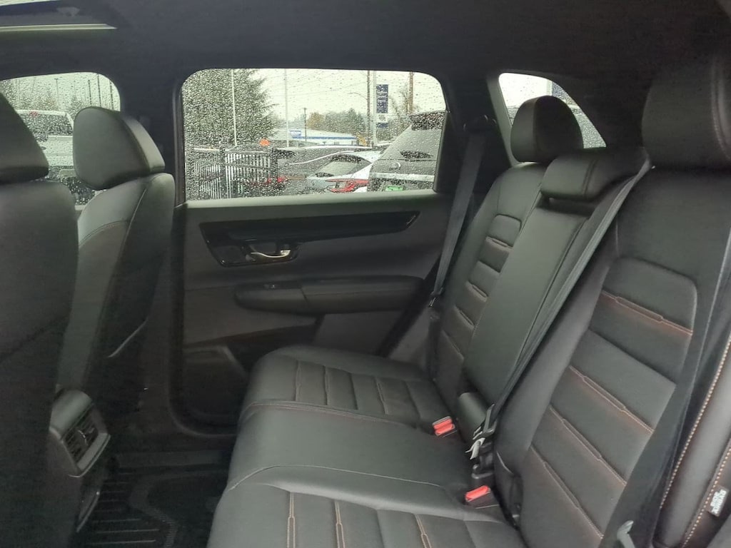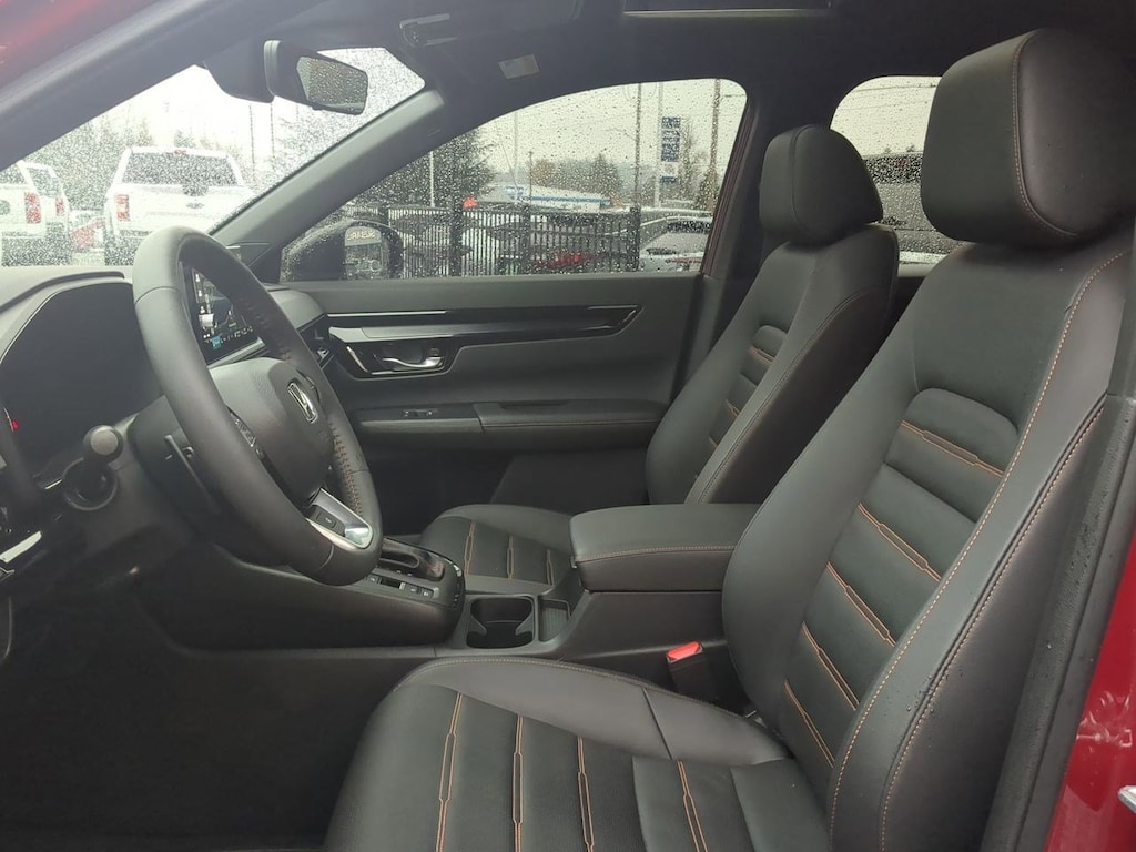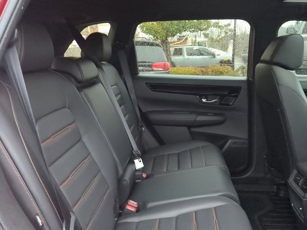 2.0L I4 DOHC 16V, 12 Speakers, 4-Wheel Disc Brakes, 4.438 Axle Ratio, ABS brakes, Adaptive Cruise Control: Adaptive Cruise Control (ACC) with Low-Speed Follow, Air Conditioning, Alloy wheels, AM/FM radio: SiriusXM, Auto High-beam Headlights, Auto-dimming Rear-View mirror, Automatic temperature control, Blind Spot Information (BSI) System warning, Brake assist, Bumpers: body-color, Compass, Delay-off headlights, Driver door bin, Driver vanity mirror, Dual front impact airbags, Dual front side impact airbags, Electronic Stability Control, Exterior Parking Camera Rear, Four wheel independent suspension, Front anti-roll bar, Front Bucket Seats, Front Center Armrest, Front dual zone A/C, Front reading lights, Fully automatic headlights, Heated door mirrors, Heated Front Bucket Seats w/Driver Memory, Heated front seats, Heated steering wheel, Illuminated entry, Knee airbag, Leather Seat Trim, Leather Shift Knob, Leather steering wheel, Low tire pressure warning, Memory seat, Navigation system: Honda Satellite-Linked Navigation System, Occupant sensing airbag, Outside temperature display, Overhead airbag, Overhead console, Panic alarm, Passenger door bin, Passenger vanity mirror, Power door mirrors, Power driver seat, Power Liftgate, Power moonroof, Power passenger seat, Power steering, Power windows, Radio data system, Radio: Bose Premium Sound System w/Navigation, Rain sensing wipers, Rear anti-roll bar, Rear reading lights, Rear seat center armrest, Rear side impact airbag, Rear window defroster, Rear window wiper, Remote keyless entry, Security system, Speed control, Speed-sensing steering, Speed-Sensitive Wipers, Split folding rear seat, Spoiler, Steering wheel mounted audio controls, Telescoping steering wheel, Tilt steering wheel, Traction control, Trip computer, Turn signal indicator mirrors, Variably intermittent wipers, Wheels: 19 Berlina Black Alloy, Wireless Apple CarPlay/Wireless Android Auto, 2.0L I4 DOHC 16V. Red 2023 Honda CR-V Hybrid Sport Touring AWD eCVT 2.0L I4 DOHC 16V