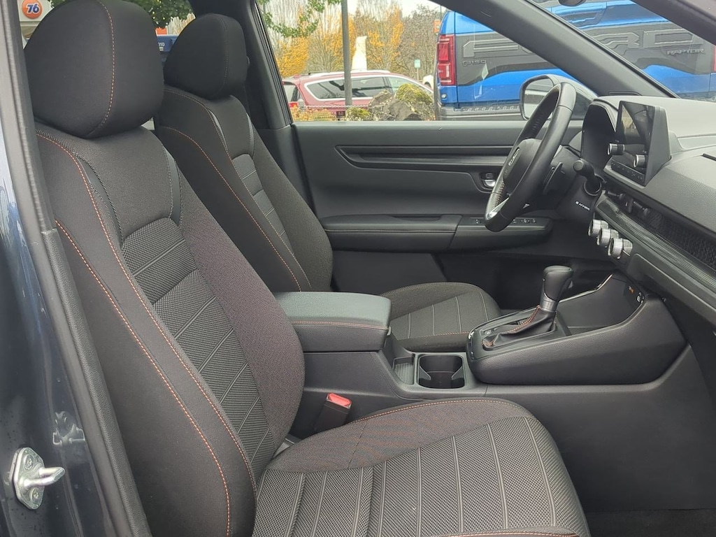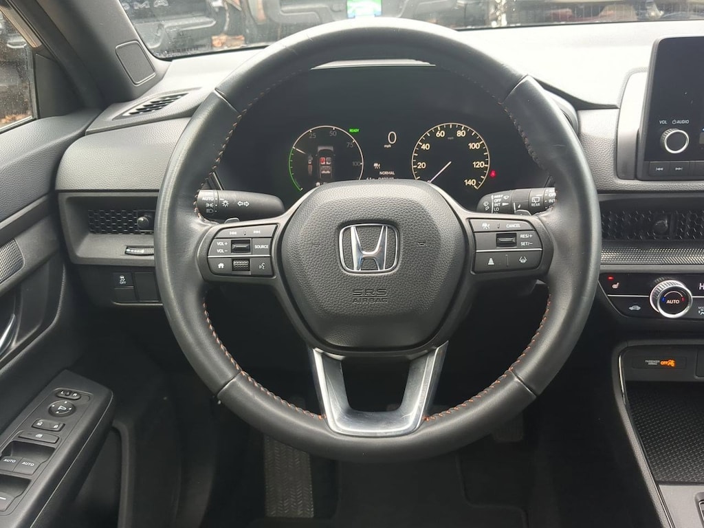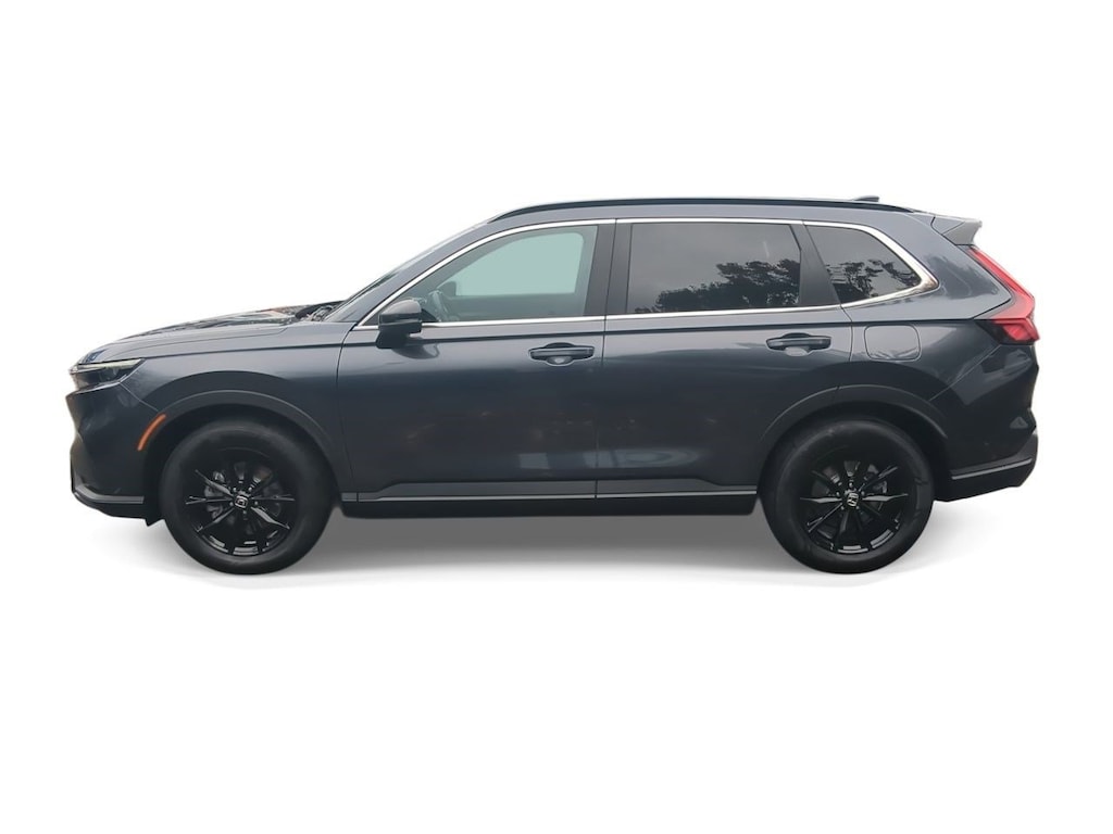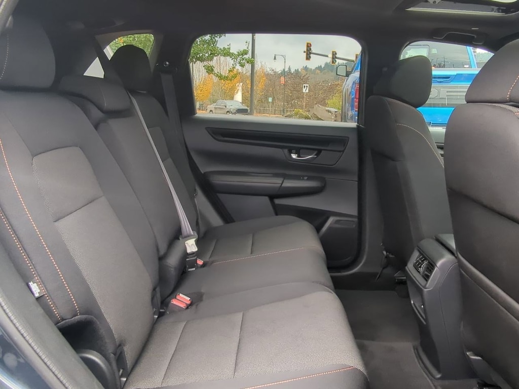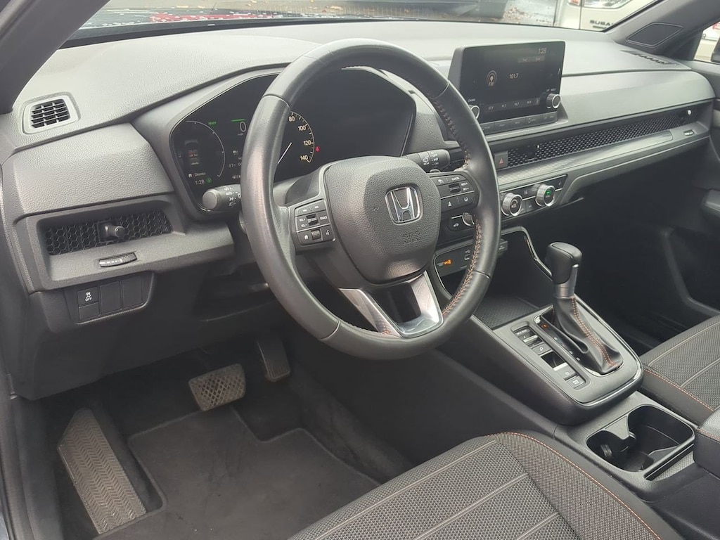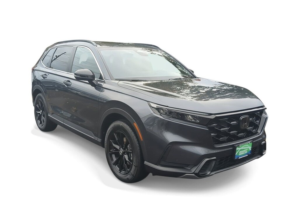 2.0L I4 DOHC 16V, 4-Wheel Disc Brakes, 4.438 Axle Ratio, 6 Speakers, ABS brakes, Adaptive Cruise Control: Adaptive Cruise Control (ACC) with Low-Speed Follow, Air Conditioning, Alloy wheels, Apple CarPlay/Android Auto, Auto High-beam Headlights, Automatic temperature control, Blind Spot Information (BSI) System warning, Brake assist, Bumpers: body-color, Cloth Seat Trim, Compass, Delay-off headlights, Driver door bin, Driver vanity mirror, Dual front impact airbags, Dual front side impact airbags, Electronic Stability Control, Exterior Parking Camera Rear, Four wheel independent suspension, Front anti-roll bar, Front Bucket Seats, Front Center Armrest, Front dual zone A/C, Front reading lights, Fully automatic headlights, Heated door mirrors, Heated Front Bucket Seats, Heated front seats, Illuminated entry, Knee airbag, Leather Shift Knob, Leather steering wheel, Low tire pressure warning, Occupant sensing airbag, Outside temperature display, Overhead airbag, Overhead console, Panic alarm, Passenger door bin, Passenger vanity mirror, Power door mirrors, Power driver seat, Power moonroof, Power steering, Power windows, Radio data system, Radio: 240-Watt AM/FM Audio System, Rear anti-roll bar, Rear reading lights, Rear seat center armrest, Rear side impact airbag, Rear window defroster, Rear window wiper, Remote keyless entry, Security system, Speed control, Speed-sensing steering, Speed-Sensitive Wipers, Split folding rear seat, Spoiler, Steering wheel mounted audio controls, Telescoping steering wheel, Tilt steering wheel, Traction control, Trip computer, Turn signal indicator mirrors, Variably intermittent wipers, Wheels: 18 Berlina Black Alloy, 2.0L I4 DOHC 16V. Blue 2024 Honda CR-V Hybrid Sport AWD eCVT 2.0L I4 DOHC 16V