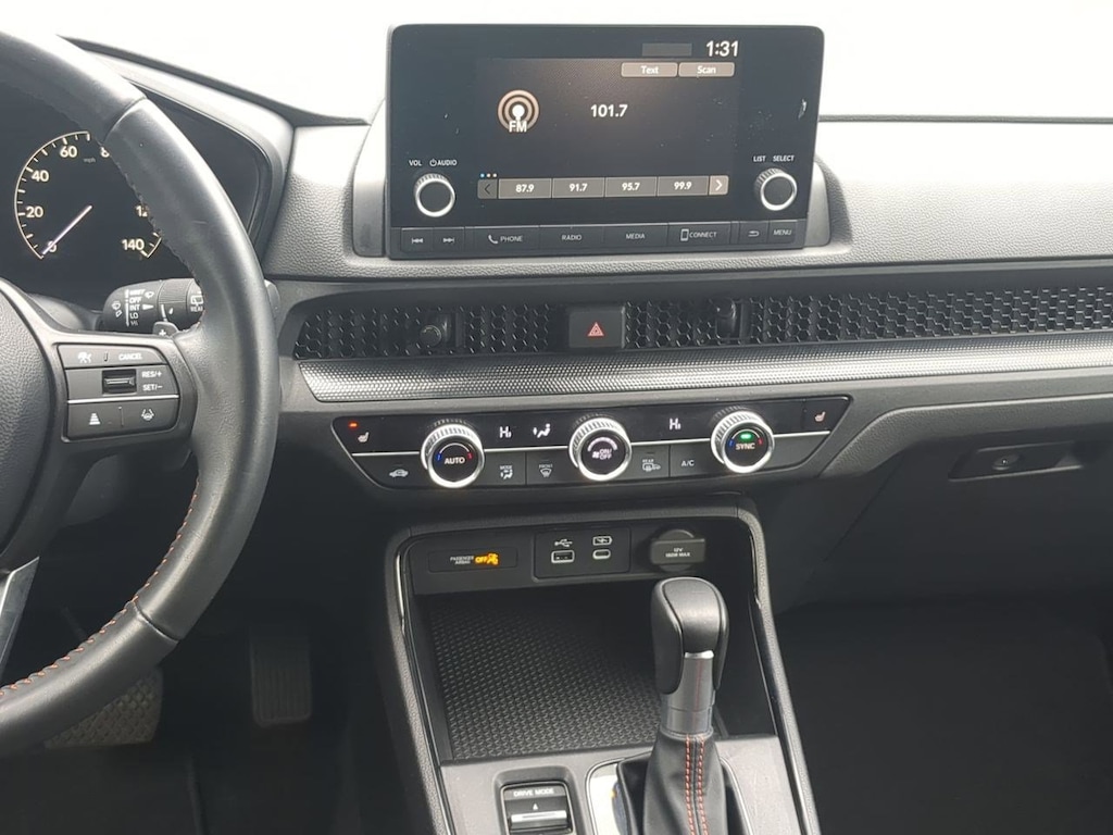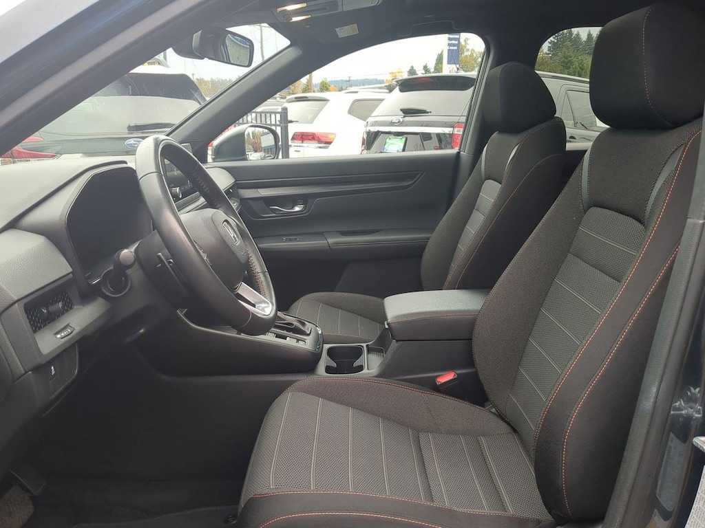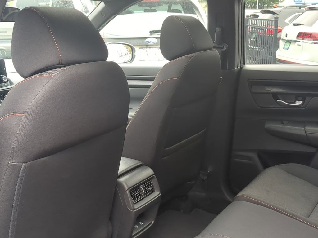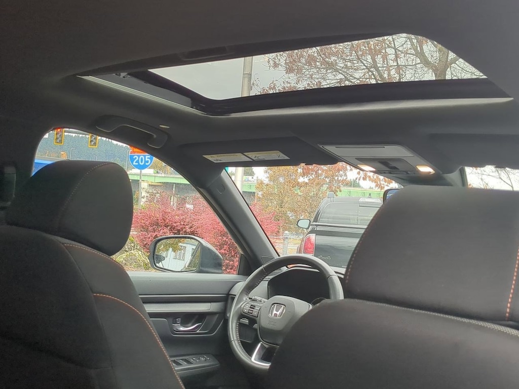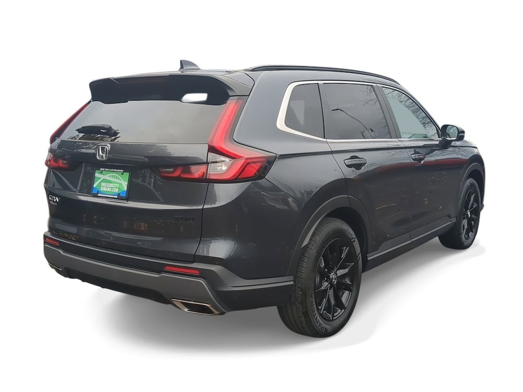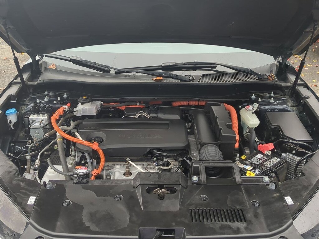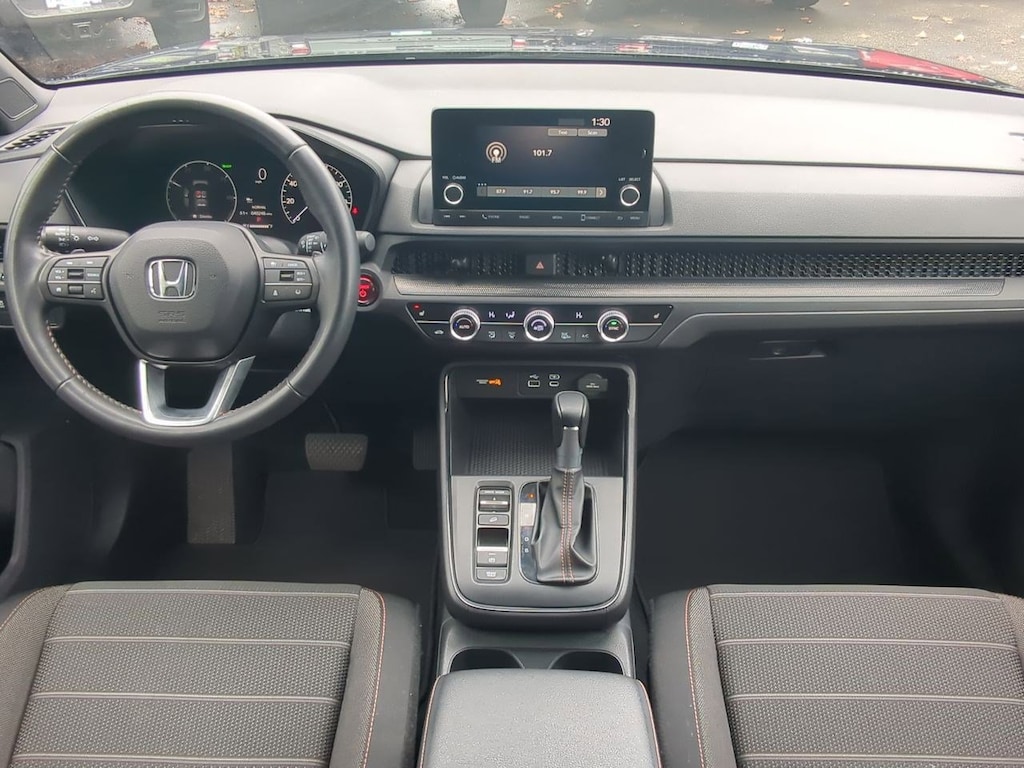 2.0L I4 DOHC 16V, 4-Wheel Disc Brakes, 4.438 Axle Ratio, 6 Speakers, ABS brakes, Adaptive Cruise Control: Adaptive Cruise Control (ACC) with Low-Speed Follow, Air Conditioning, Alloy wheels, Apple CarPlay/Android Auto, Auto High-beam Headlights, Automatic temperature control, Blind Spot Information (BSI) System warning, Brake assist, Bumpers: body-color, Cloth Seat Trim, Compass, Delay-off headlights, Driver door bin, Driver vanity mirror, Dual front impact airbags, Dual front side impact airbags, Electronic Stability Control, Exterior Parking Camera Rear, Four wheel independent suspension, Front anti-roll bar, Front Bucket Seats, Front Center Armrest, Front dual zone A/C, Front reading lights, Fully automatic headlights, Heated door mirrors, Heated Front Bucket Seats, Heated front seats, Illuminated entry, Knee airbag, Leather Shift Knob, Leather steering wheel, Low tire pressure warning, Occupant sensing airbag, Outside temperature display, Overhead airbag, Overhead console, Panic alarm, Passenger door bin, Passenger vanity mirror, Power door mirrors, Power driver seat, Power moonroof, Power steering, Power windows, Radio data system, Radio: 240-Watt AM/FM Audio System, Rear anti-roll bar, Rear reading lights, Rear seat center armrest, Rear side impact airbag, Rear window defroster, Rear window wiper, Remote keyless entry, Security system, Speed control, Speed-sensing steering, Speed-Sensitive Wipers, Split folding rear seat, Spoiler, Steering wheel mounted audio controls, Telescoping steering wheel, Tilt steering wheel, Traction control, Trip computer, Turn signal indicator mirrors, Variably intermittent wipers, Wheels: 18 Berlina Black Alloy, 2.0L I4 DOHC 16V. Blue 2024 Honda CR-V Hybrid Sport AWD eCVT 2.0L I4 DOHC 16V
