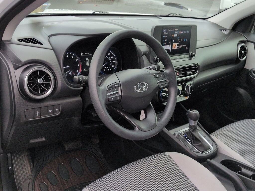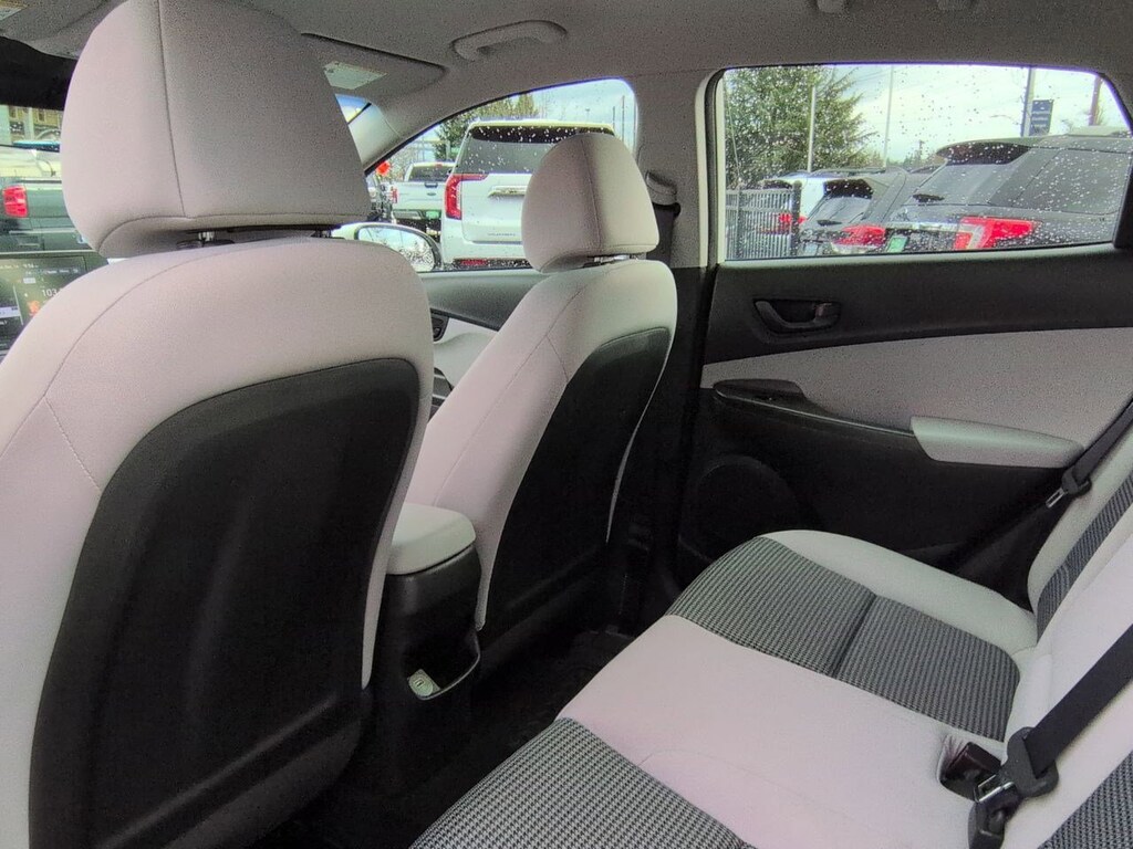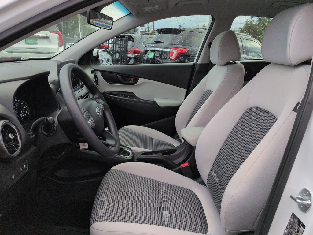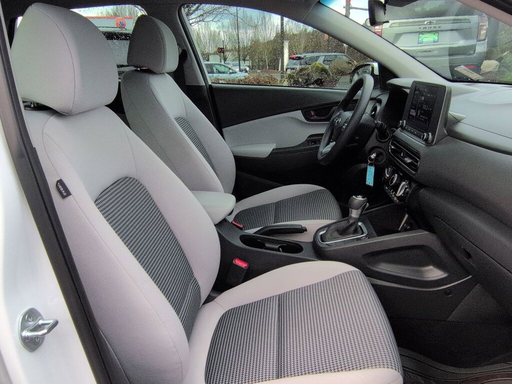 16 x 6.5J Alloy Wheels, 4-Wheel Disc Brakes, 5.715 Axle Ratio, 6 Speakers, ABS brakes, Air Conditioning, Alloy wheels, AM/FM radio, Apple CarPlay & Android Auto, Brake assist, Bumpers: body-color, Cargo Net, Cargo Tray, Carpeted Floor Mats, Cloth Seat Trim, Delay-off headlights, Driver door bin, Driver vanity mirror, Dual front impact airbags, Dual front side impact airbags, Electronic Stability Control, Exterior Parking Camera Rear, First Aid Kit, Four wheel independent suspension, Front & Rear Mudguards, Front anti-roll bar, Front Bucket Seats, Front Center Armrest, Front reading lights, Fully automatic headlights, Heated door mirrors, Illuminated entry, Low tire pressure warning, Occupant sensing airbag, Option Group 01, Outside temperature display, Overhead airbag, Overhead console, Panic alarm, Passenger door bin, Passenger vanity mirror, Power door mirrors, Power steering, Power windows, Radio: AM/FM Audio System, Rear anti-roll bar, Rear seat center armrest, Rear window defroster, Rear window wiper, Remote keyless entry, Security system, Speed control, Speed-sensing steering, Split folding rear seat, Spoiler, Steering wheel mounted audio controls, Tachometer, Telescoping steering wheel, Tilt steering wheel, Traction control, Trip computer, Turn signal indicator mirrors, Variably intermittent wipers. Lunar White 2023 Hyundai Kona SE AWD CVT 2.0L I4 DOHC Dual CVVT