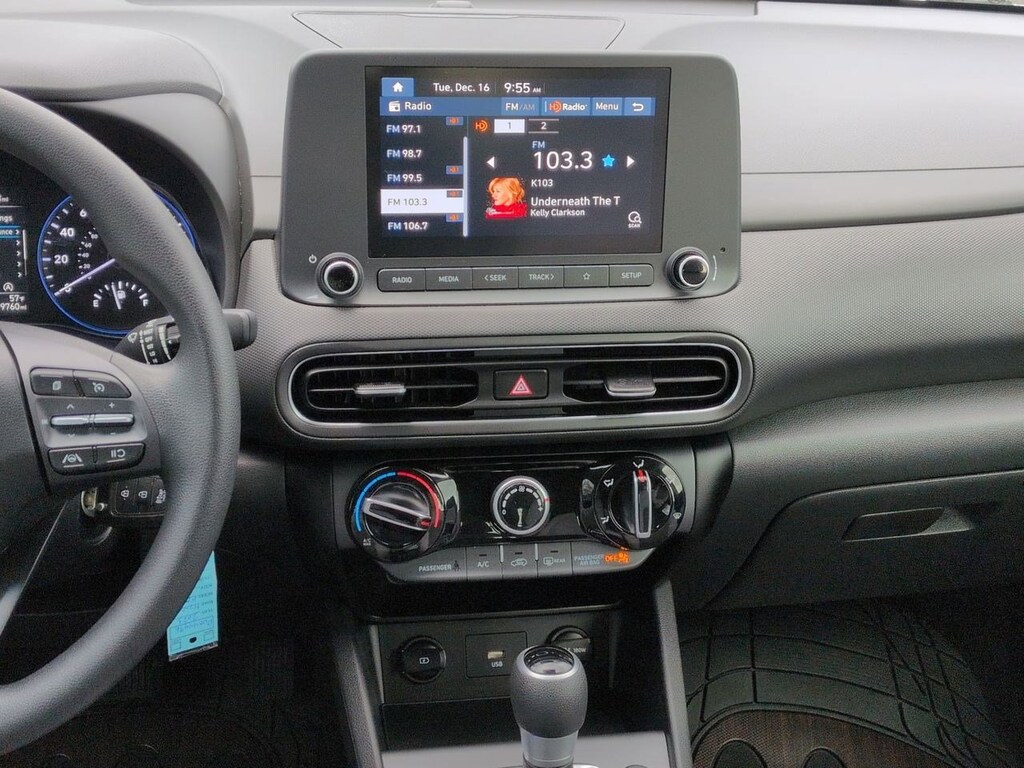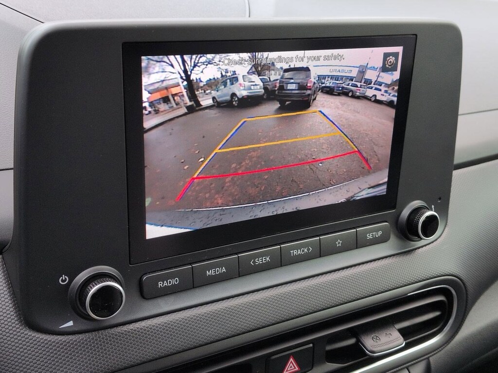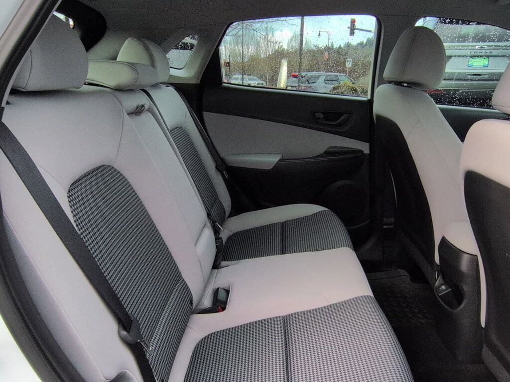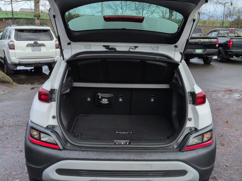 16 x 6.5J Alloy Wheels, 4-Wheel Disc Brakes, 5.715 Axle Ratio, 6 Speakers, ABS brakes, Air Conditioning, Alloy wheels, AM/FM radio, Apple CarPlay & Android Auto, Brake assist, Bumpers: body-color, Cargo Net, Cargo Tray, Carpeted Floor Mats, Cloth Seat Trim, Delay-off headlights, Driver door bin, Driver vanity mirror, Dual front impact airbags, Dual front side impact airbags, Electronic Stability Control, Exterior Parking Camera Rear, First Aid Kit, Four wheel independent suspension, Front & Rear Mudguards, Front anti-roll bar, Front Bucket Seats, Front Center Armrest, Front reading lights, Fully automatic headlights, Heated door mirrors, Illuminated entry, Low tire pressure warning, Occupant sensing airbag, Option Group 01, Outside temperature display, Overhead airbag, Overhead console, Panic alarm, Passenger door bin, Passenger vanity mirror, Power door mirrors, Power steering, Power windows, Radio: AM/FM Audio System, Rear anti-roll bar, Rear seat center armrest, Rear window defroster, Rear window wiper, Remote keyless entry, Security system, Speed control, Speed-sensing steering, Split folding rear seat, Spoiler, Steering wheel mounted audio controls, Tachometer, Telescoping steering wheel, Tilt steering wheel, Traction control, Trip computer, Turn signal indicator mirrors, Variably intermittent wipers. Lunar White 2023 Hyundai Kona SE AWD CVT 2.0L I4 DOHC Dual CVVT