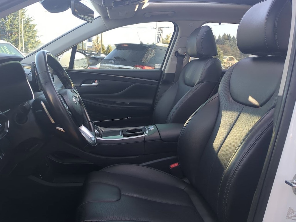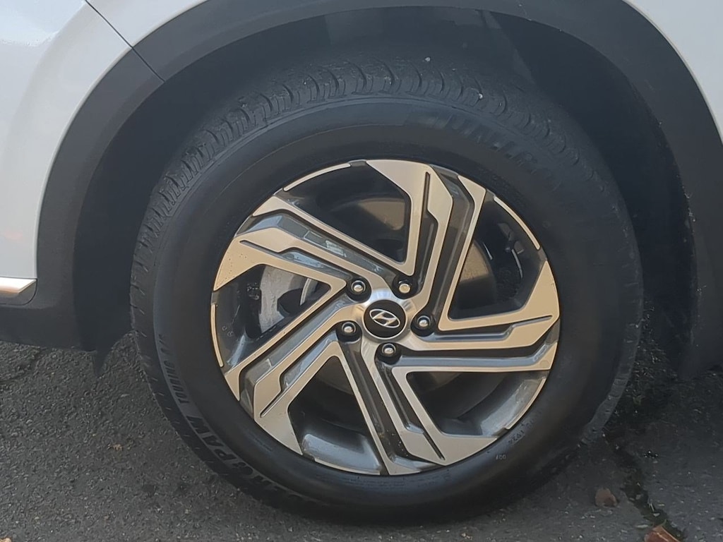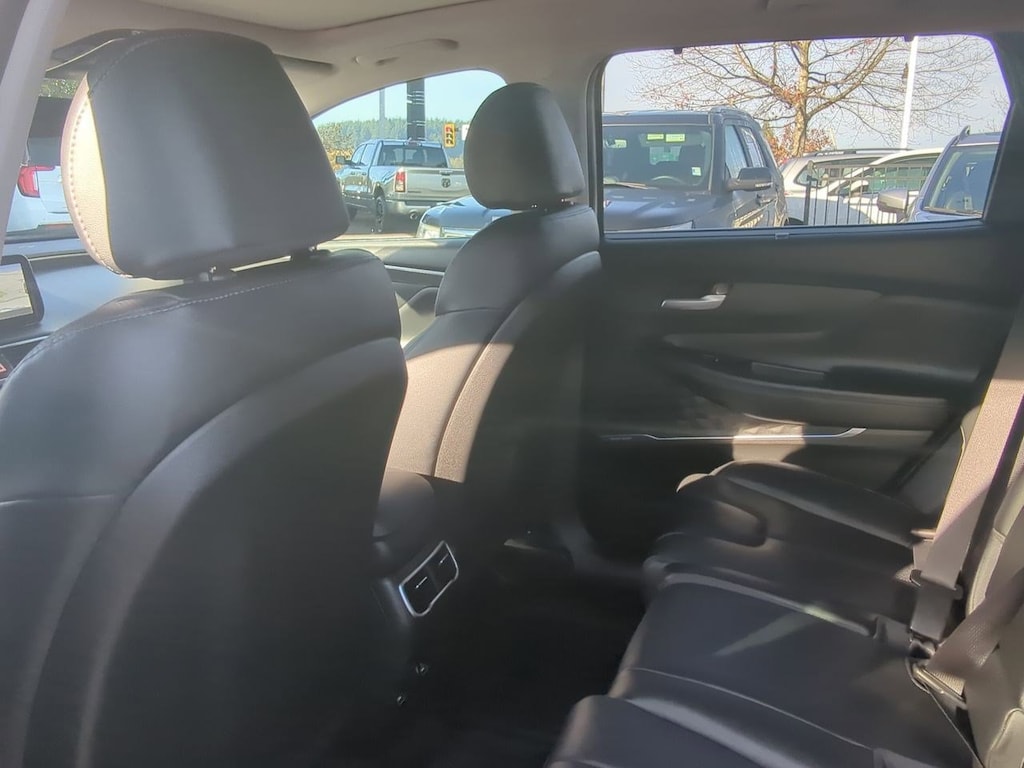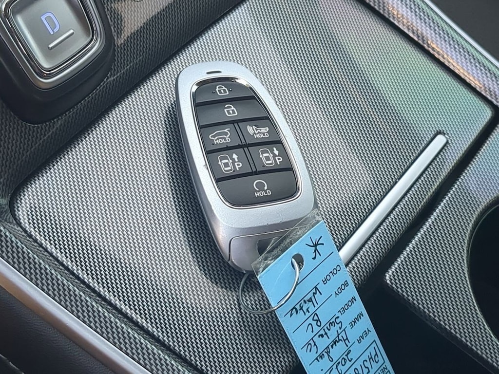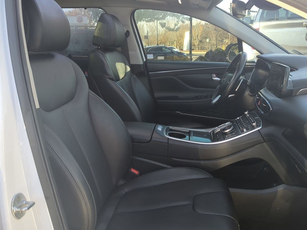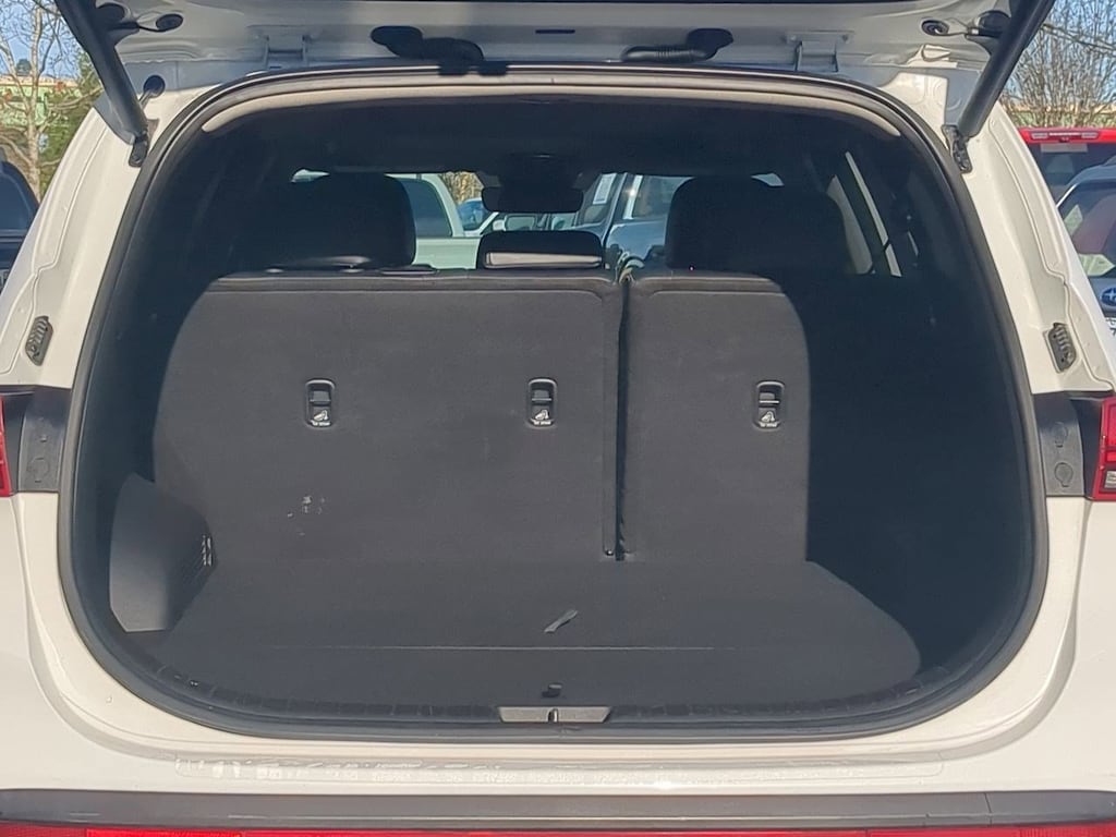 AWD, Black Cloth, 12.3 LCD Multi-Information Display, 18 x 7.5J Alloy Wheels, 4-Wheel Disc Brakes, 6 Speakers, 8-Way Power Passenger Seat, ABS brakes, Acoustic-Laminated Front Side Windows, Air Conditioning, Alloy wheels, AM/FM radio: SiriusXM, Apple CarPlay & Android Auto, Auto High-beam Headlights, Auto-Dimming Rear-View Mirror, Automatic temperature control, Axle Ratio: 4.081, Blind-Spot View Monitor, Brake assist, Bumper Applique, Bumpers: body-color, Cargo Net, Cargo Tray, Chrome Front & Rear Bumper Accents, Chrome Interior Accents, Delay-off headlights, Driver door bin, Driver vanity mirror, Dual front impact airbags, Dual front side impact airbags, Electronic Stability Control, Emergency communication system, Exterior Parking Camera Rear, Four wheel independent suspension, Front anti-roll bar, Front Bucket Seats, Front Center Armrest, Front dual zone A/C, Front reading lights, Fully automatic headlights, H-Tex Leatherette Seat Trim, harman/kardonî Audio System, Heated door mirrors, Heated Front Bucket Seats, Heated front seats, Illuminated entry, Leather steering wheel, LED Interior Lights, LED Taillights, Low tire pressure warning, Manual Rear Side Sunshades, Mudguards, Navigation System, Occupant sensing airbag, Option Group 02, Outside temperature display, Overhead airbag, Overhead console, Panic alarm, Panoramic Sunroof, Passenger door bin, Passenger vanity mirror, Power door mirrors, Power driver seat, Power Liftgate, Power Release 2nd Row Seats, Power steering, Power windows, Premium Package, Radio: AM/FM Display Audio, Rear anti-roll bar, Rear seat center armrest, Rear window defroster, Rear window wiper, Remote keyless entry, Security system, Silver Front Grille, Speed control, Speed-sensing steering, Split folding rear seat, Spoiler, Stain-Resistant Cloth Seat Trim, Steering wheel mounted audio controls, Surround View Monitor, Tachometer, Telescoping steering wheel, Tilt steering wheel, Traction control, Trip computer, Turn signal indicator mirrors, Variably intermittent wipers, AWD, Black Cloth. Serenity White Pearl 2023 Hyundai Santa Fe SEL AWD 8-Speed Automatic with SHIFTRONIC 2.5L I4