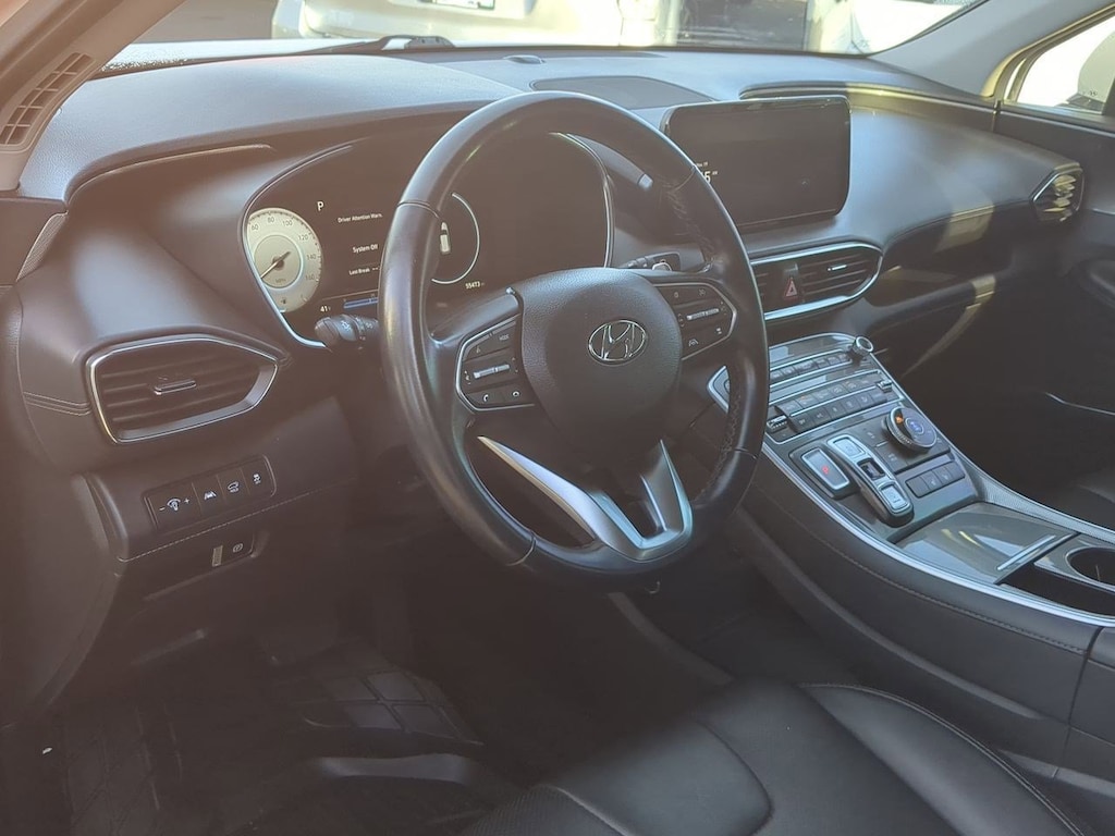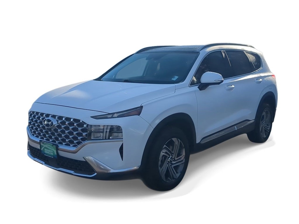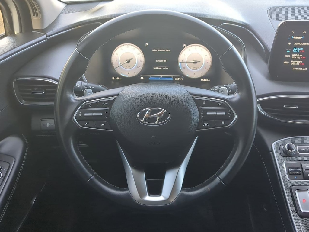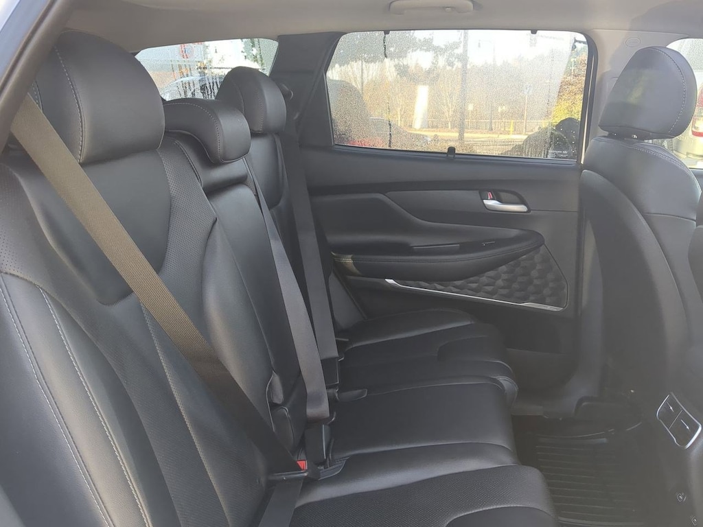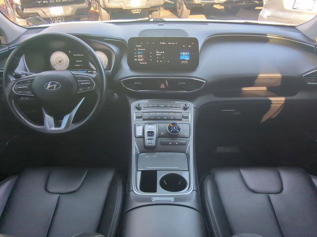 AWD, Black Cloth, 12.3 LCD Multi-Information Display, 18 x 7.5J Alloy Wheels, 4-Wheel Disc Brakes, 6 Speakers, 8-Way Power Passenger Seat, ABS brakes, Acoustic-Laminated Front Side Windows, Air Conditioning, Alloy wheels, AM/FM radio: SiriusXM, Apple CarPlay & Android Auto, Auto High-beam Headlights, Auto-Dimming Rear-View Mirror, Automatic temperature control, Axle Ratio: 4.081, Blind-Spot View Monitor, Brake assist, Bumper Applique, Bumpers: body-color, Cargo Net, Cargo Tray, Chrome Front & Rear Bumper Accents, Chrome Interior Accents, Delay-off headlights, Driver door bin, Driver vanity mirror, Dual front impact airbags, Dual front side impact airbags, Electronic Stability Control, Emergency communication system, Exterior Parking Camera Rear, Four wheel independent suspension, Front anti-roll bar, Front Bucket Seats, Front Center Armrest, Front dual zone A/C, Front reading lights, Fully automatic headlights, H-Tex Leatherette Seat Trim, harman/kardonî Audio System, Heated door mirrors, Heated Front Bucket Seats, Heated front seats, Illuminated entry, Leather steering wheel, LED Interior Lights, LED Taillights, Low tire pressure warning, Manual Rear Side Sunshades, Mudguards, Navigation System, Occupant sensing airbag, Option Group 02, Outside temperature display, Overhead airbag, Overhead console, Panic alarm, Panoramic Sunroof, Passenger door bin, Passenger vanity mirror, Power door mirrors, Power driver seat, Power Liftgate, Power Release 2nd Row Seats, Power steering, Power windows, Premium Package, Radio: AM/FM Display Audio, Rear anti-roll bar, Rear seat center armrest, Rear window defroster, Rear window wiper, Remote keyless entry, Security system, Silver Front Grille, Speed control, Speed-sensing steering, Split folding rear seat, Spoiler, Stain-Resistant Cloth Seat Trim, Steering wheel mounted audio controls, Surround View Monitor, Tachometer, Telescoping steering wheel, Tilt steering wheel, Traction control, Trip computer, Turn signal indicator mirrors, Variably intermittent wipers, AWD, Black Cloth. Serenity White Pearl 2023 Hyundai Santa Fe SEL AWD 8-Speed Automatic with SHIFTRONIC 2.5L I4