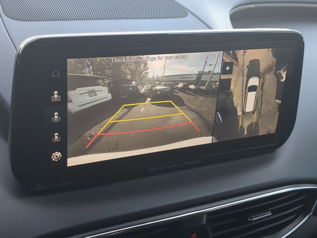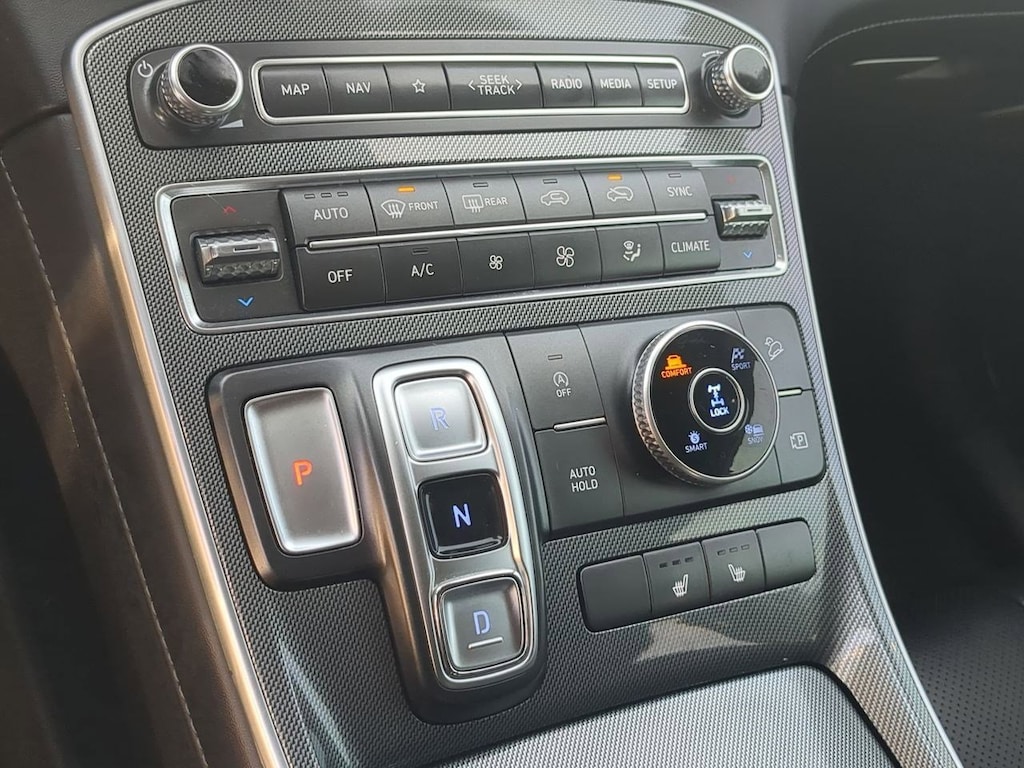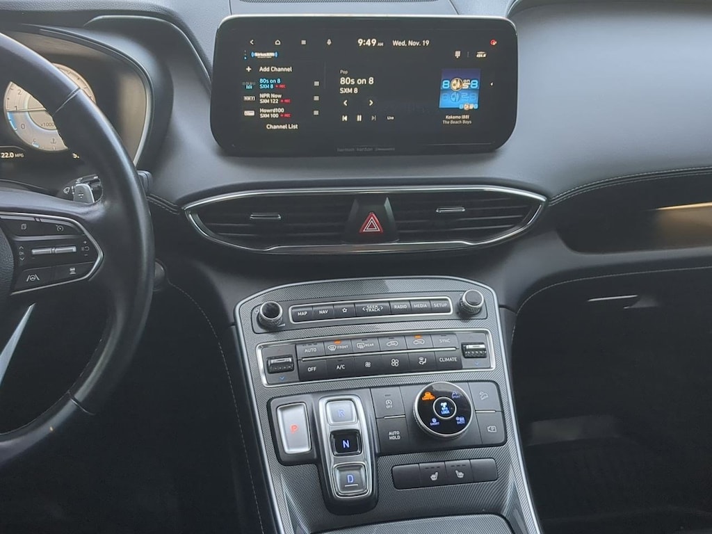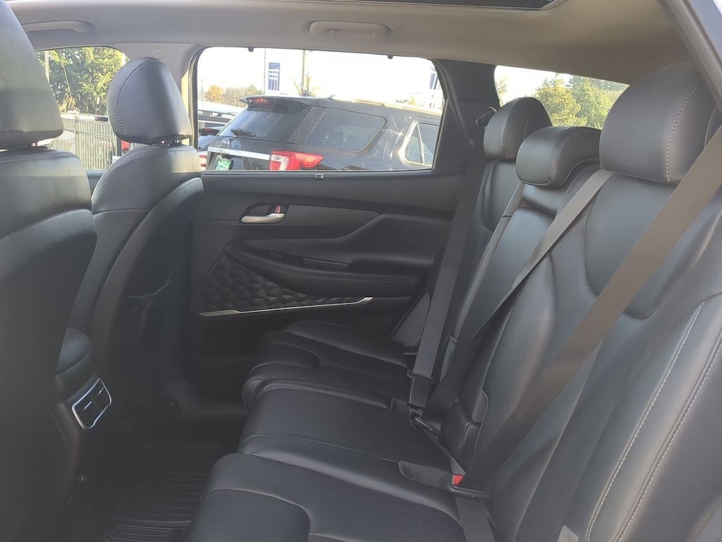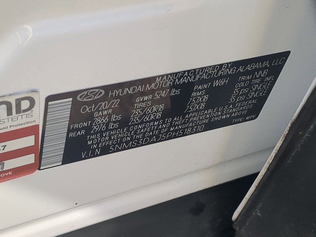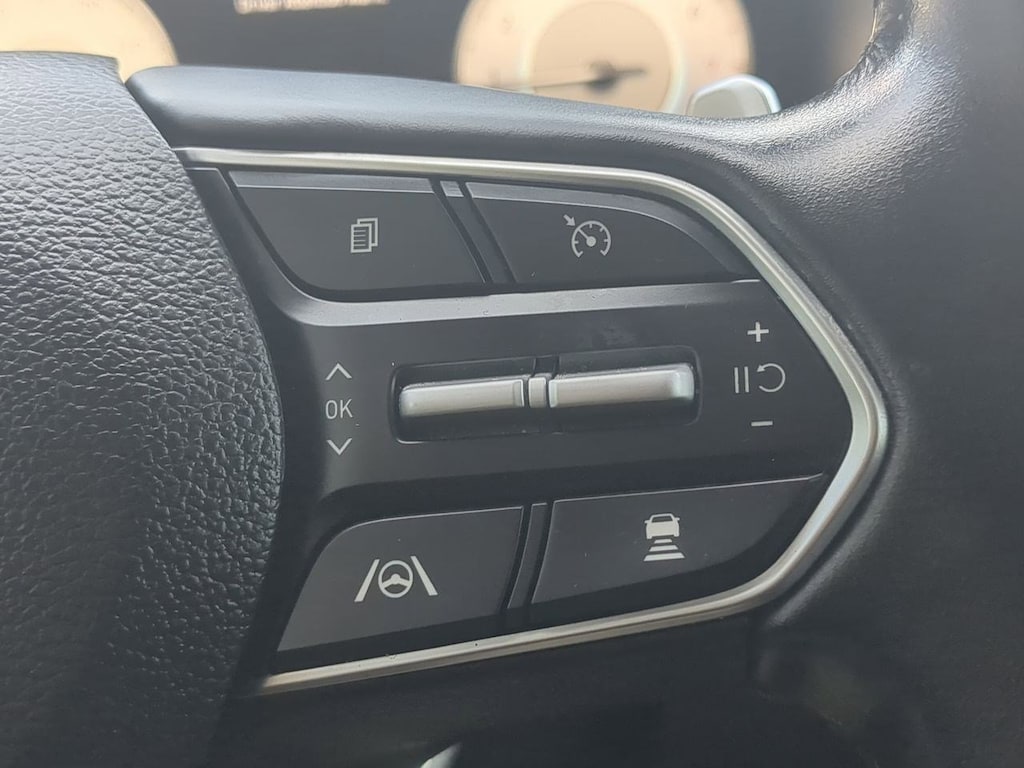 AWD, Black Cloth, 12.3 LCD Multi-Information Display, 18 x 7.5J Alloy Wheels, 4-Wheel Disc Brakes, 6 Speakers, 8-Way Power Passenger Seat, ABS brakes, Acoustic-Laminated Front Side Windows, Air Conditioning, Alloy wheels, AM/FM radio: SiriusXM, Apple CarPlay & Android Auto, Auto High-beam Headlights, Auto-Dimming Rear-View Mirror, Automatic temperature control, Axle Ratio: 4.081, Blind-Spot View Monitor, Brake assist, Bumper Applique, Bumpers: body-color, Cargo Net, Cargo Tray, Chrome Front & Rear Bumper Accents, Chrome Interior Accents, Delay-off headlights, Driver door bin, Driver vanity mirror, Dual front impact airbags, Dual front side impact airbags, Electronic Stability Control, Emergency communication system, Exterior Parking Camera Rear, Four wheel independent suspension, Front anti-roll bar, Front Bucket Seats, Front Center Armrest, Front dual zone A/C, Front reading lights, Fully automatic headlights, H-Tex Leatherette Seat Trim, harman/kardonî Audio System, Heated door mirrors, Heated Front Bucket Seats, Heated front seats, Illuminated entry, Leather steering wheel, LED Interior Lights, LED Taillights, Low tire pressure warning, Manual Rear Side Sunshades, Mudguards, Navigation System, Occupant sensing airbag, Option Group 02, Outside temperature display, Overhead airbag, Overhead console, Panic alarm, Panoramic Sunroof, Passenger door bin, Passenger vanity mirror, Power door mirrors, Power driver seat, Power Liftgate, Power Release 2nd Row Seats, Power steering, Power windows, Premium Package, Radio: AM/FM Display Audio, Rear anti-roll bar, Rear seat center armrest, Rear window defroster, Rear window wiper, Remote keyless entry, Security system, Silver Front Grille, Speed control, Speed-sensing steering, Split folding rear seat, Spoiler, Stain-Resistant Cloth Seat Trim, Steering wheel mounted audio controls, Surround View Monitor, Tachometer, Telescoping steering wheel, Tilt steering wheel, Traction control, Trip computer, Turn signal indicator mirrors, Variably intermittent wipers, AWD, Black Cloth. Serenity White Pearl 2023 Hyundai Santa Fe SEL AWD 8-Speed Automatic with SHIFTRONIC 2.5L I4